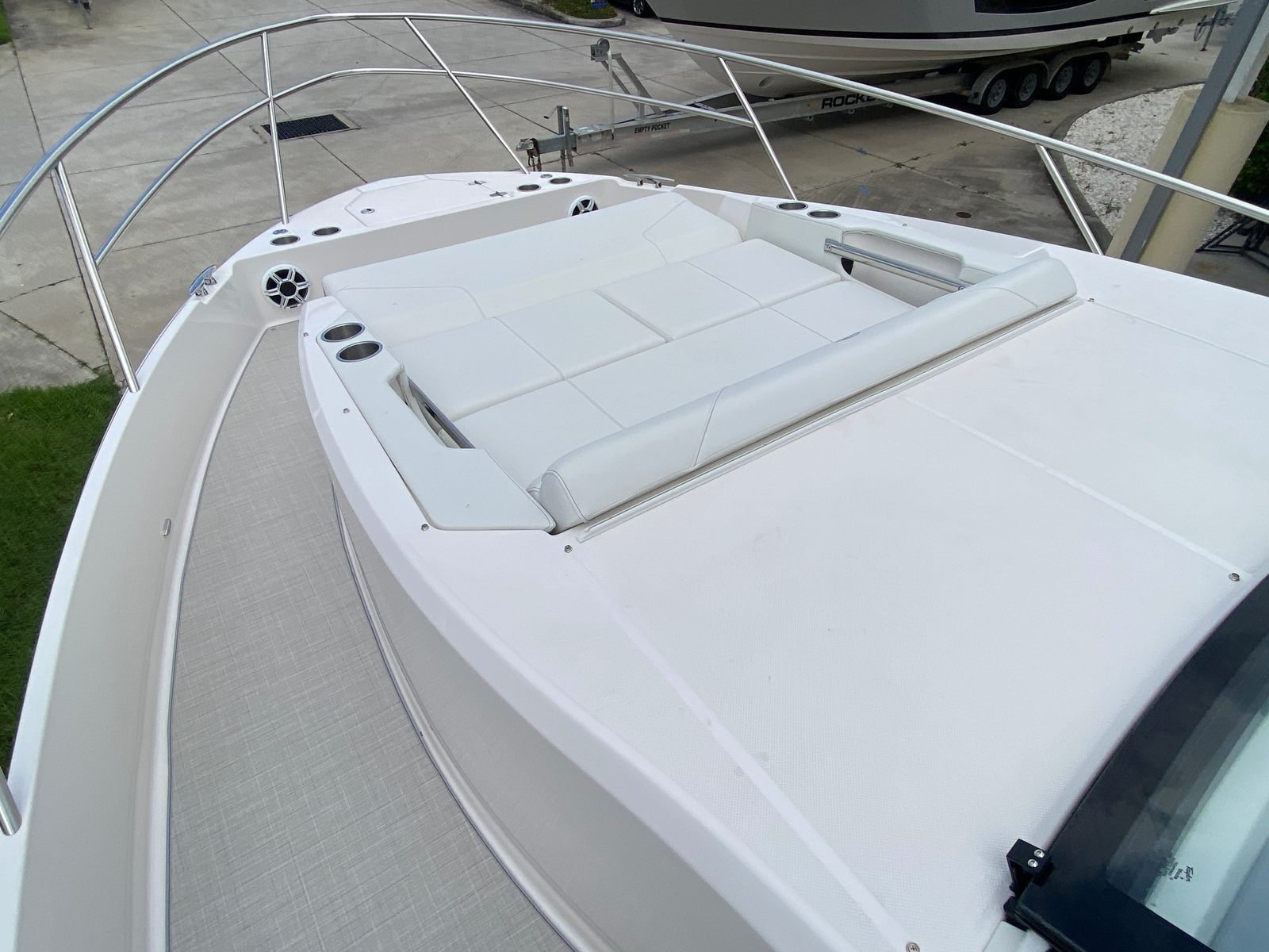 The Regal 36 XO is packed with premium features designed to elevate your time on the water. The overboard discharge toilet offers convenience and practicality, ensuring comfort during extended trips. The diesel 110V generator provides reliable power for all your onboard systems, so you can enjoy modern amenities wherever you go. The cruise package enhances your journey, making every outing smooth and enjoyable. For entertainment, the stereo satellite tuner with antenna delivers crystal-clear sound and access to your favorite music and channels, setting the perfect mood for any occasion.The Mediterranean Blue hull and canvas create a cohesive and stylish look, while the toasted oak salon floor adds a touch of luxury to the interior. The windshield privacy cover offers added comfort and security, allowing you to relax in peace. The electric salon door provides effortless access to the main living area, combining convenience with modern design. Every feature has been thoughtfully selected to enhance your boating experience, making the Regal 36 XO a top choice among yacht boats for sale.