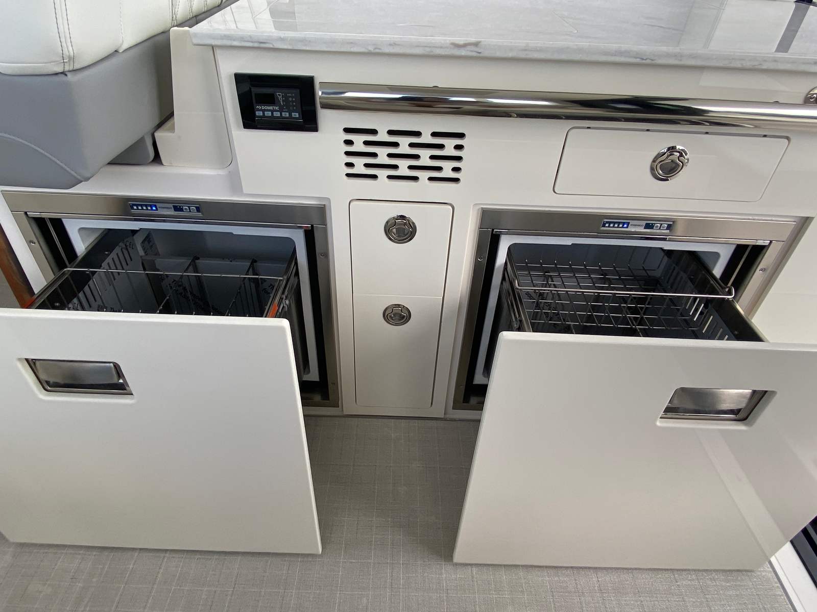 Power and precision are at the heart of the Regal 36 XO. Equipped with twin engines delivering a combined 900 horsepower, this yacht offers an exhilarating ride and responsive handling. Whether you’re cruising along the coastline or venturing into open waters, the Regal 36 XO provides smooth acceleration and impressive speed. The advanced engineering ensures optimal fuel efficiency, allowing you to enjoy longer journeys with fewer stops. The Seakeeper 3 Stabilization System further enhances your experience by minimizing roll and providing a stable, comfortable ride even in choppy conditions. This makes the Regal 36 XO not only a joy to drive but also a safe and reliable choice for all your boating adventures.
