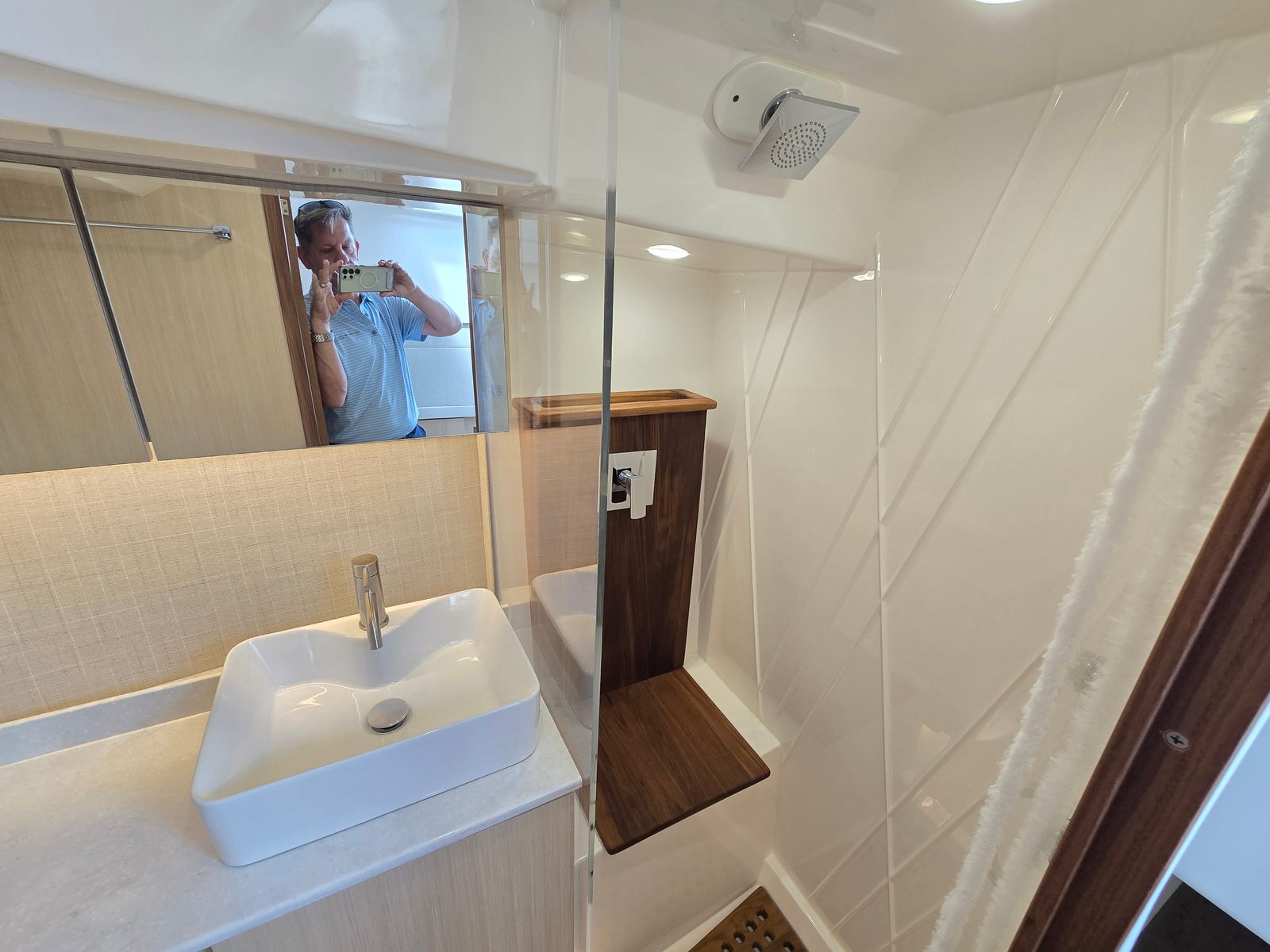 The 2026 Regal 38 SAV is loaded with premium features that set it apart from other yacht boats for sale. The exterior showcases a striking Bottom Color in Tahiti Beach White, complemented by the Z6MB Mediterranean Blue accent and a sophisticated Hull Color in Steel Grey. The Stainless Steel Upgrade Package adds a touch of modern elegance and durability throughout the yacht, ensuring every detail is both beautiful and built to last.Step aboard and you will find a cockpit designed for both relaxation and entertainment. The inclusion of a Television in the cockpit transforms your outdoor space into a vibrant social hub, perfect for movie nights or catching the big game while anchored in your favorite bay. The Countertops feature a stunning Mosaic design, adding a touch of artistry and luxury to your onboard experience. The White Canvas provides a clean, classic look that enhances the yacht’s overall aesthetic.For those who value connectivity and safety, the Garmin VHF Radio ensures reliable communication wherever your adventures take you. The Bow Sunshade System, operated manually, offers flexible protection from the sun, allowing you to create a comfortable lounging area at the bow. The Cockpit Refrigerator keeps your refreshments chilled and easily accessible, making it simple to entertain guests or enjoy a cool drink after a swim.
