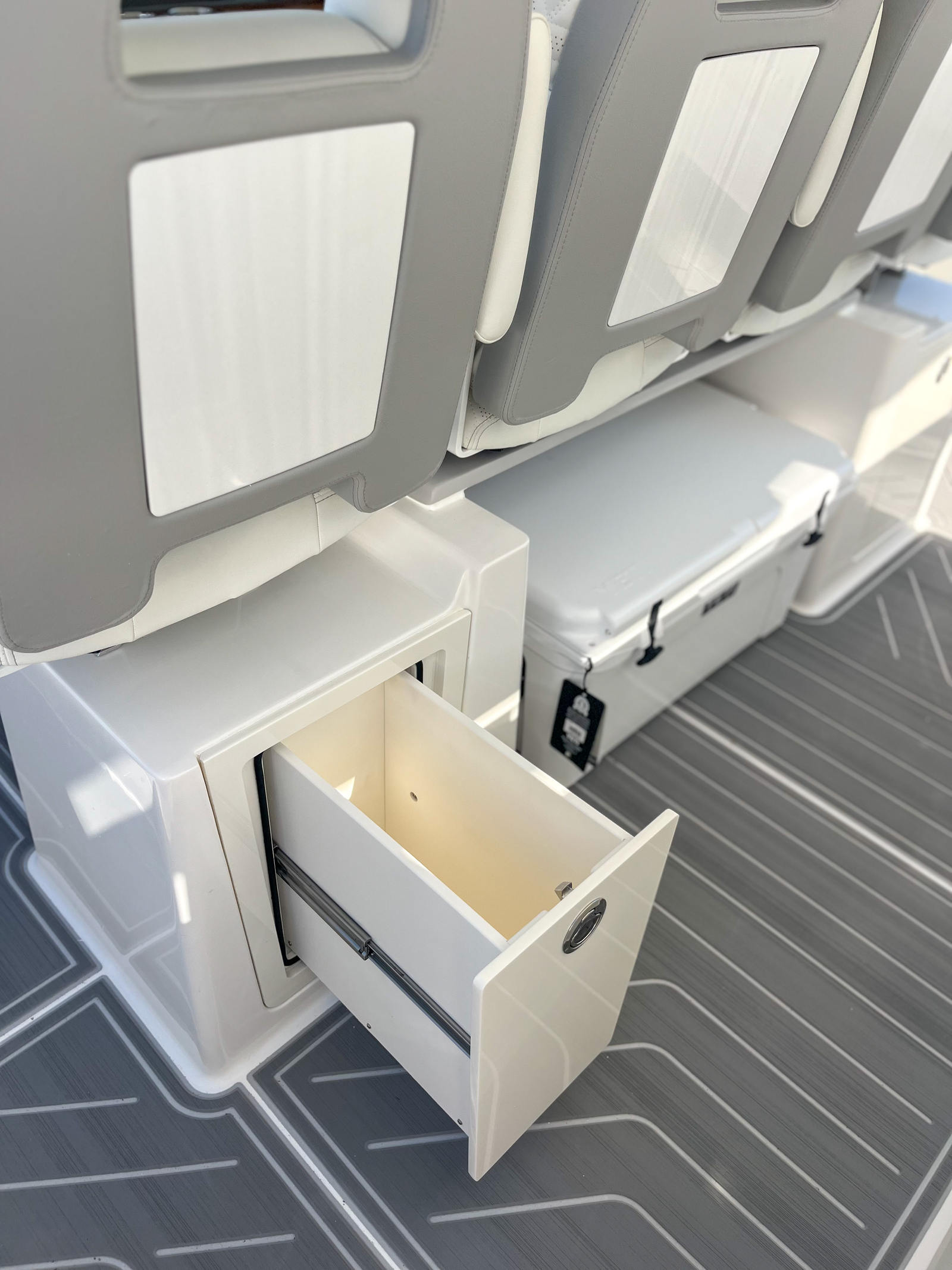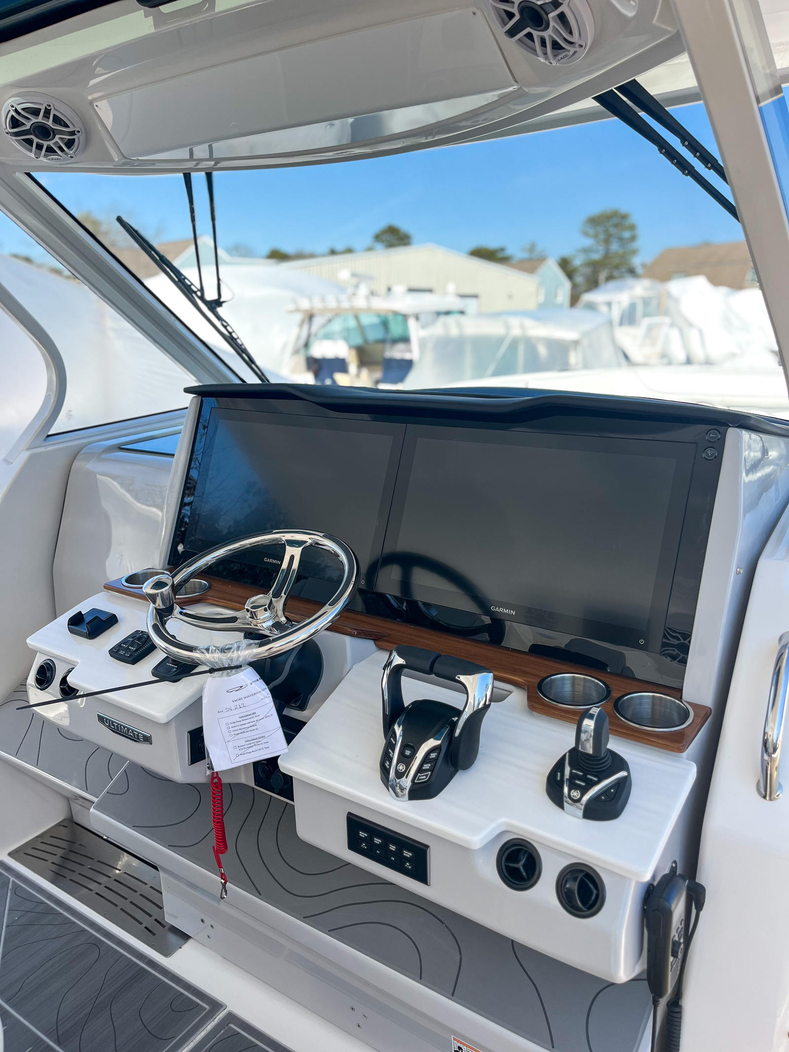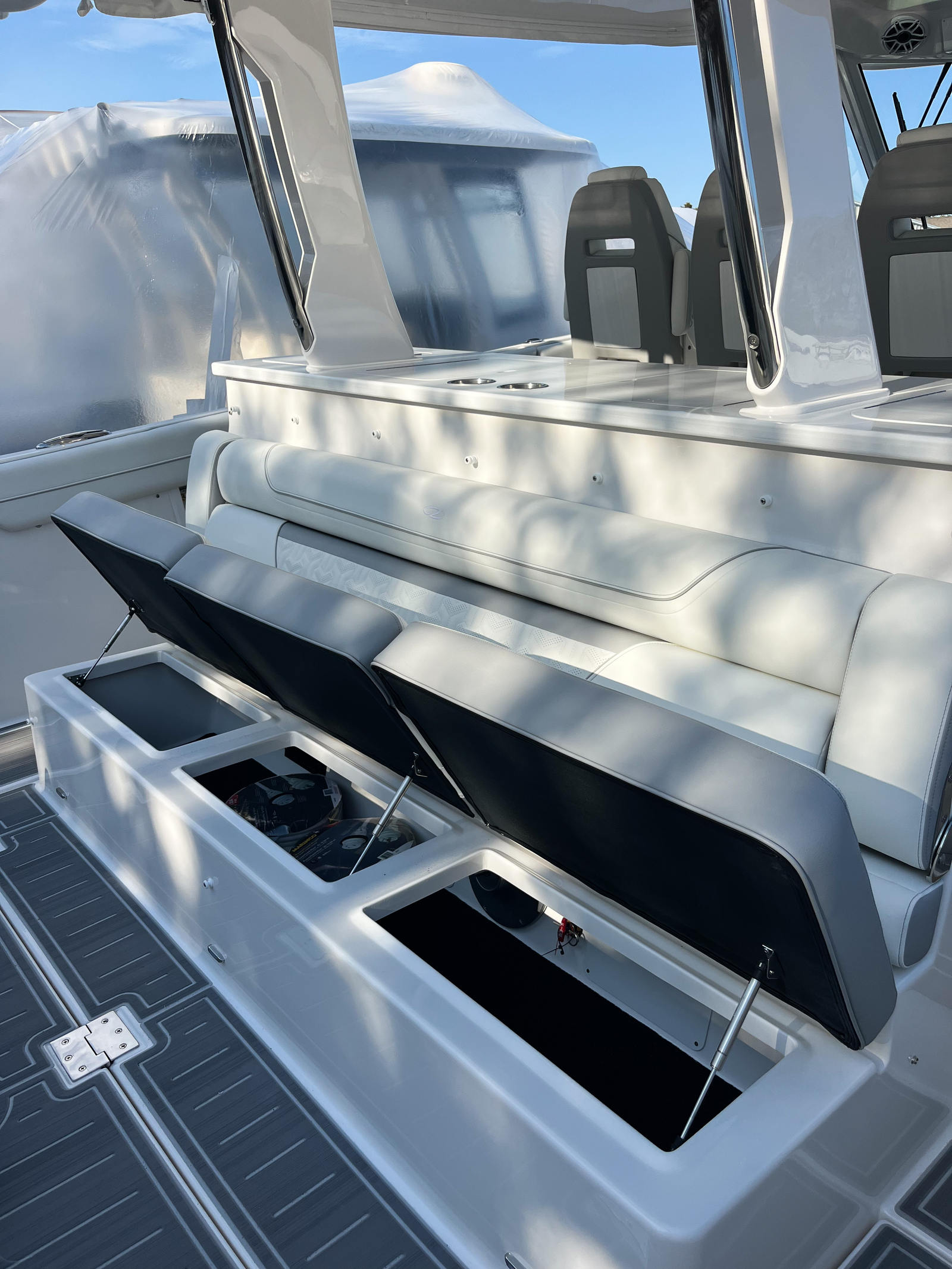 The Regal 38 SAV is packed with special features that elevate your boating experience. The coastal package enhances the yacht’s durability and style, making it ideal for a variety of marine environments. Synthetic teak steps add a touch of elegance and provide a non-slip surface for safety and comfort. The Snowcap finish gives the yacht a crisp, modern look, while the Strato Wind countertops offer both beauty and functionality in the galley and entertainment areas.A gray water system is included, promoting eco-friendly operation and convenience during extended trips. The Zone 6: White interior creates a bright, inviting atmosphere, perfect for relaxing or entertaining guests. The anchor windlass with rope and chain ensures easy and secure anchoring, while fender clips make docking and undocking a breeze. Digital switching puts control at your fingertips, allowing you to manage onboard systems with ease. The cockpit refrigerator keeps your refreshments chilled and ready for any occasion, adding a touch of luxury to your time on the water.