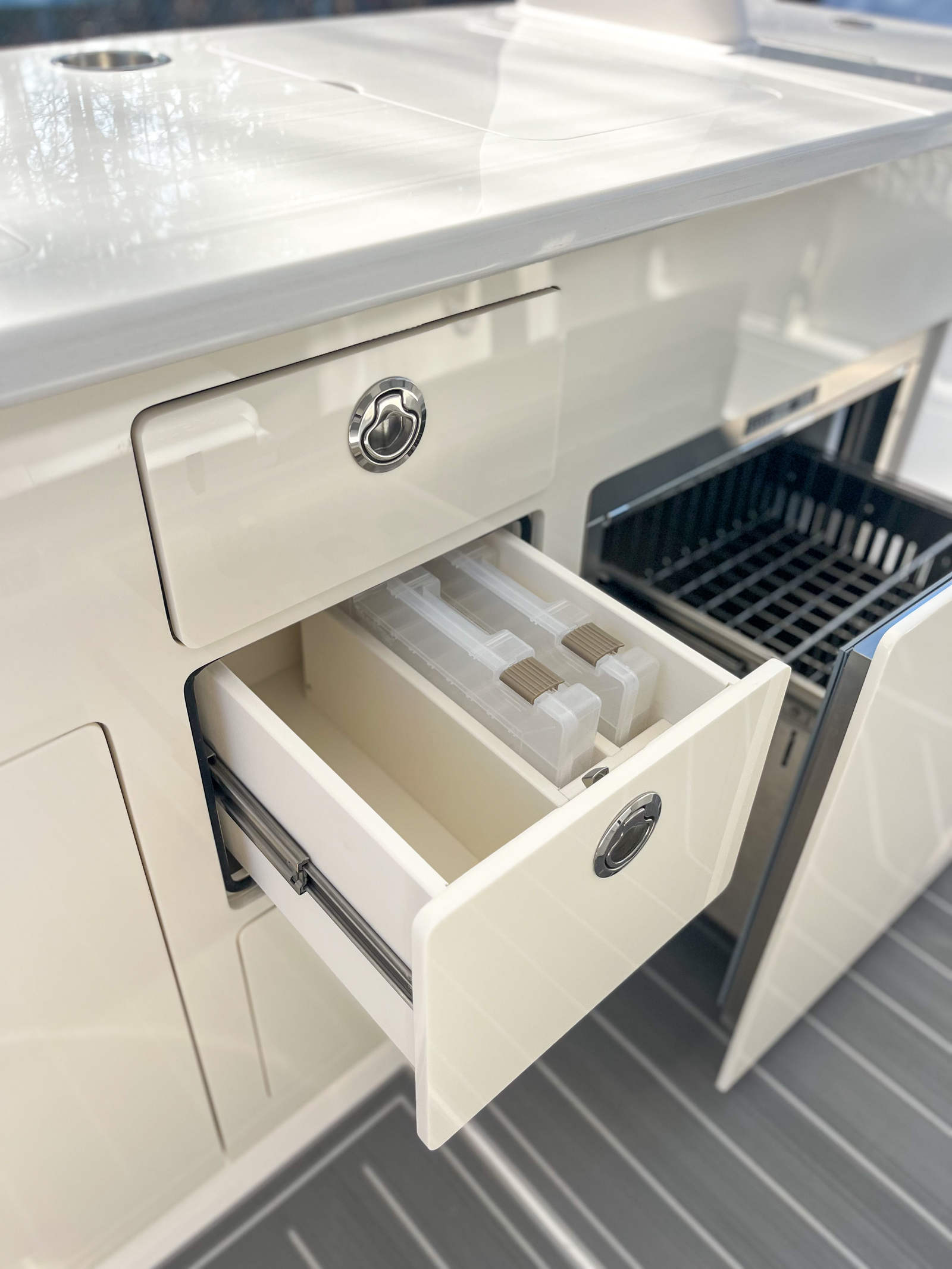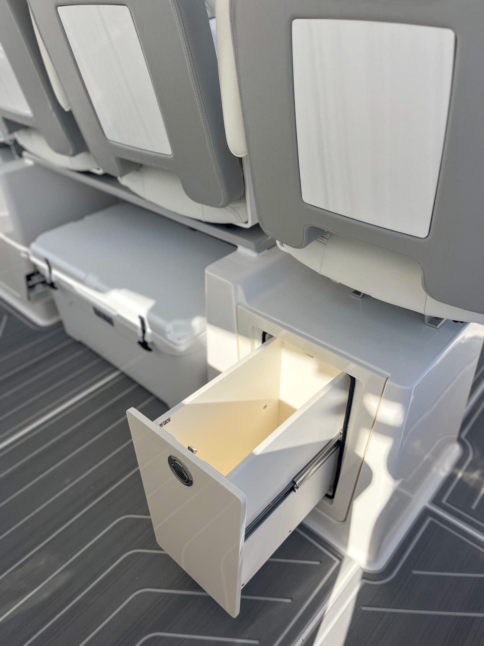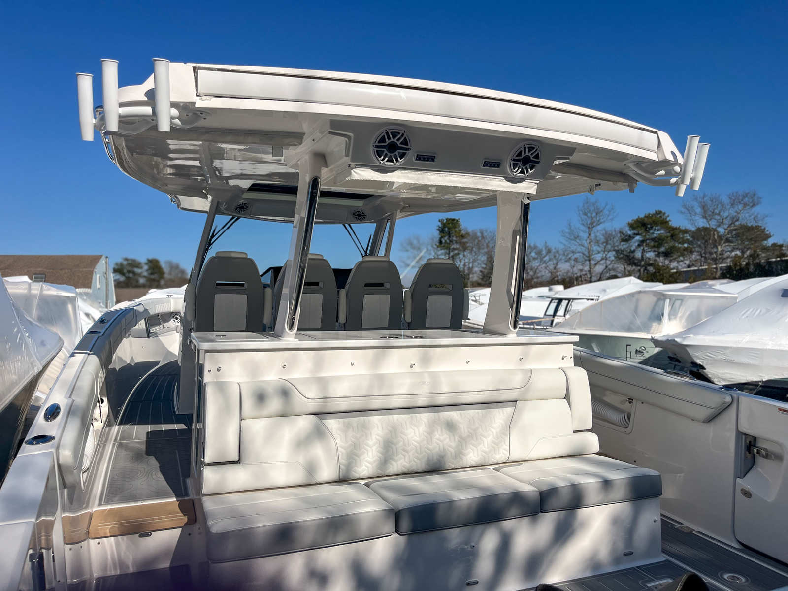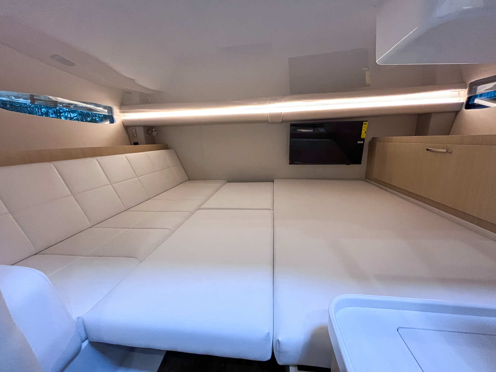The Regal 38 SAV is packed with special features that elevate your boating experience. The coastal package enhances the yacht’s durability and style, making it ideal for a variety of marine environments. Synthetic teak steps add a touch of elegance and provide a non-slip surface for safety and comfort. The Snowcap finish gives the yacht a crisp, modern look, while the Strato Wind countertops offer both beauty and functionality in the galley and entertainment areas.A gray water system is included, promoting eco-friendly operation and convenience during extended trips. The Zone 6: White interior creates a bright, inviting atmosphere, perfect for relaxing or entertaining guests. The anchor windlass with rope and chain ensures easy and secure anchoring, while fender clips make docking and undocking a breeze. Digital switching puts control at your fingertips, allowing you to manage onboard systems with ease. The cockpit refrigerator keeps your refreshments chilled and ready for any occasion, adding a touch of luxury to your time on the water.