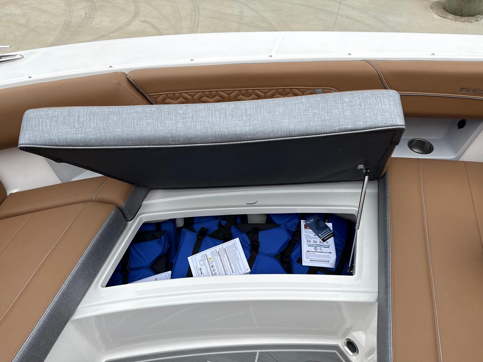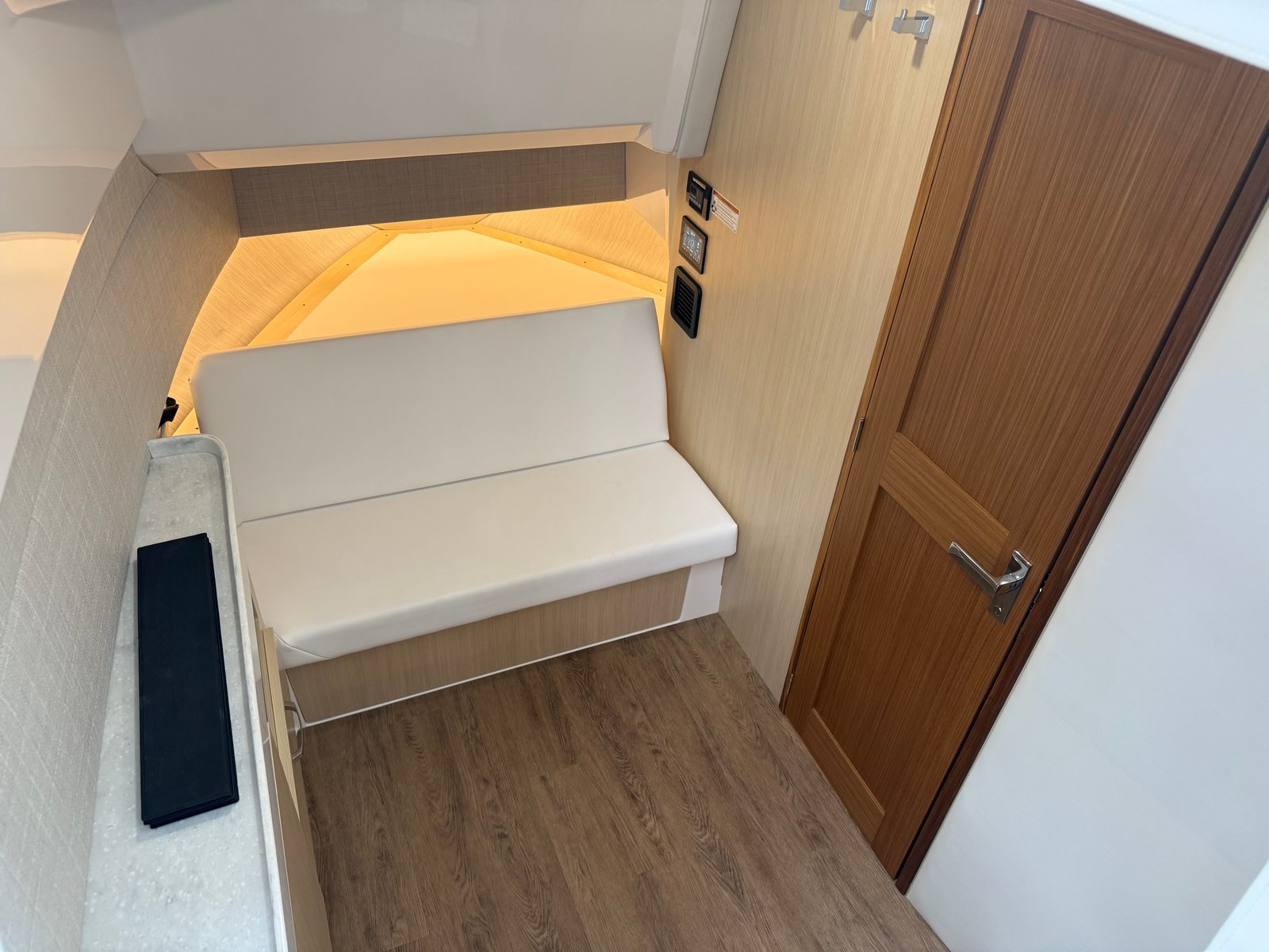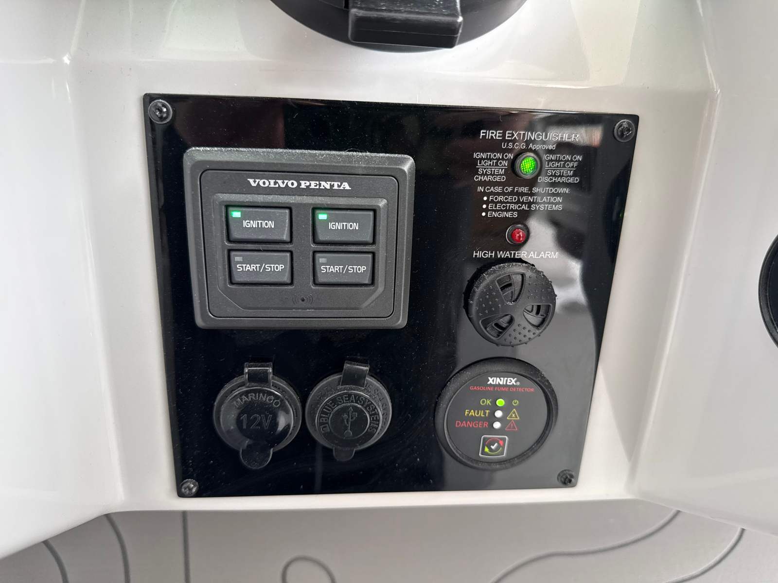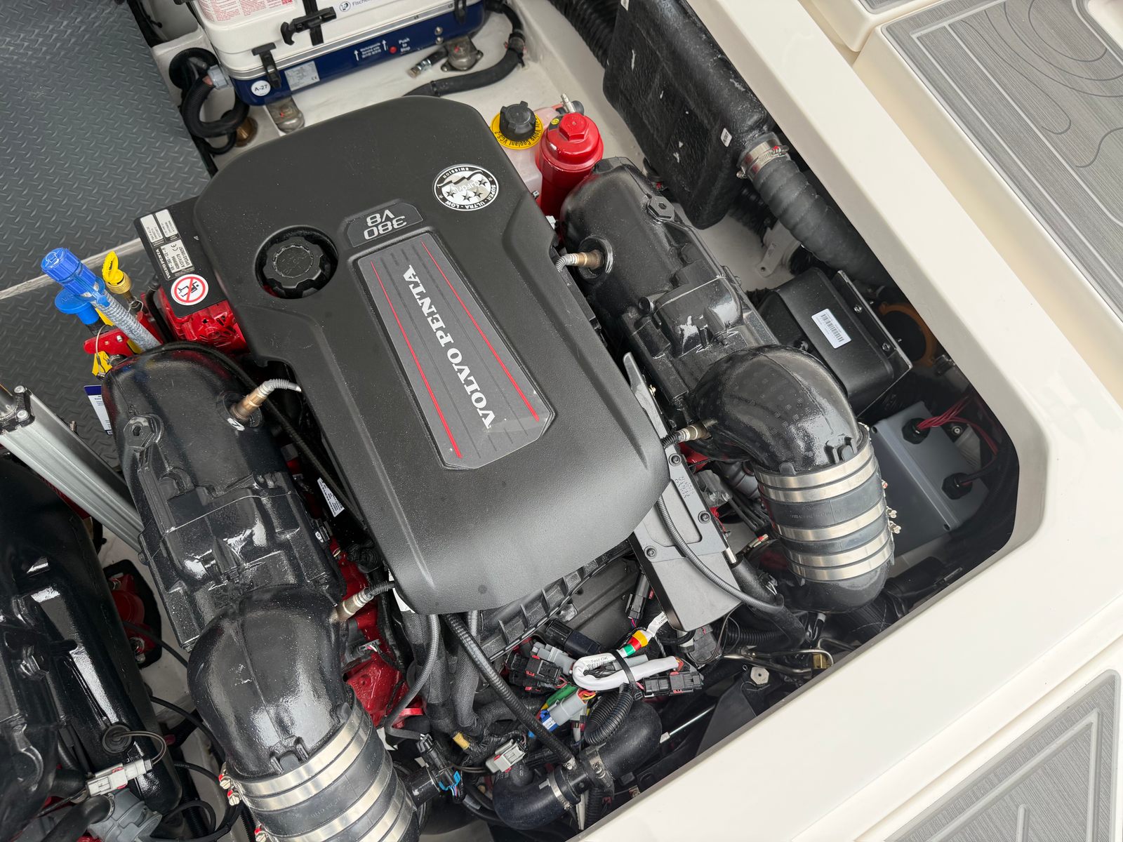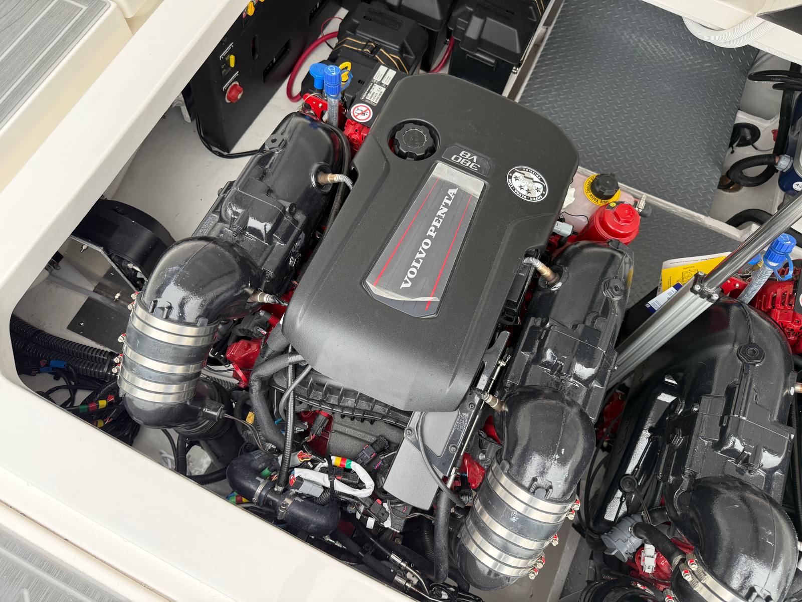 Under the hood, the Regal 38 Surf is powered by twin Volvo V8 380 FWD EVC2 DP CAT engines, delivering a combined 760 horsepower. This impressive powertrain ensures exhilarating acceleration, smooth cruising, and responsive handling, making every outing a thrill. The advanced joystick control system provides effortless maneuverability, allowing you to dock and navigate tight spaces with confidence and precision. Whether you’re carving through waves or enjoying a leisurely cruise, the performance of this bowrider is second to none.