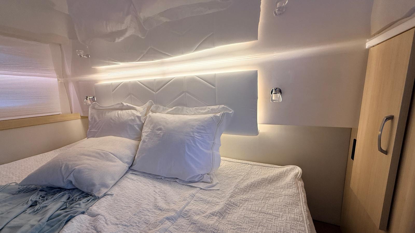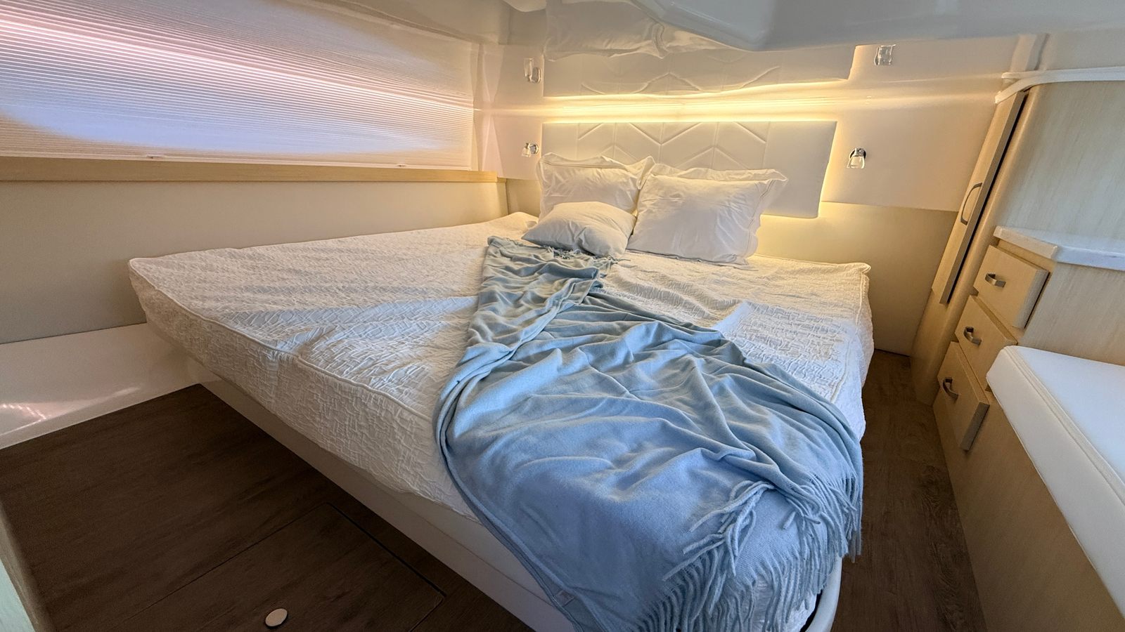 The Regal 38 XO is designed with practical ownership in mind. Its triple engine setup offers reliable performance and easy docking, making it a breeze to maneuver in tight spaces or busy marinas. The yacht’s efficient engines contribute to better fuel economy, allowing you to spend more time exploring and less time refueling. The versatile canvas options provide protection from the elements, ensuring your comfort in various weather conditions. Ample storage throughout the yacht makes it simple to stow gear, supplies, and personal items, keeping the living spaces organized and clutter-free. The combination of style, functionality, and ease of use makes this Regal boat for sale a smart investment for both seasoned boaters and newcomers alike.