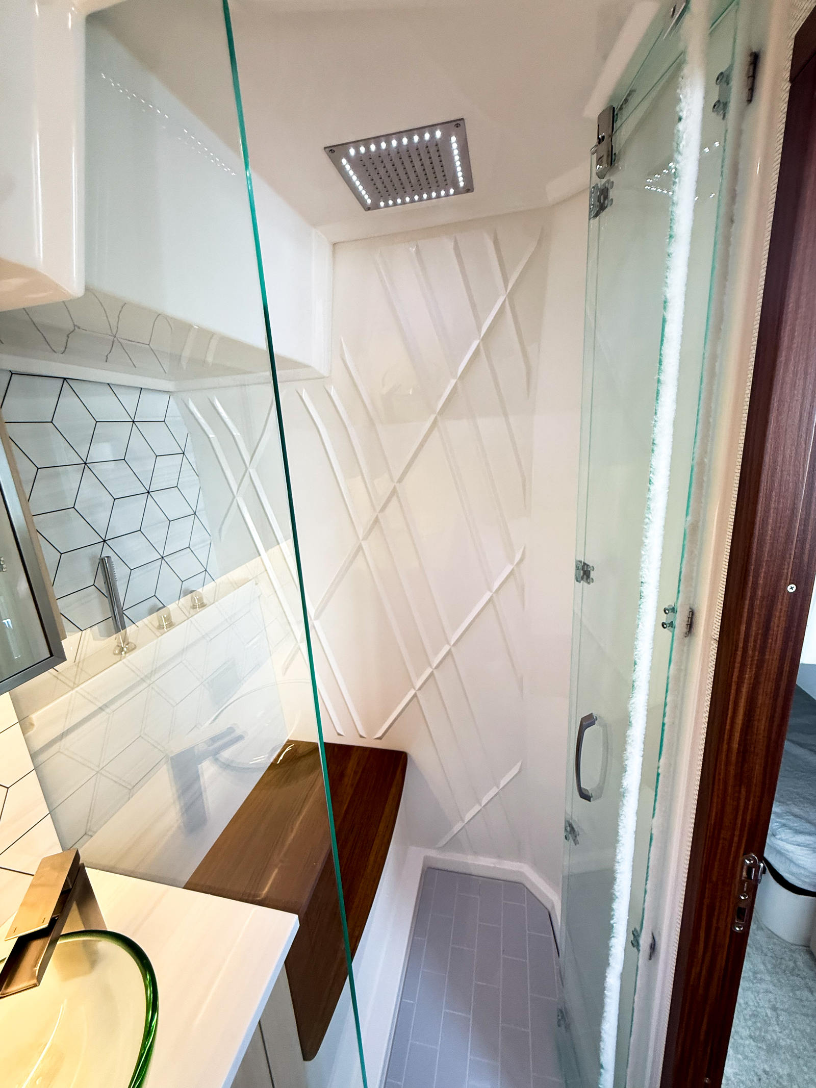 The Regal 43 SAV is designed with both style and functionality in mind. Its hull side is finished in the striking Tahiti Beach White, complemented by a sophisticated Graphite bootstripe and hull bottom. The yacht’s exterior zones are elegantly appointed, with Zones 1, 2, and 3 in Pure White, creating a clean and modern aesthetic. Zones 4 and 5 feature a rich Graphite finish, while Zone 6 is adorned in Graphite Gray, adding depth and visual interest to the overall design. These carefully selected color schemes not only enhance the yacht’s appearance but also reflect Regal’s commitment to quality and craftsmanship.