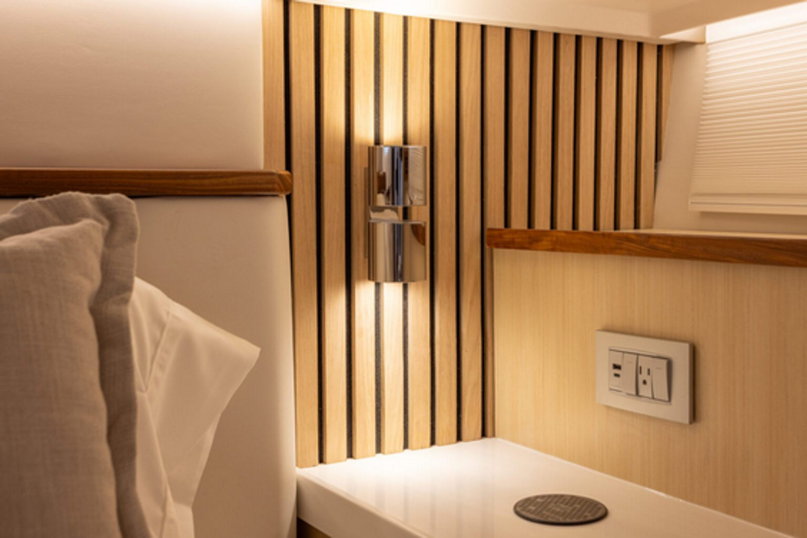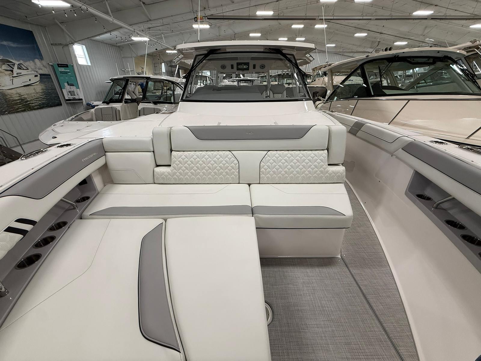 Power and precision are at the heart of the Regal 43 SAV. Equipped with three robust engines delivering a combined 1350 horsepower, this yacht is engineered for exhilarating performance and smooth handling. The triple engine configuration provides impressive acceleration, responsive maneuvering, and the confidence to tackle coastal waters with ease. Whether you are cruising at a leisurely pace or pushing the throttle for a thrilling ride, the 43 SAV delivers a dynamic boating experience that is both powerful and refined. The advanced propulsion system ensures optimal fuel efficiency and reliability, so you can focus on enjoying your time on the water.