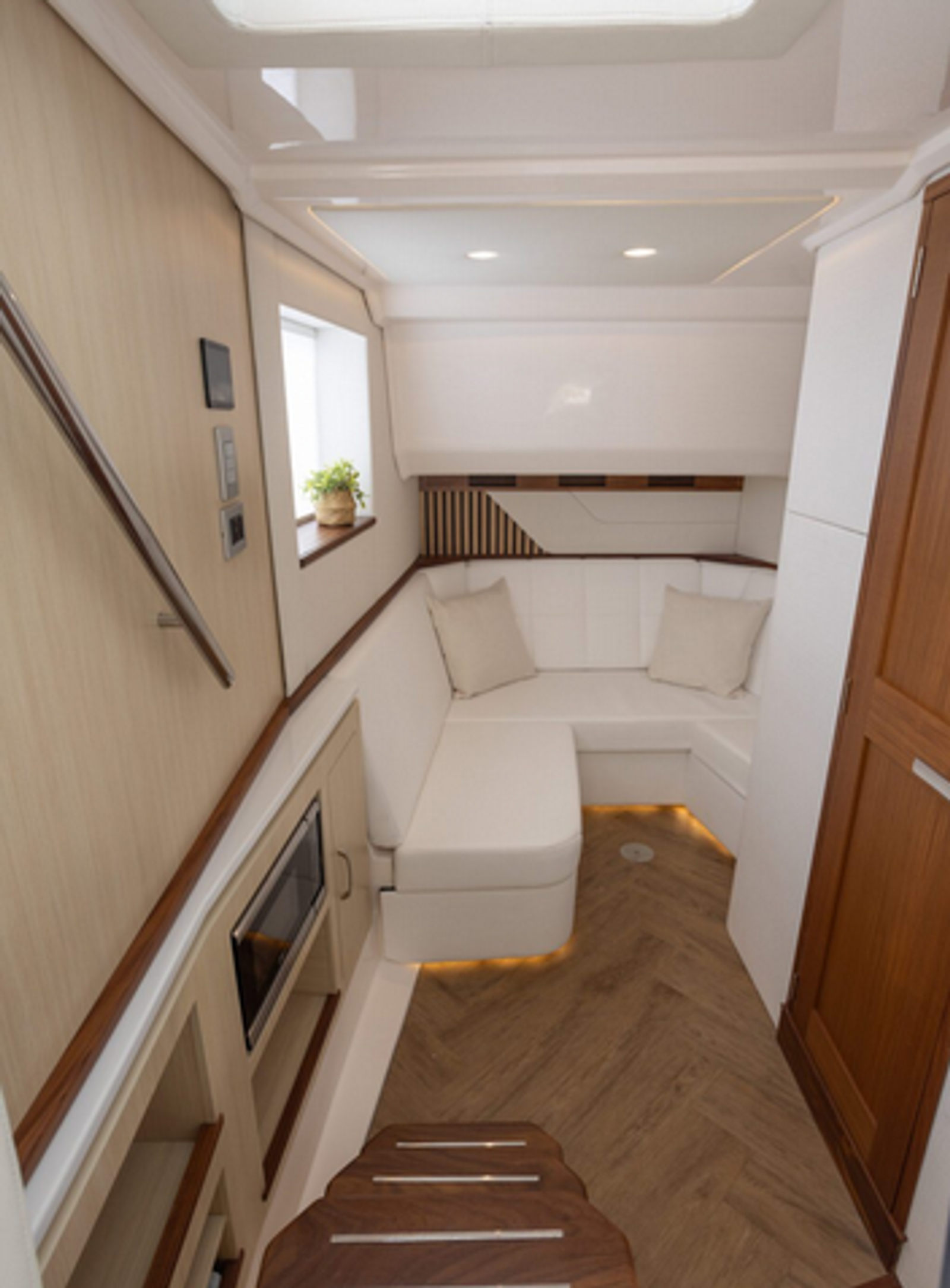 The 2026 Regal 43 SAV is the perfect yacht for a wide range of activities and adventures. Imagine setting out for a weekend getaway along the coast, with plenty of space for family and friends to relax and unwind. The spacious bow area is ideal for sunbathing, reading, or enjoying a picnic with a view. The high gloss teak table provides a stylish setting for meals and drinks, while the sunshade system ensures comfort during the hottest parts of the day. For those who love to entertain, the 43 SAV offers an inviting environment for social gatherings, celebrations, and special occasions. The yacht’s impressive performance makes it equally suited for exploring new destinations, fishing trips, or simply cruising in style. Whether you are seeking adventure or relaxation, this Regal boat for sale adapts to your needs and exceeds your expectations.