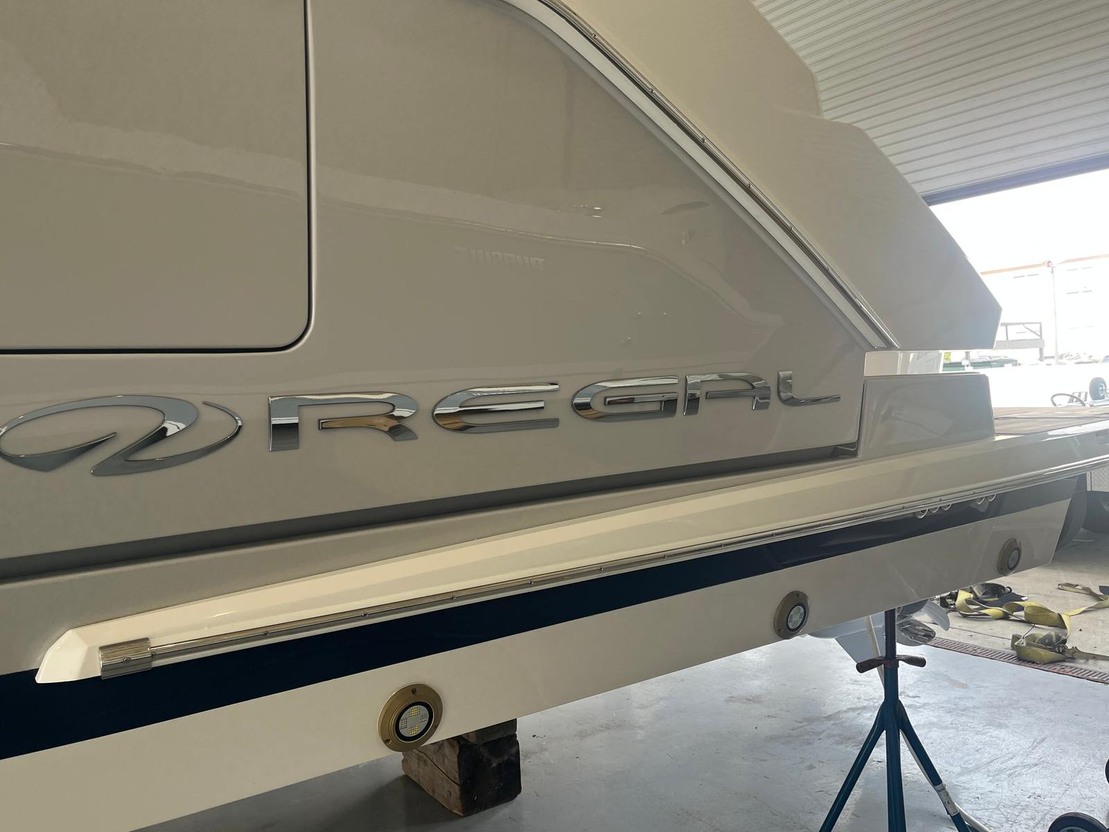 The 2026 Regal 50 SAV is a brand-new yacht that measures an impressive 50.42 feet in length, offering ample space for entertaining, relaxing, and enjoying life on the water. Its sleek lines and contemporary design are complemented by a striking color palette, including a Steel Gray hull, Mediterranean Blue bootstripe, and Tahiti Beach White bottom. This yacht’s exterior is further enhanced by a sophisticated combination of Pure White and Lunar Grey accents across multiple zones, creating a visually captivating presence whether docked at the marina or cruising open waters.