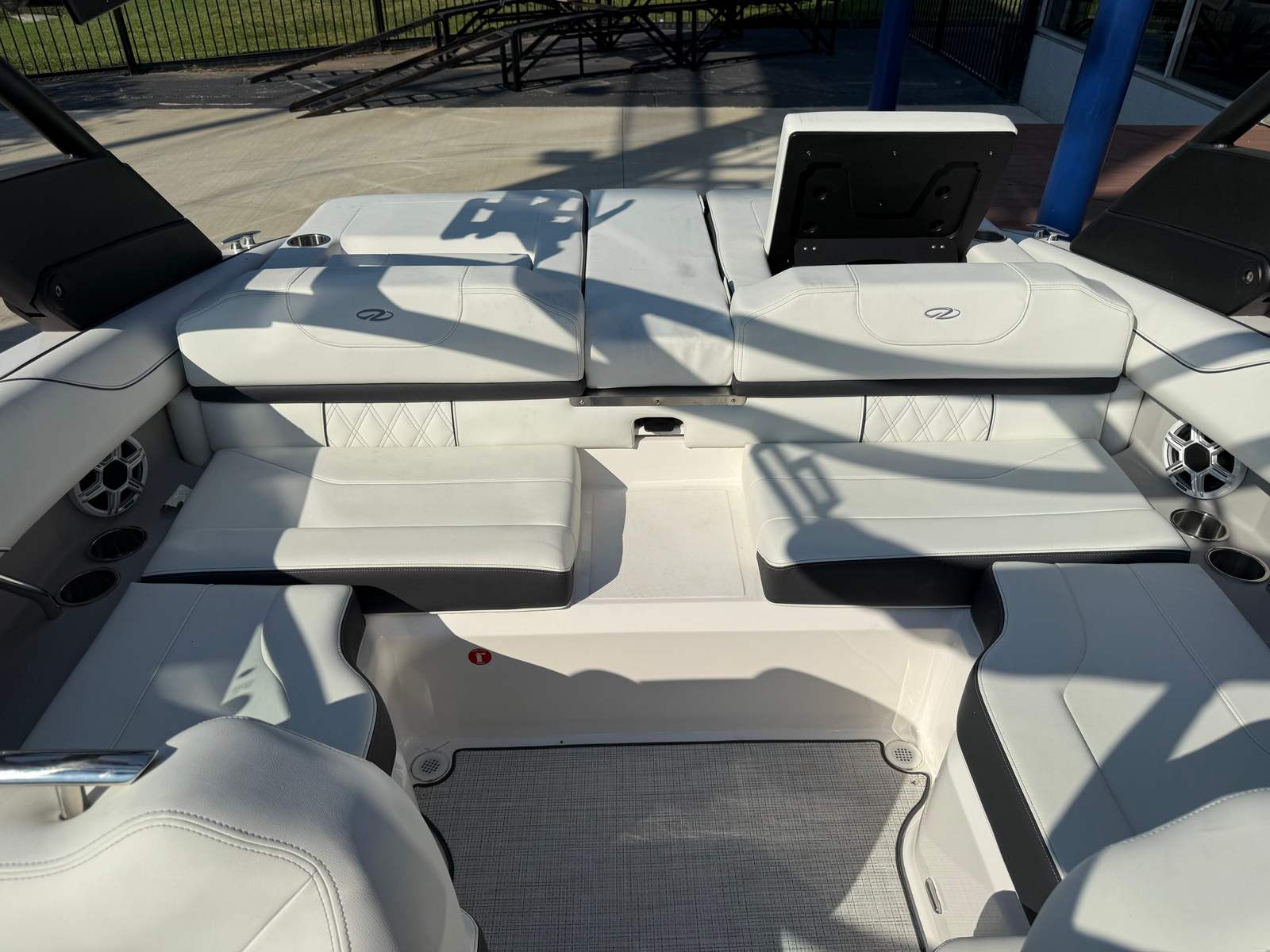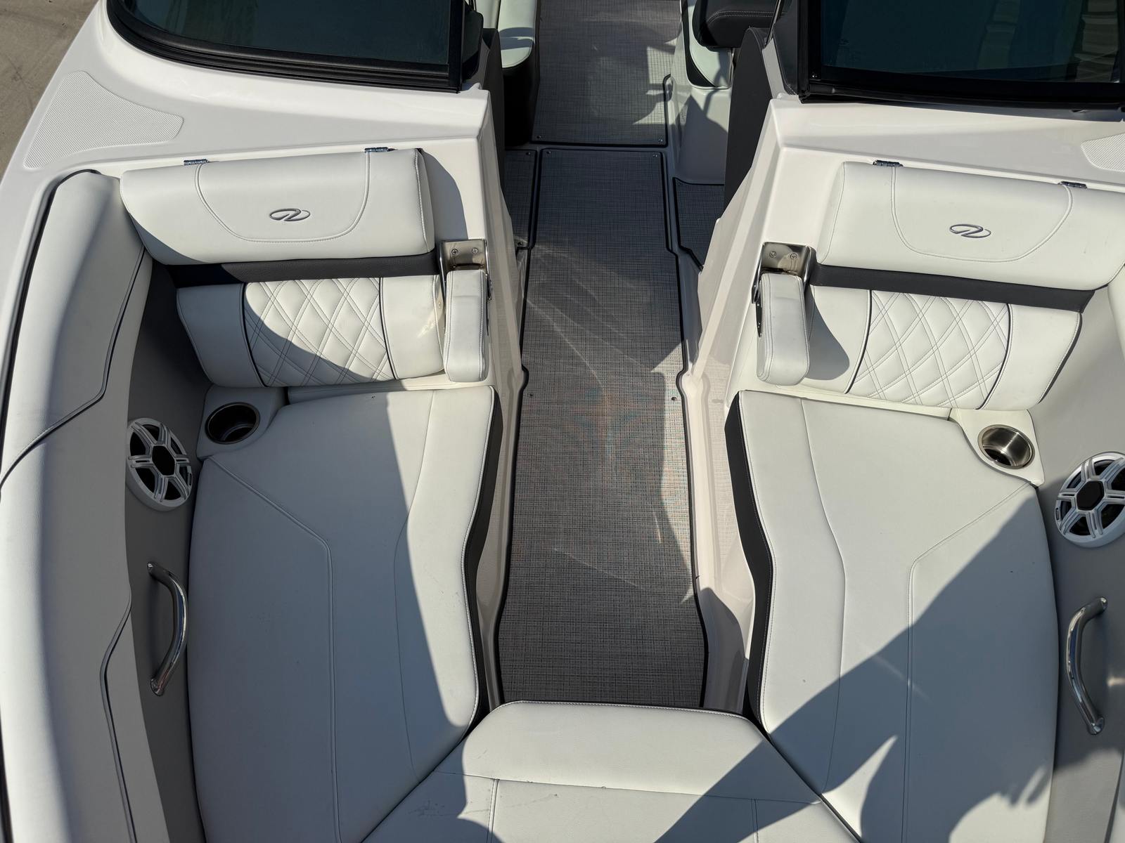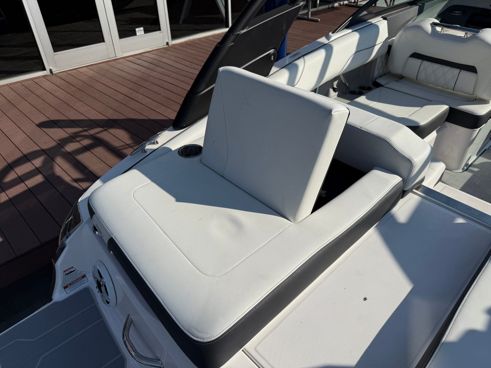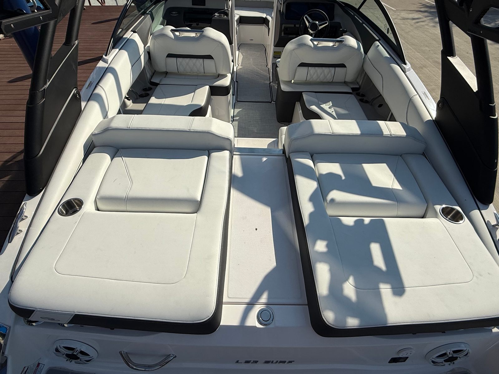 The Regal LS2 Surf is designed with practicality in mind, making ownership as enjoyable as the boating experience itself. The ample storage options throughout the boat provide plenty of space for gear, water toys, and personal belongings, keeping the deck clutter-free and organized. The forward drive system not only enhances performance but also simplifies docking and maneuvering in tight spaces. The dual battery system ensures you have reliable power for extended outings, while the durable travel cover and canvas protect your investment from the elements. The SeaDek Swim Platform and Seagrass Mat add both comfort and safety, making it easy to transition from water to deck and vice versa.