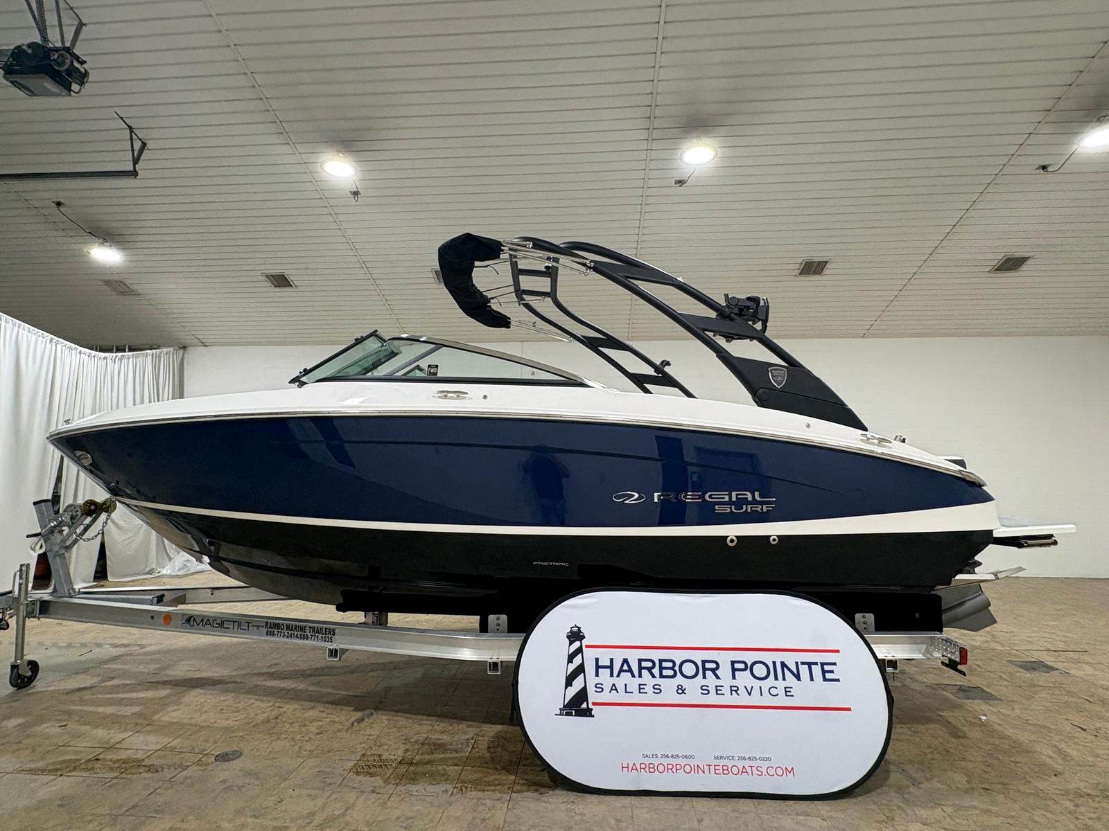 The 2026 Regal LS4 Surf is a brand-new bowrider that measures an impressive 24.42 feet in length, offering ample space for friends and family to relax and enjoy the ride. Regal’s reputation for quality craftsmanship and attention to detail is evident in every inch of this model. The Mediterranean Blue hull, accented with Black and Titanium details, gives the LS4 Surf a modern, sophisticated look that is sure to turn heads at the marina or out on open water. With only one engine hour, this boat is in pristine condition and ready for its first adventure.