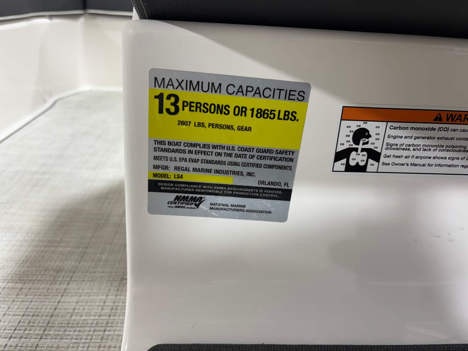 Beyond its impressive performance and comfort, the Regal LS4 Surf is designed with practical features that make ownership a breeze. The travel storage cover protects your boat from the elements, preserving its beauty and value for years to come. The dual battery switch with tray and cables offers peace of mind, ensuring you always have reliable power for your electronics and accessories.The SeaDek Swim Platform and Seagrass Mat in the cockpit enhance safety and comfort, making it easy to move around the boat and enjoy all your favorite activities. The LS4 Surf’s manageable length and advanced handling features make docking and maneuvering simple, even for less experienced boaters. With its efficient engine and thoughtful design, this bowrider is as practical as it is fun, offering low-maintenance enjoyment for every outing.