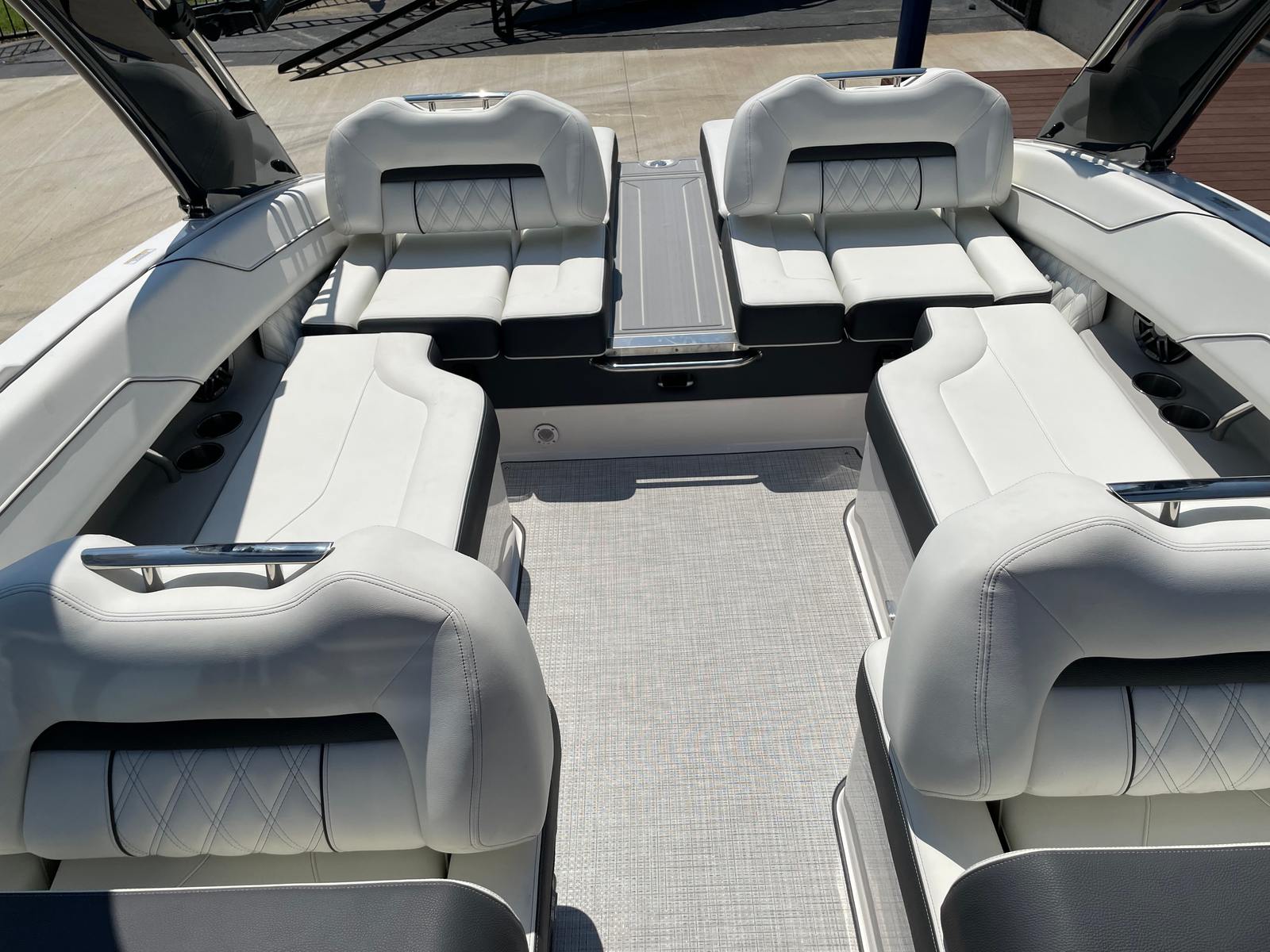 The 2026 Regal LS4 Surf Bowrider is packed with features that enhance both convenience and enjoyment. The Travel Storage Cover (Black) keeps your boat protected when not in use, while the Black Canvas adds a touch of sophistication to the overall aesthetic. Inside the cockpit, the Seagrass Mat provides a comfortable and stylish surface for passengers, and the SeaDek Swim Platform offers a safe, non-slip area for swimming and watersports activities.For added peace of mind, the Dual Battery Switch with Tray and Cables ensures reliable power management, and the Battery Charger keeps your boat ready for action at all times. These thoughtful additions make the LS4 Surf a standout choice among Bowrider boats for sale, combining luxury with practicality.