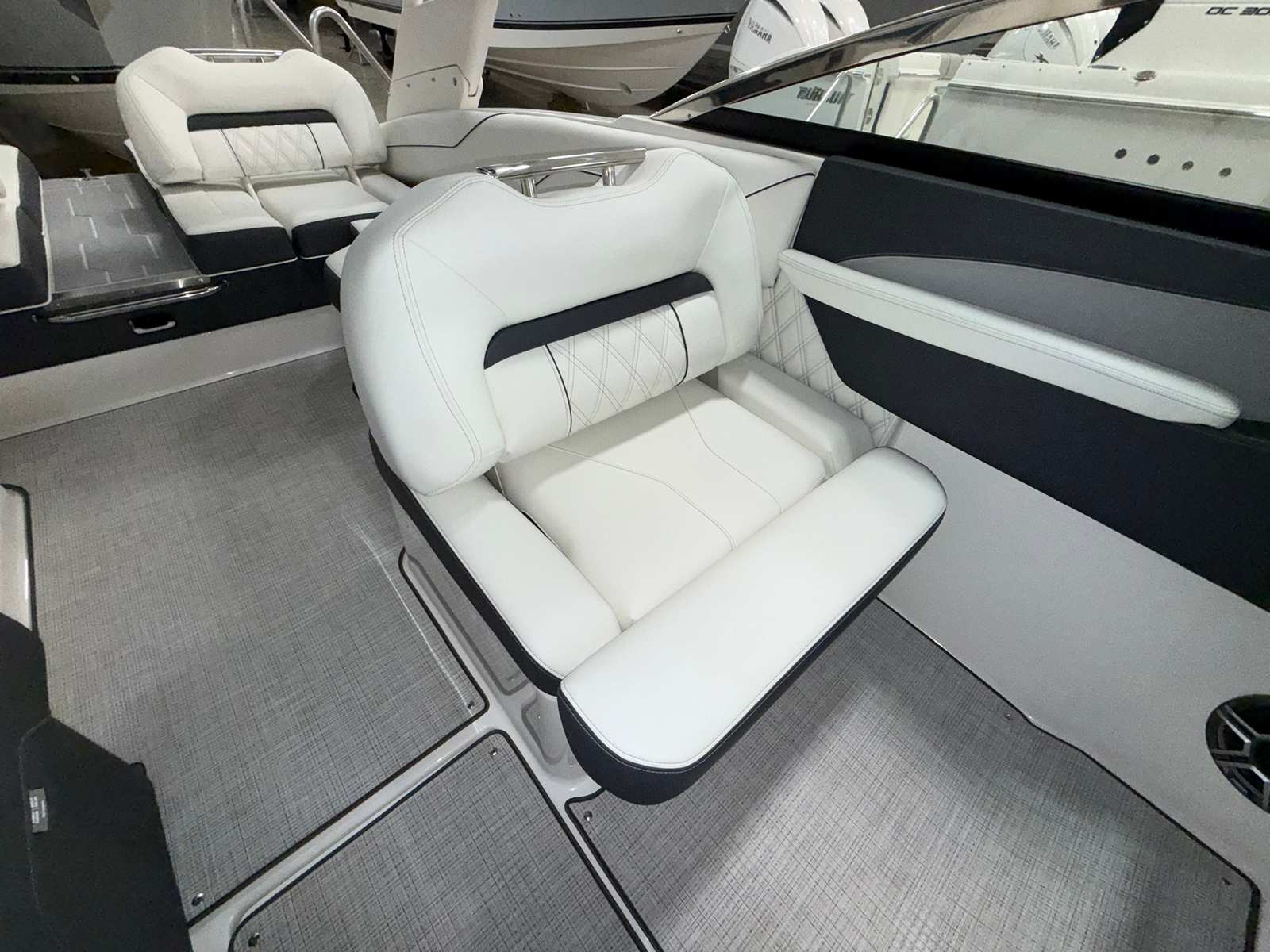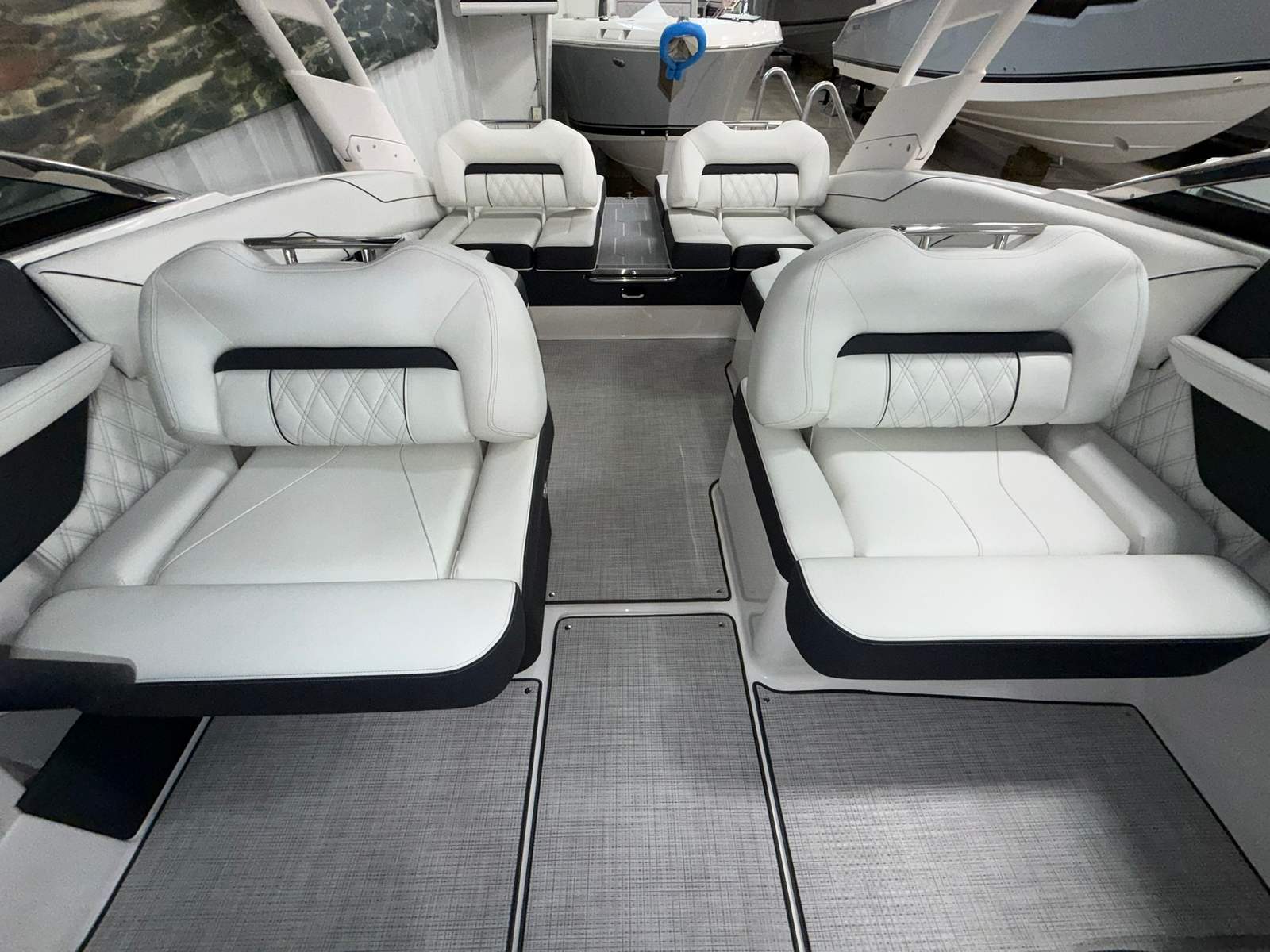 The Regal LS4 is as practical as it is luxurious. Its user-friendly design makes docking and maneuvering a breeze, thanks to the integrated Bow Thruster and Bow Walk-Thru Doors. The included covers help protect your boat from sun and weather, preserving its beauty and value for years to come. The Battery Charger keeps your systems powered up and ready, so you can focus on enjoying your time on the water. Storage is thoughtfully integrated throughout the LS4, allowing you to stow gear, water toys, and personal items with ease. The Cockpit Seagrass Mat not only adds comfort but is also easy to clean, making maintenance simple and stress-free. Every detail of the LS4 is designed to enhance your boating experience, from the moment you step aboard to the end of your adventure.