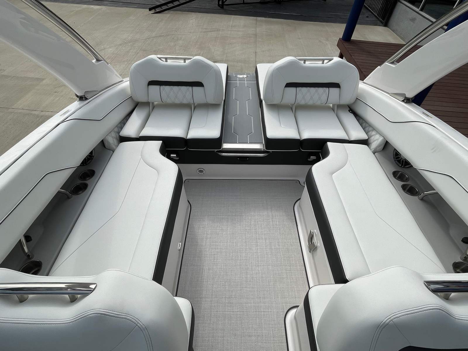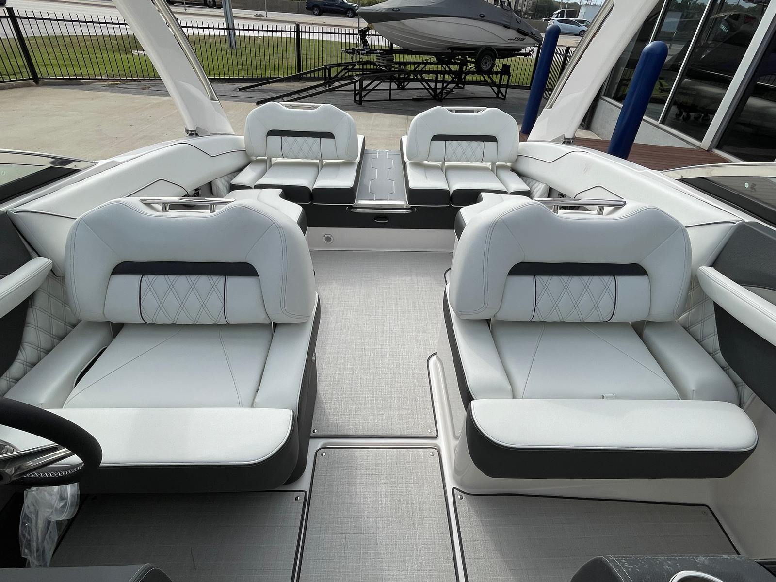 The Regal LS4 is designed with practicality in mind, making ownership as enjoyable as your time on the water. The travel storage cover protects your investment from the elements, while the dual battery switch ensures reliable power management for all your onboard electronics. The cockpit seagrass mat is easy to clean and maintain, keeping your boat looking fresh after every outing. Docking and maneuvering are a breeze thanks to the responsive handling and efficient design, allowing you to spend more time enjoying the water and less time worrying about logistics.