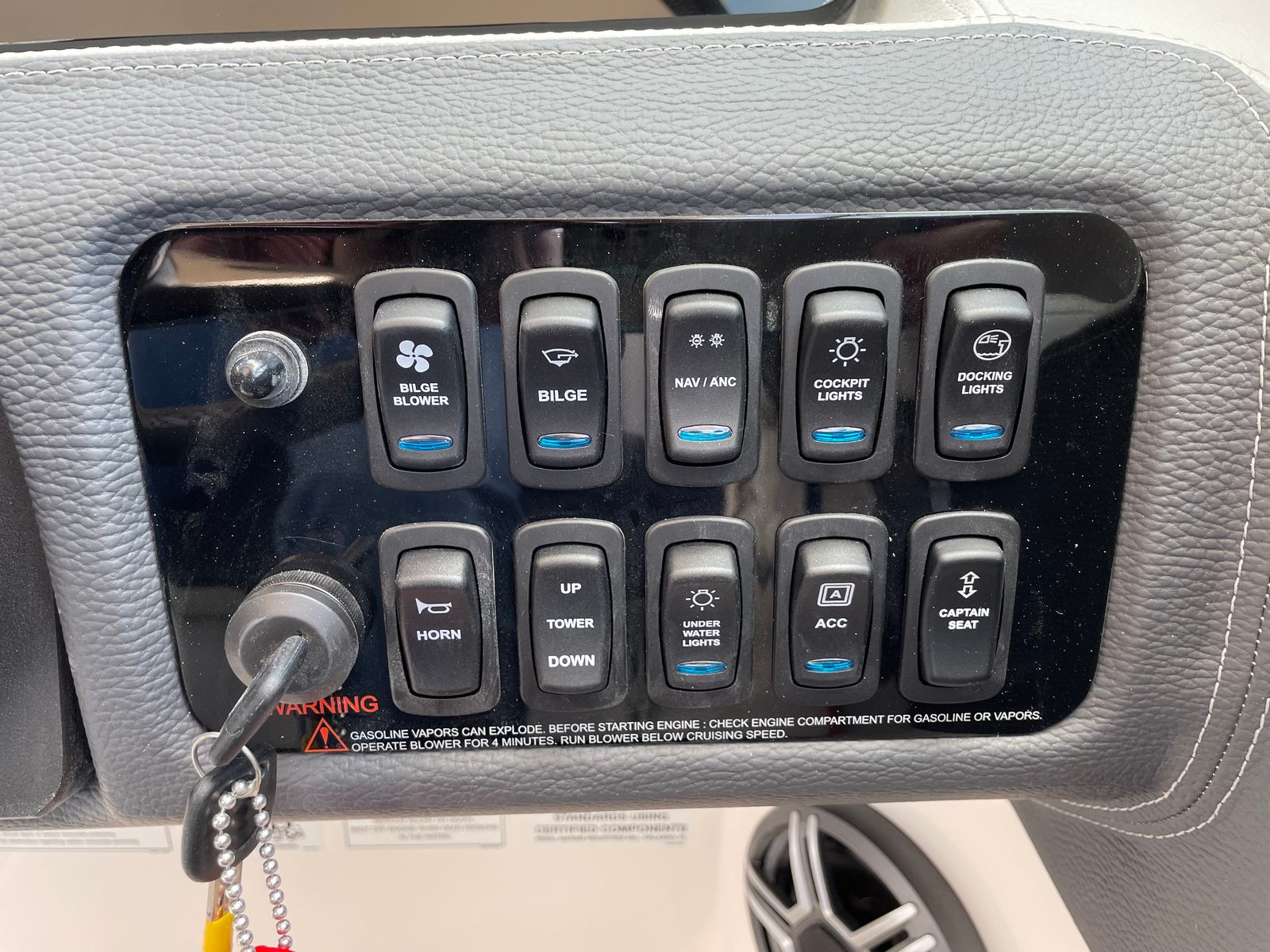 The 2026 Regal LS4 comes loaded with special features that enhance both functionality and enjoyment. The Travel Storage Cover protects your investment when the boat is not in use, while the Cockpit Seagrass Mat adds a touch of luxury underfoot and is easy to clean. The Dual Battery Switch with Tray and Cables, along with the Battery Charger, ensures you have reliable power for all your onboard systems. Docking Lights provide added safety and visibility during evening arrivals, and the Underwater Lighting in blue creates a captivating ambiance for nighttime gatherings. The Stereo Performance & Lighting Package delivers premium sound quality and dynamic lighting effects, setting the perfect mood for every outing.