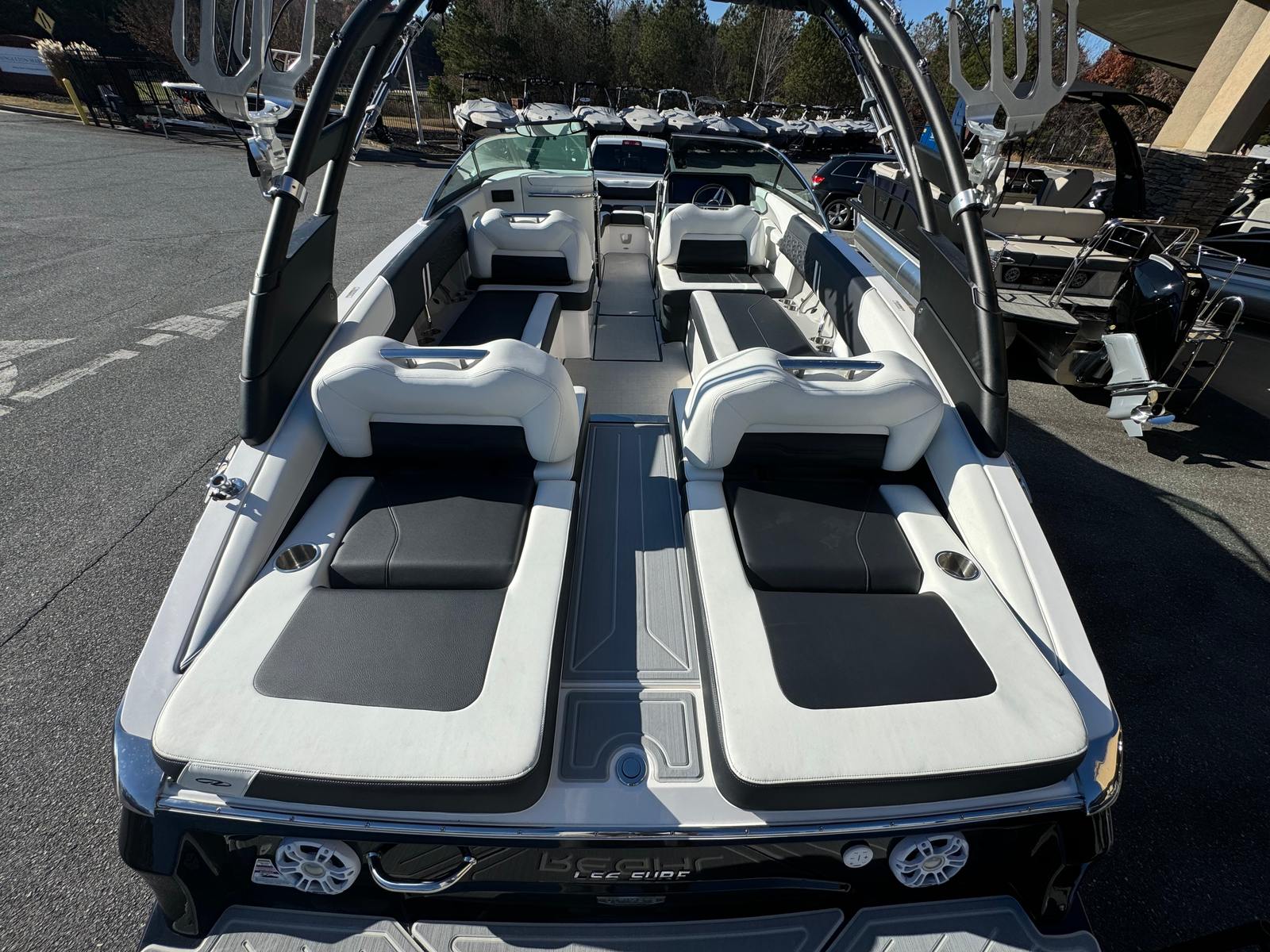 The Regal LS6 Surf is engineered for convenience as well as fun. Fender Clips simplify the docking process, allowing you to secure your boat quickly and confidently. Docking Lights enhance safety during low-light conditions, making evening outings worry-free. The Bow Walk-Thru Doors offer easy access for loading gear or welcoming guests, while the cockpit table provides a versatile space for dining, games, or relaxation. The forward-drive engine technology contributes to fuel efficiency and smooth handling, making every trip enjoyable and cost-effective. Whether you’re storing water sports equipment, preparing for a day on the lake, or docking at your favorite marina, the LS6 Surf’s thoughtful features make ownership a pleasure.