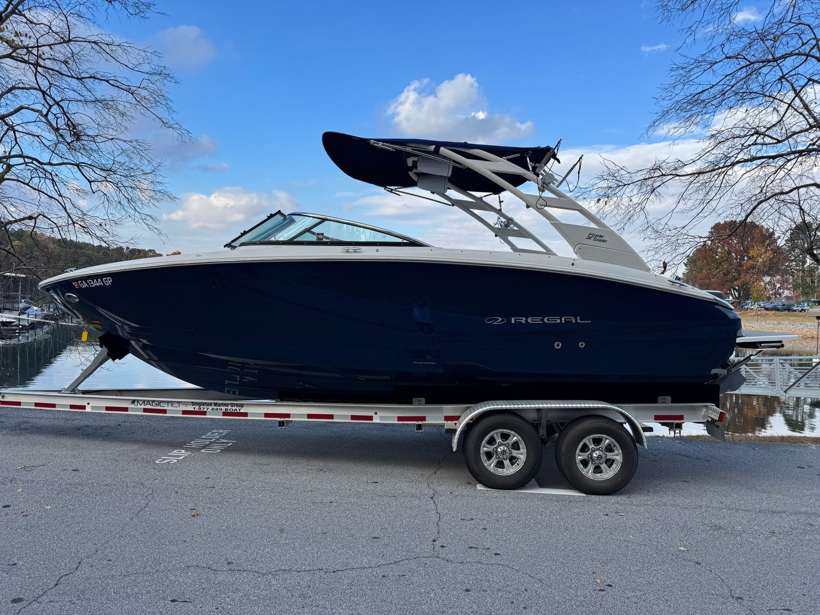 2022 REGAL LS6 SURF - LOW HOURS – TRAILER INCLUDED ONLY 186 HOURS ON THE V8 350 HP VOLVO PENTA. BOAT NEEDS NOTHING. FEATURES INCLUDE BUT NOT LIMITED TO: -WINDLASS -POWER FOLDING TOWER -REVERSE FACING DRIVE -DUAL SCREENS -SURF TABS/PNP BAGS -JL AUDIO TOWER SPEAKERS -HEAD COMPARTMENT -SWIVEL BOARD RACKS -DOCKING LIGHTS -SNAP IN FLOORING -FULL COVER MUCH MORE THAN WHAT ALL IS LISTED HERE.