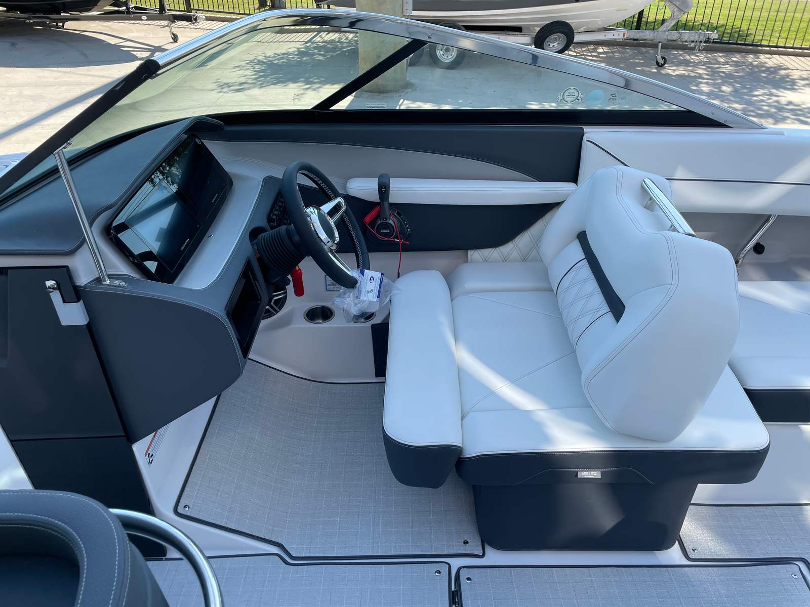 The 2026 Regal LS6 Bowrider is packed with premium features that enhance comfort, convenience, and style. The hull is finished in a sophisticated Steel Gray, complemented by a Tahiti Beach White bootstripe and matching Steel Gray bottom color. The Titanium interior exudes elegance and durability, creating a welcoming environment for passengers. For added protection and style, the boat comes with a black travel storage cover and Steel Grey canvas, ensuring your investment stays pristine.Onboard, you’ll find a Cockpit Seagrass Mat that adds a touch of luxury underfoot, while the SeaDek Swim Platform provides a safe and comfortable space for swimmers and sunbathers. The dual battery switch with tray and cables offers peace of mind, ensuring reliable power management for all your onboard electronics and accessories. Every detail of the LS6 is designed to maximize enjoyment and minimize hassle, making it a standout choice among Bowrider boats for sale.