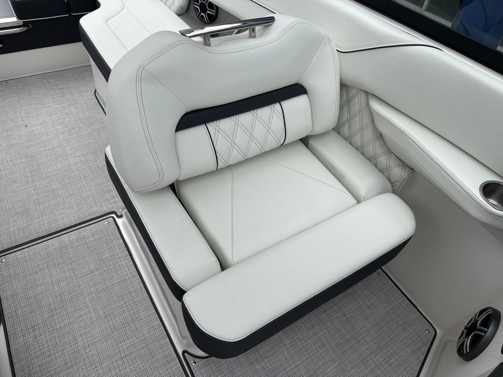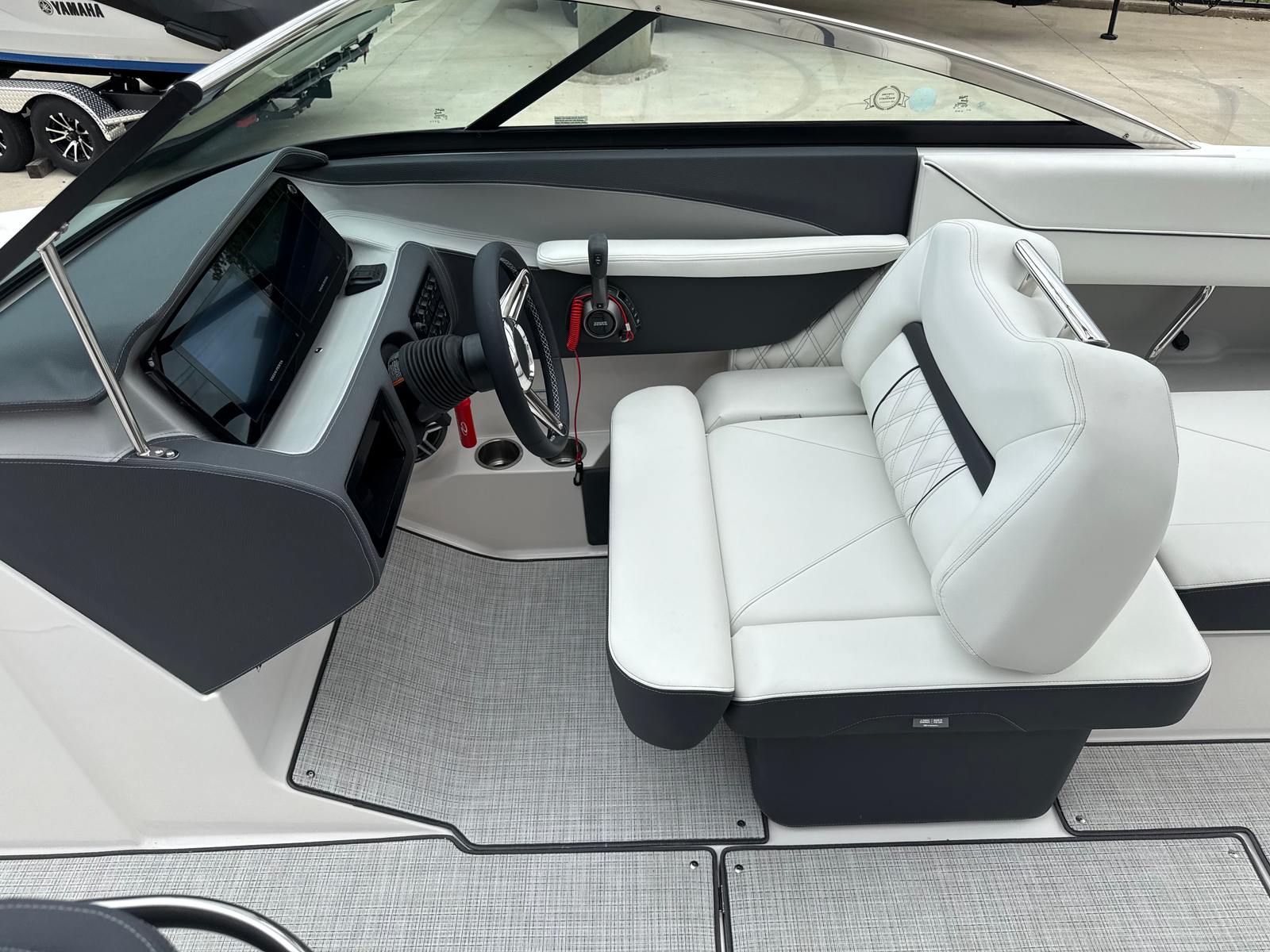The Regal LS6 is designed with practicality in mind, making every aspect of ownership more enjoyable. The travel storage cover helps protect your boat from the elements, while the dual battery switch system offers peace of mind by ensuring you always have backup power when you need it. The docking lights simplify nighttime arrivals and departures, enhancing safety and convenience. The pump-out toilet fittings make it easy to extend your time on the water without sacrificing comfort or cleanliness. With its manageable length and advanced forward drive system, the LS6 is easy to dock and maneuver, even for those new to boating.