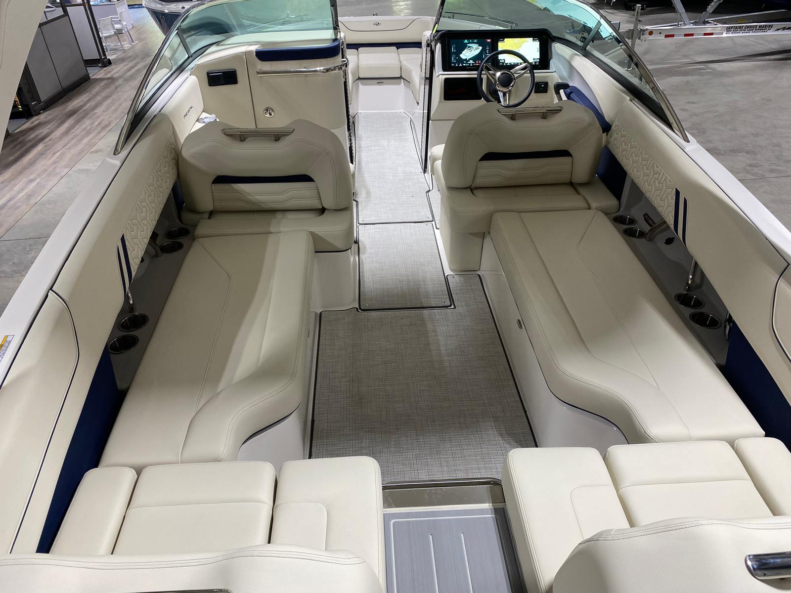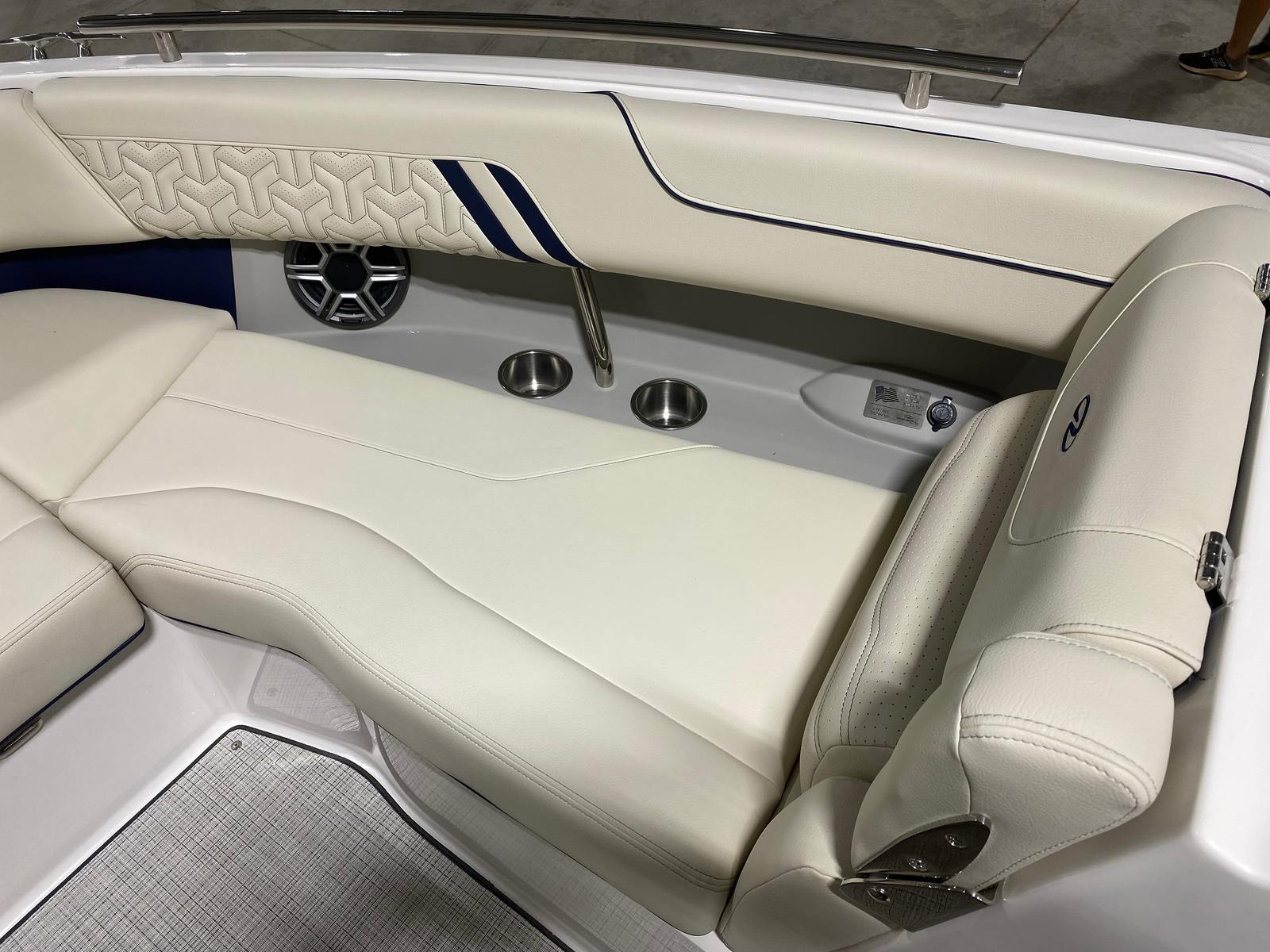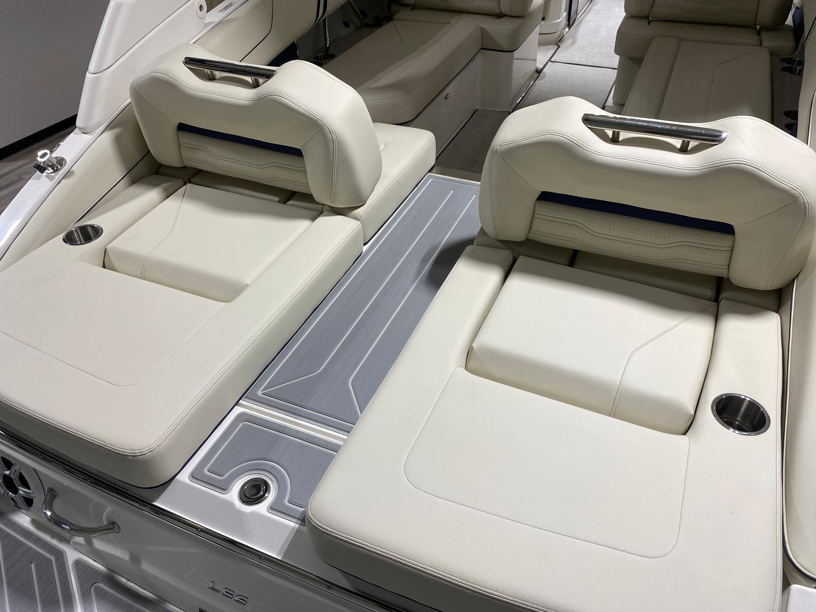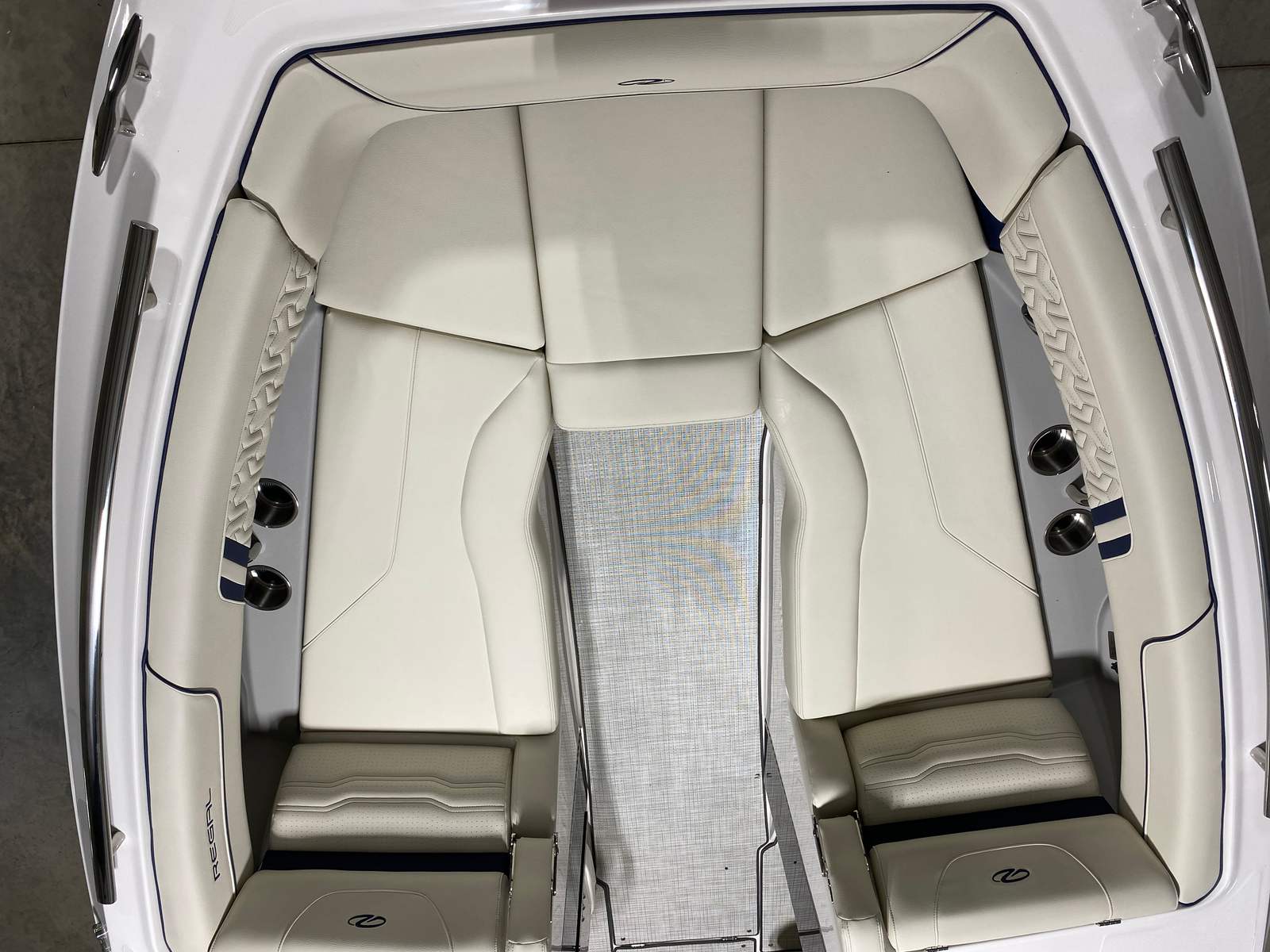 The 2026 Regal LS6 is packed with features that enhance both its appearance and functionality. The hull side in Steel Gray, complemented by the Tahiti Beach White bootstripe and Mediterranean Blue hull bottom, creates a striking visual impression. The white swim platform provides a convenient and stylish entry point for swimming, lounging, or water sports activities. The interior zones—Zone 1, Zone 2, and Zone 3—are finished in Vista White, offering a clean and inviting atmosphere, while Zones 4 and 5 feature Mediterranean Blue - Chil accents for a touch of sophistication. These carefully selected color combinations not only elevate the boat’s aesthetic appeal but also create a relaxing and enjoyable environment for all on board.