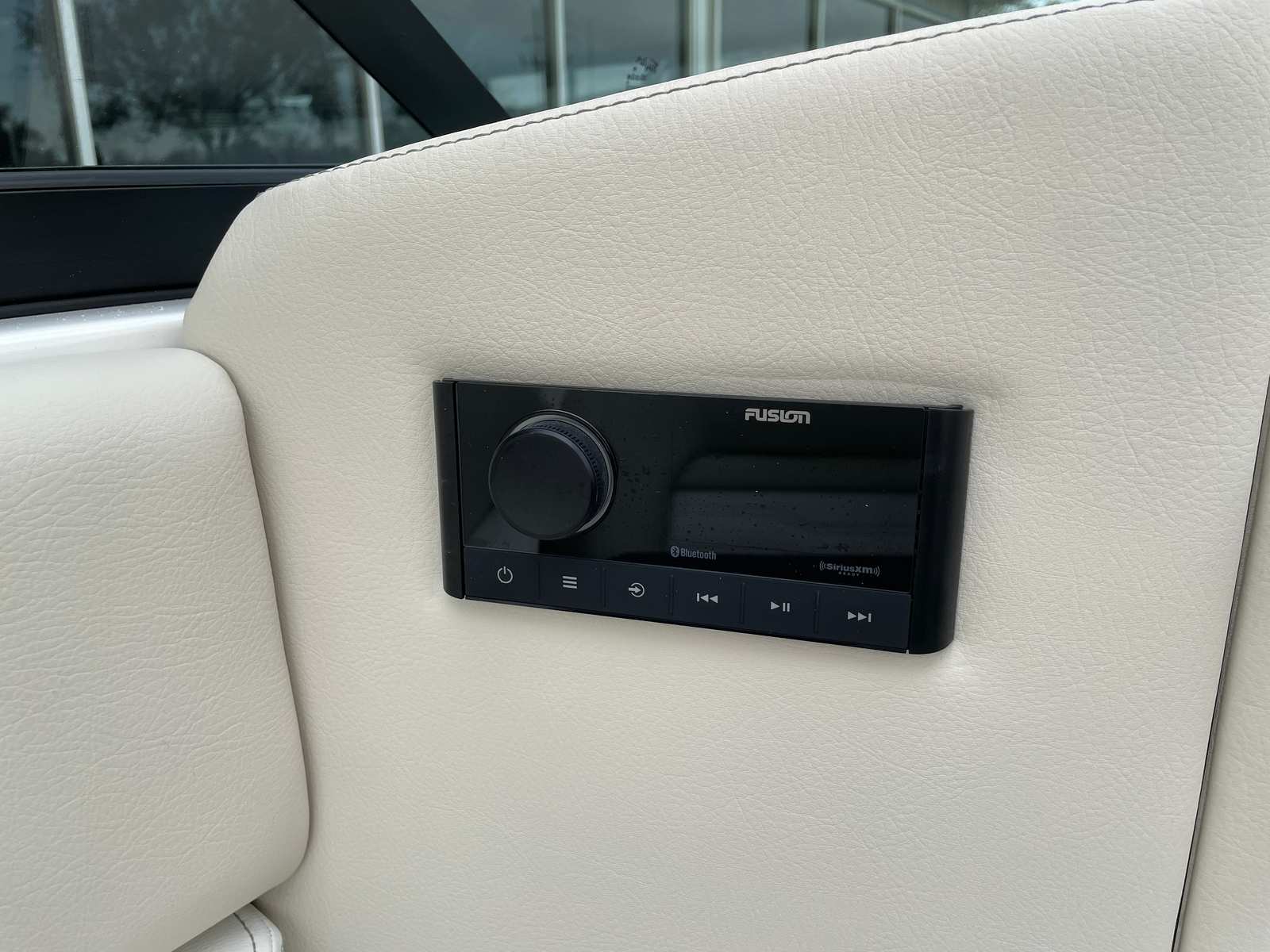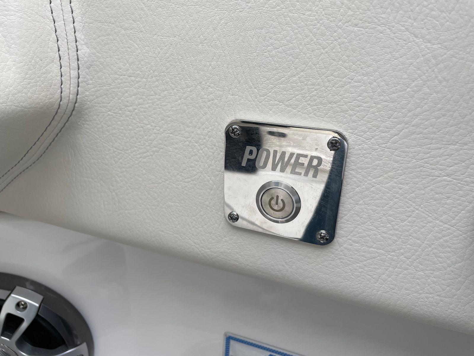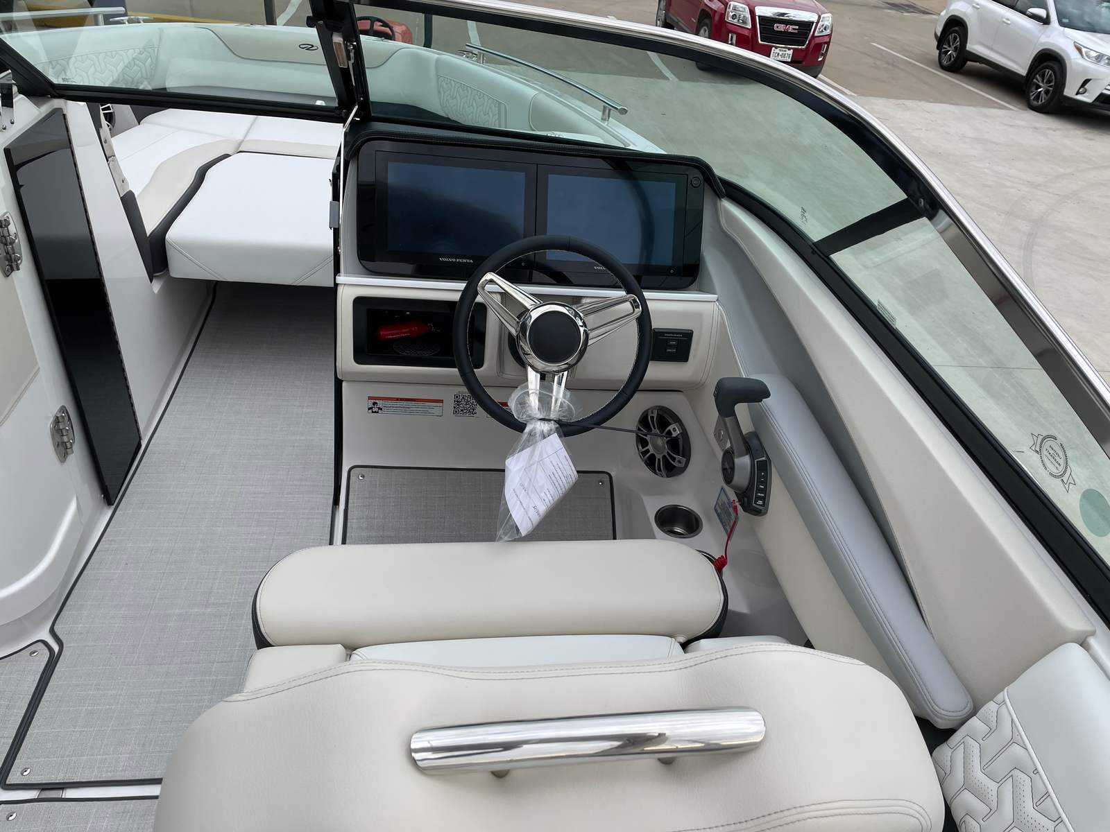 The Regal LS6 is designed with both style and functionality in mind, boasting a range of special features that enhance every aspect of your boating experience. The hull is finished in a striking Tahiti Beach White, complemented by a sophisticated Steel Grey bootstripe and a Seafoam bottom color. The swim platform matches the bottom color, creating a seamless and visually appealing look that sets this boat apart from the crowd.Inside, the LS6 features a thoughtfully designed interior with color zones that include Pure White, Graphite, Vista White, and Lunar Grey, creating a modern and inviting atmosphere. The spacious bow seating area is perfect for lounging in the sun or socializing with guests, while the ergonomic helm provides excellent visibility and intuitive controls for the captain. Every detail, from the upholstery to the layout, is crafted to maximize comfort and enjoyment on the water.