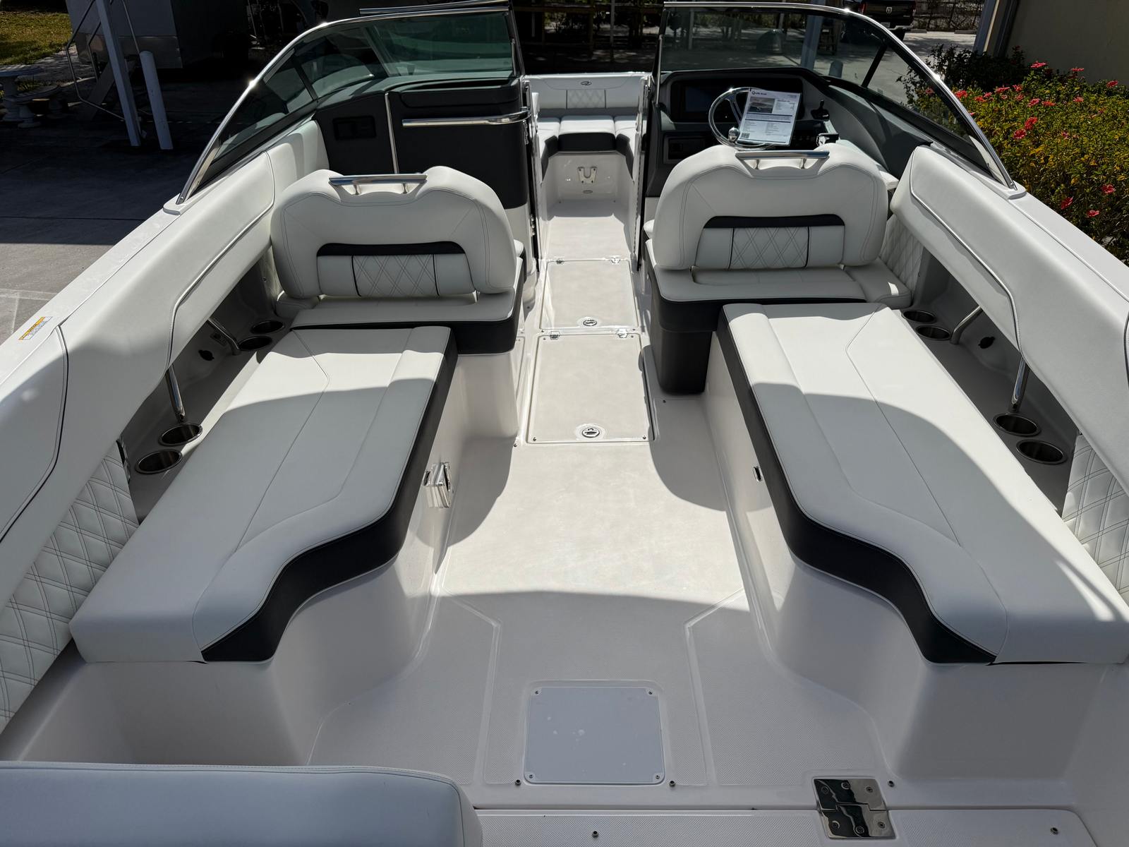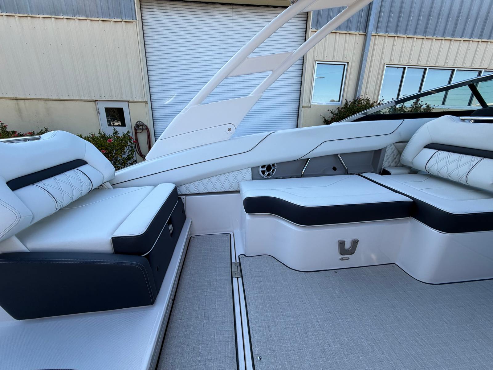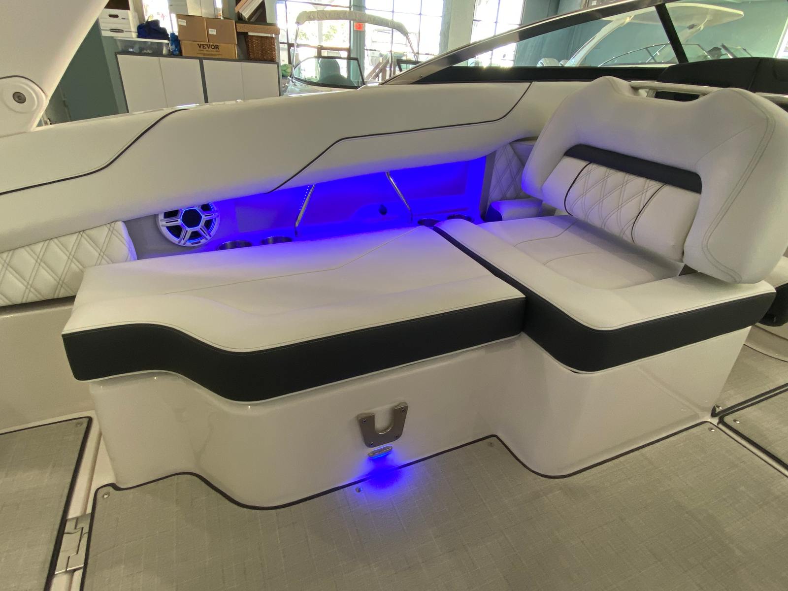 The Regal LX4 is packed with special features that set it apart from other Bowrider boats for sale. The bow thruster provides superior control, allowing you to navigate with confidence in crowded marinas or challenging conditions. Underwater lighting in vibrant blue adds a touch of elegance and creates a captivating ambiance for evening cruises. The port light—half moon design—brings natural light into the cabin, enhancing the overall atmosphere and comfort.A dedicated head compartment offers convenience for longer outings, ensuring that you and your guests can enjoy extended time on the water without sacrificing comfort. The dual battery switch with tray and cables ensures reliable power management, so you can focus on fun without worrying about electrical issues. The stainless steel upgrade package adds durability and a polished look to key hardware and fittings, while the Mediterranean Blue hull color turns heads wherever you go.Bow walk-thru doors make moving between the cockpit and bow safe and easy, while fender clips simplify docking and protect your investment. The cockpit seagrass mat provides a soft, stylish surface underfoot, enhancing both comfort and aesthetics.
