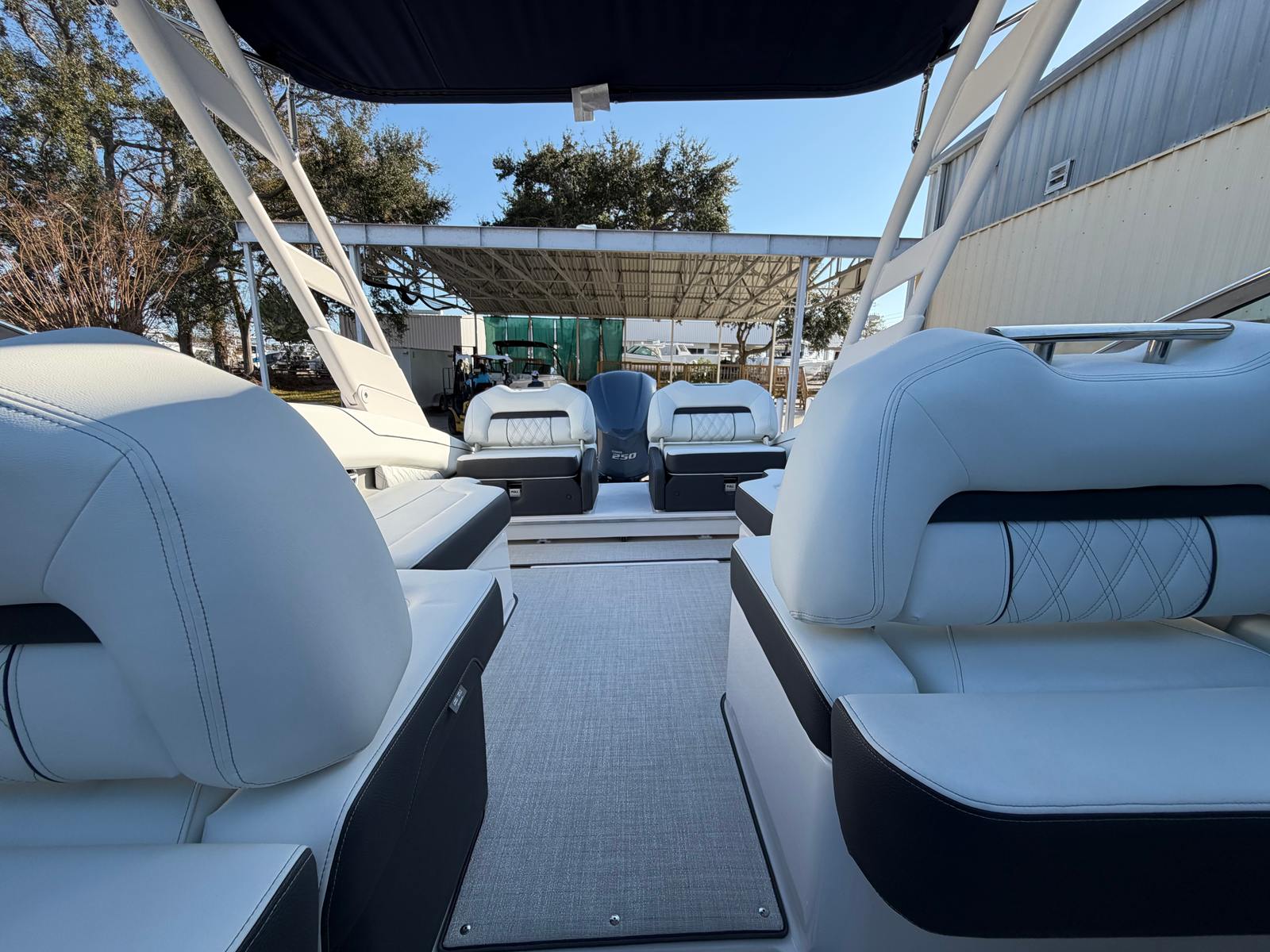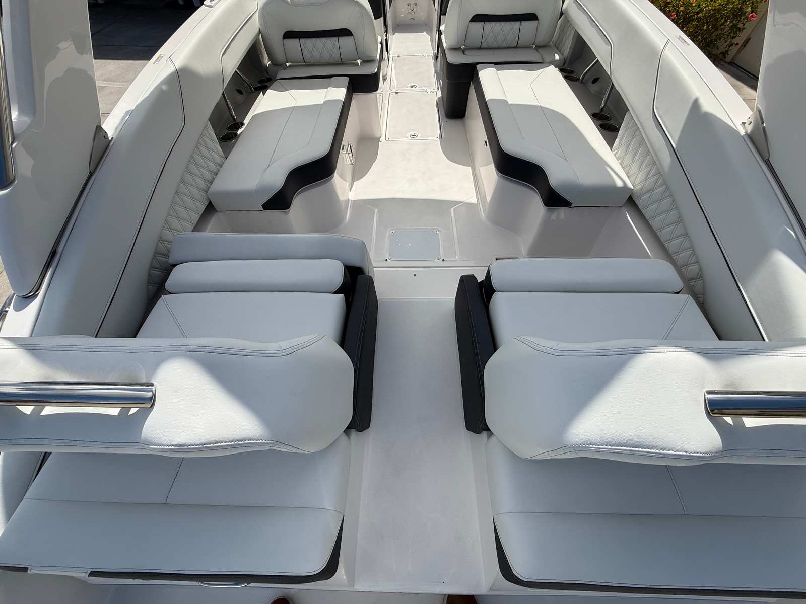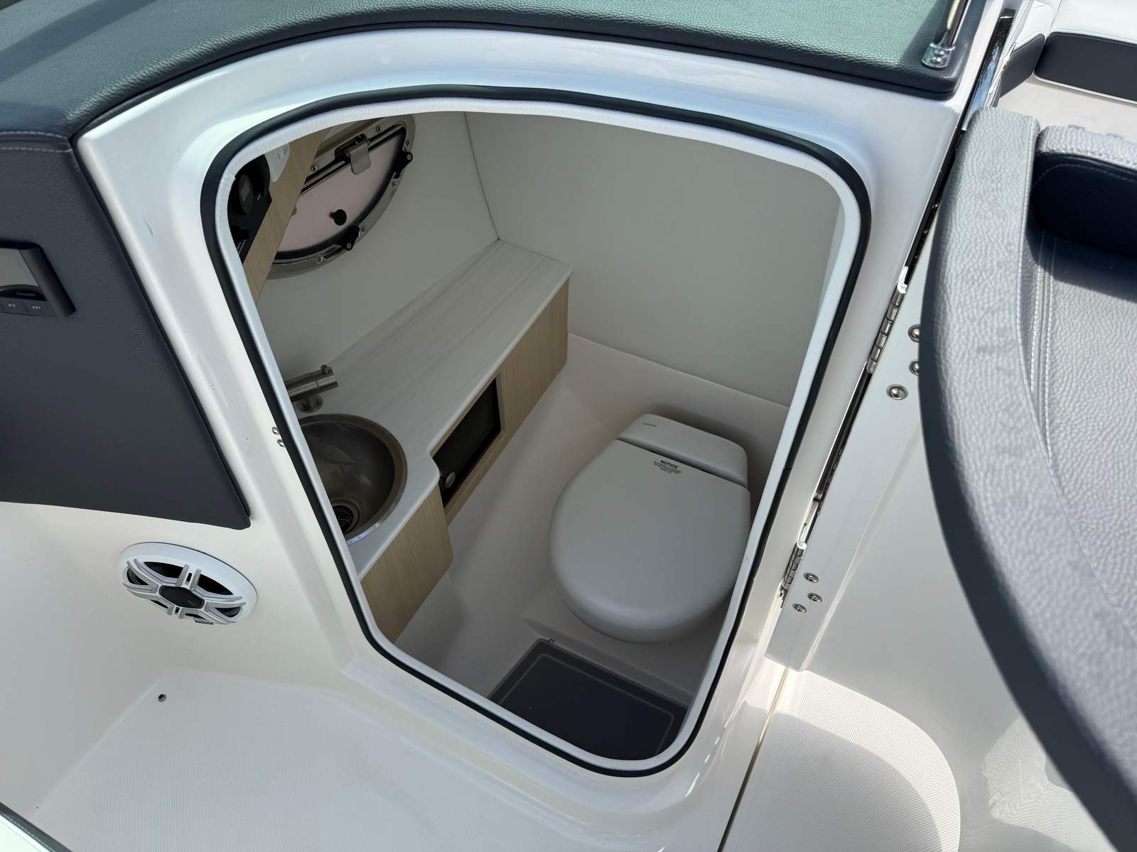 The Regal LX4 is packed with special features that set it apart from other Bowrider boats for sale. The bow thruster provides superior control, allowing you to navigate with confidence in crowded marinas or challenging conditions. Underwater lighting in vibrant blue adds a touch of elegance and creates a captivating ambiance for evening cruises. The port light—half moon design—brings natural light into the cabin, enhancing the overall atmosphere and comfort.A dedicated head compartment offers convenience for longer outings, ensuring that you and your guests can enjoy extended time on the water without sacrificing comfort. The dual battery switch with tray and cables ensures reliable power management, so you can focus on fun without worrying about electrical issues. The stainless steel upgrade package adds durability and a polished look to key hardware and fittings, while the Mediterranean Blue hull color turns heads wherever you go.Bow walk-thru doors make moving between the cockpit and bow safe and easy, while fender clips simplify docking and protect your investment. The cockpit seagrass mat provides a soft, stylish surface underfoot, enhancing both comfort and aesthetics.