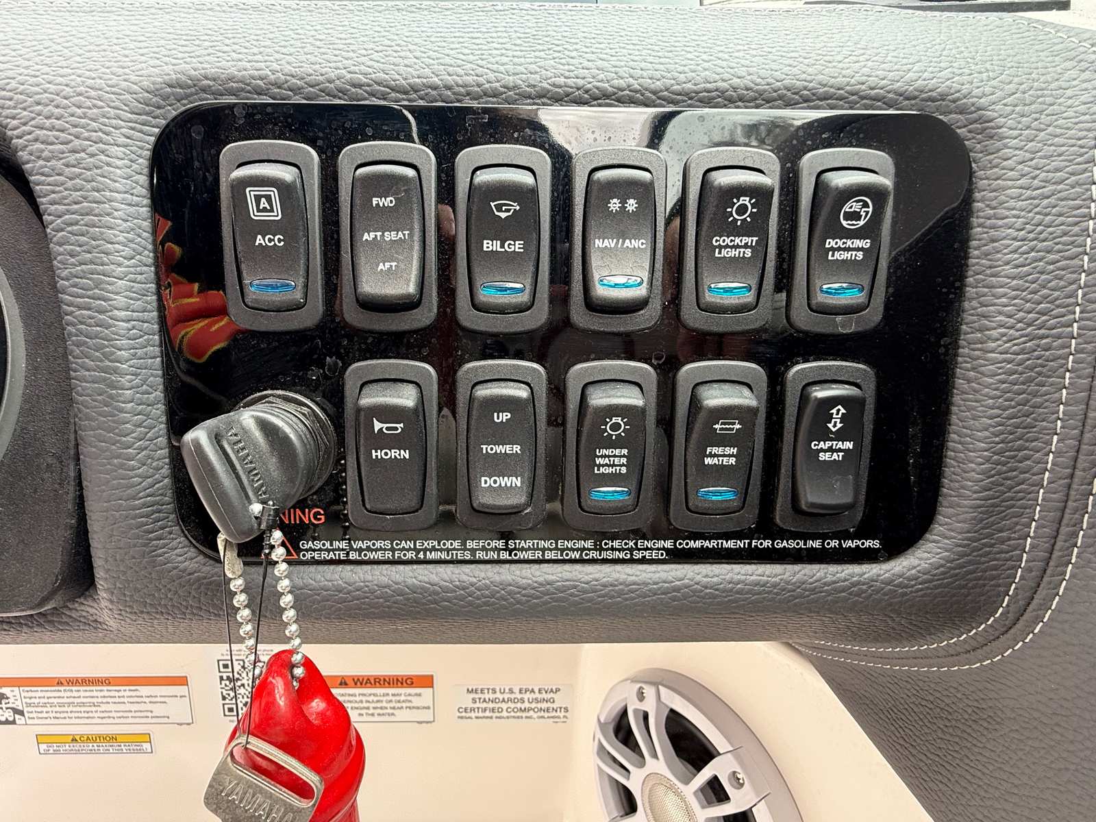 The Regal LX4 is as practical as it is stylish. The Bow Walk-Thru Doors make boarding and disembarking a breeze, while the PowerTower S2 offers convenient storage for watersports equipment. The Dual Battery Switch provides peace of mind by ensuring you always have backup power when you need it most. Docking is simplified with the integrated Docking Lights, allowing for safe and stress-free maneuvering in any lighting conditions.Fuel efficiency is enhanced by the advanced hull design, allowing you to spend more time on the water and less time at the fuel dock. The thoughtful layout includes plenty of storage compartments, making it easy to stow away life jackets, towels, and other essentials. Whether you’re planning a day trip or a weekend getaway, the LX4 is equipped to handle all your boating needs with ease.