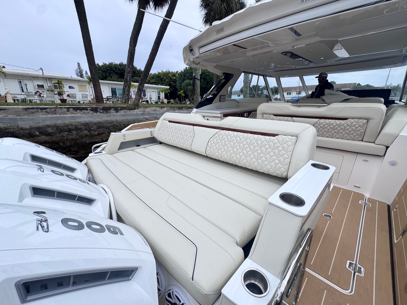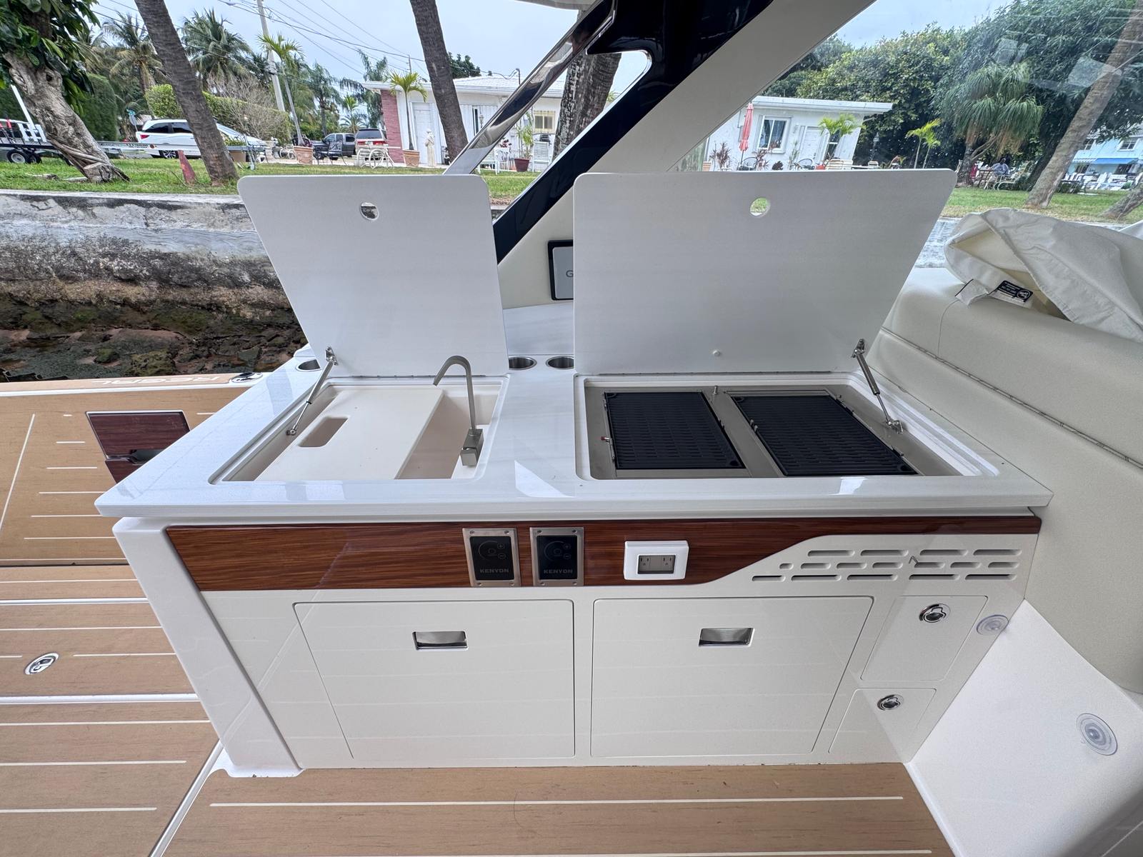Owning the Regal LX43 is about more than just having a yacht – it’s about embracing a lifestyle of fun, relaxation, and social connection. The spacious layout is perfect for hosting family and friends, with ample seating and open areas designed for conversation, dining, and sunbathing. The advanced sunshade systems and enclosures create comfortable environments for every occasion, whether you’re enjoying a sunny afternoon or seeking shelter from a passing shower.The synthetic teak surfaces are not only beautiful but also practical, offering easy cleaning and resistance to wear and tear. The high gloss teak steps provide a touch of luxury while ensuring safety for all passengers. With the powerful triple Mercury engines, you’ll experience smooth acceleration and responsive handling, making every outing enjoyable and stress-free.