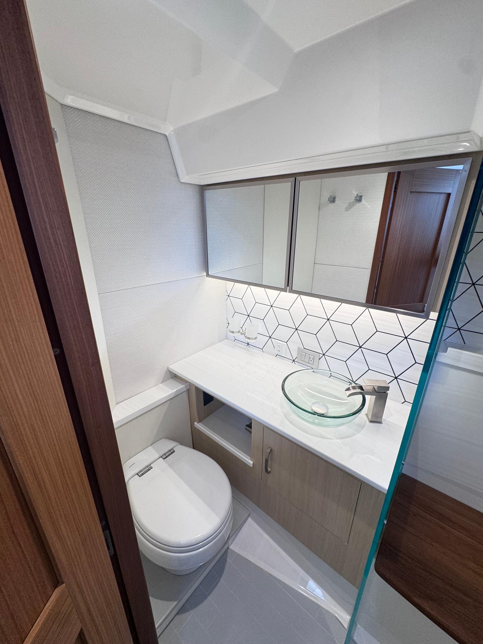 The Regal LX43 is designed with practicality in mind, making ownership as enjoyable as it is effortless. The spacious swim platform is perfect for water sports, swimming, or simply lounging by the water’s edge. The cockpit seat covers and synthetic teak flooring make maintenance a breeze, allowing you to spend more time enjoying your yacht and less time on upkeep.Docking is simplified by the yacht’s thoughtful design and responsive engines, while the various shade systems and enclosures provide flexibility for all weather conditions. Whether you’re storing gear for a day of fishing, preparing for a sunset cruise, or planning a weekend getaway, the LX43 offers the versatility and convenience you need.