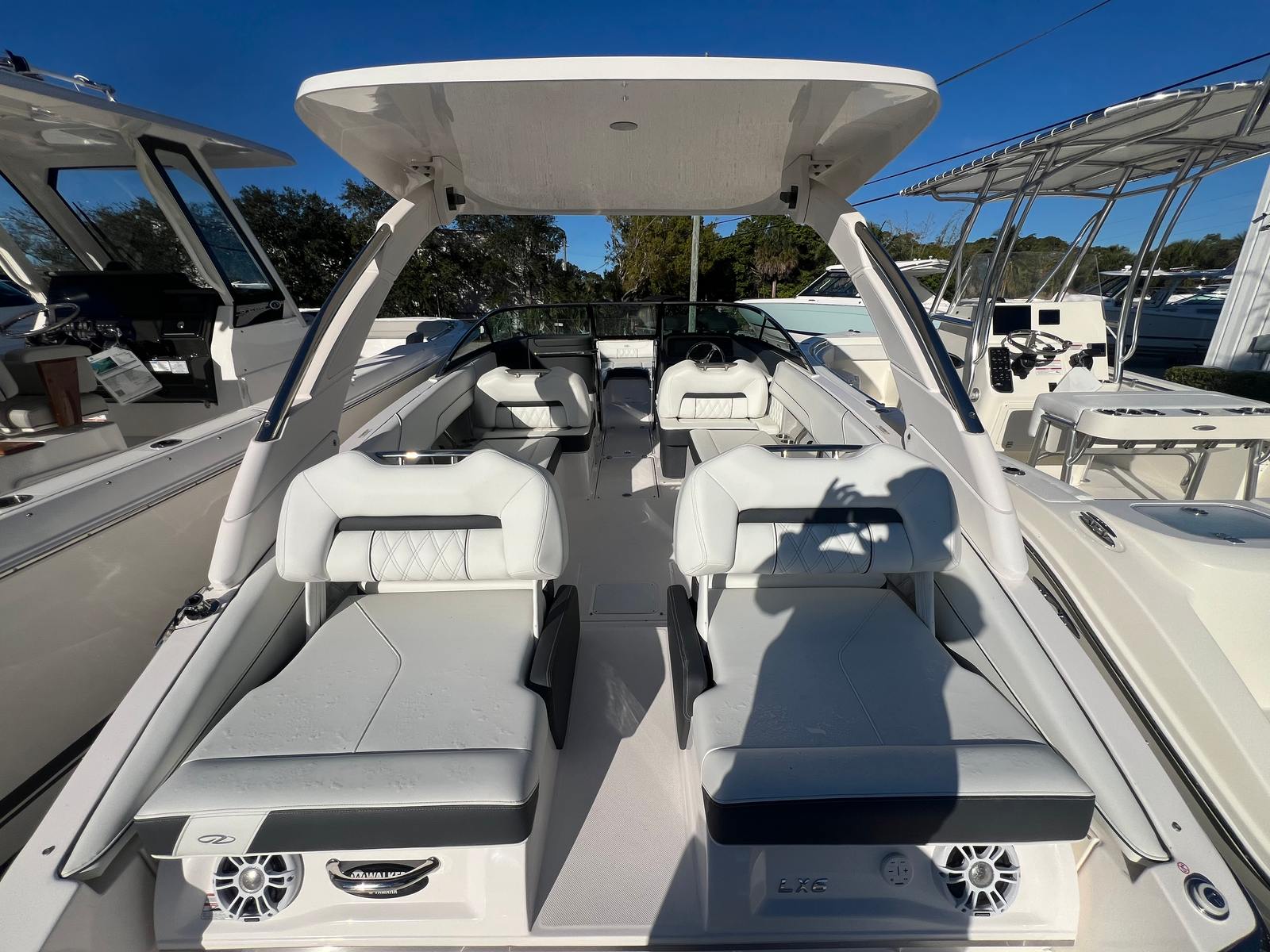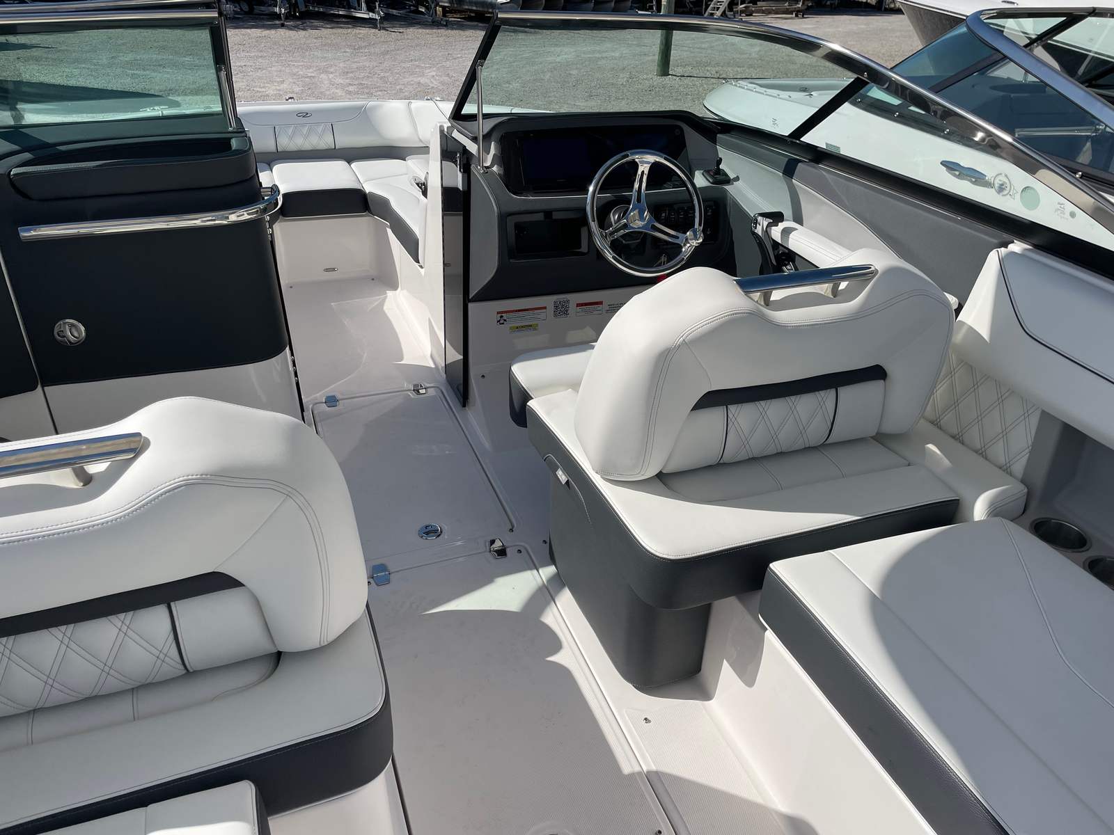 The Regal LX6 is designed with practical boating in mind. Its 26.25-foot length offers ample storage for gear, water toys, and personal items, keeping the deck clutter-free and organized. The dual battery switch system ensures you always have reliable power, making it easy to manage onboard electronics and accessories.Docking and maneuvering are a breeze thanks to the responsive handling provided by the Yamaha V6 engine. The boat’s size strikes a perfect balance between spaciousness and ease of docking, making it suitable for both seasoned boaters and those new to the water. The cockpit seagrass mat not only adds comfort but also makes cleaning up after a day of fun quick and simple.Fuel efficiency is another advantage of the LX6’s modern engine technology, allowing you to spend more time on the water and less time at the fuel dock. The protective covers help maintain the boat’s pristine condition, reducing maintenance and ensuring your investment stays looking its best for years to come.