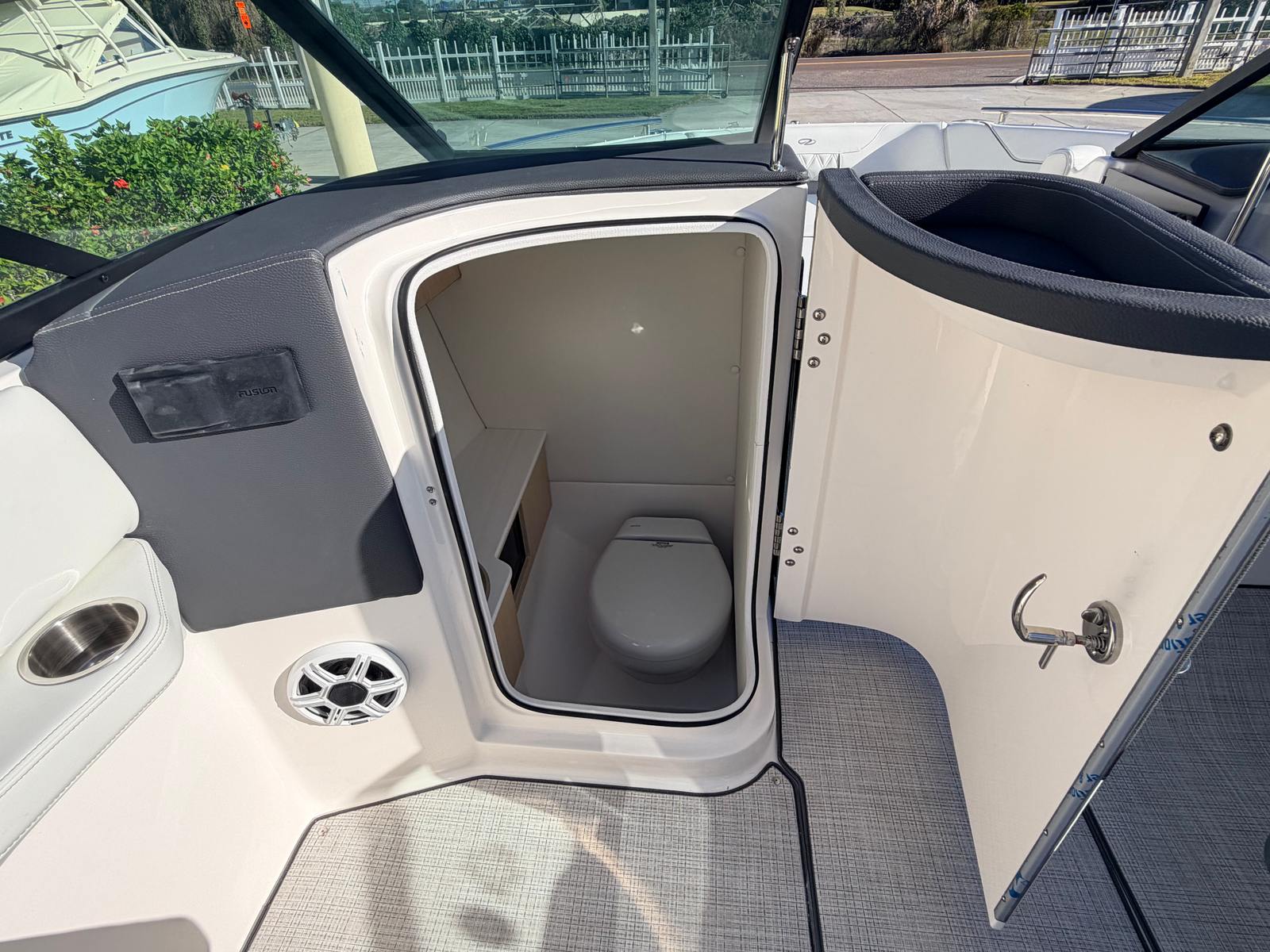 Under the sleek exterior of the Regal LX6 lies a single, robust engine delivering an impressive 350 horsepower. This powerful setup provides the speed and agility you crave, making it easy to zip across the water, tow water toys, or reach your favorite destinations in record time. The responsive handling and smooth ride are hallmarks of Regal’s engineering, ensuring that every outing is as thrilling as it is comfortable. The addition of a bow thruster enhances maneuverability, making docking and tight turns effortless, even for less experienced captains. With this Bowrider boat for sale, you can expect a dynamic performance that matches your adventurous spirit.