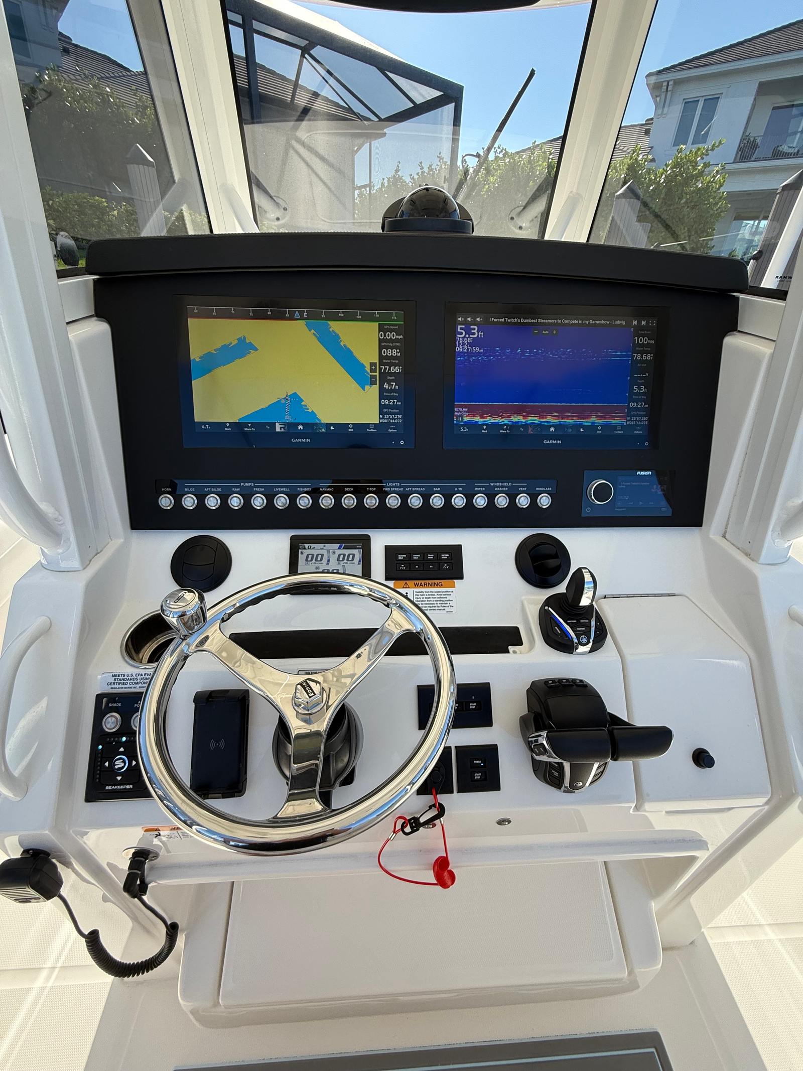Equipped with twin engines delivering a combined 600 horsepower, the 2024 Regulator 34 is built for those who crave speed and agility on the water. With just 285 engine hours, these powerplants are primed for many more seasons of reliable performance. The dual-engine setup ensures smooth acceleration, responsive handling, and the confidence to tackle offshore conditions with ease. Whether you’re chasing the horizon or cruising along the coastline, the Regulator 34’s performance capabilities set it apart from other Center Console boats for sale.