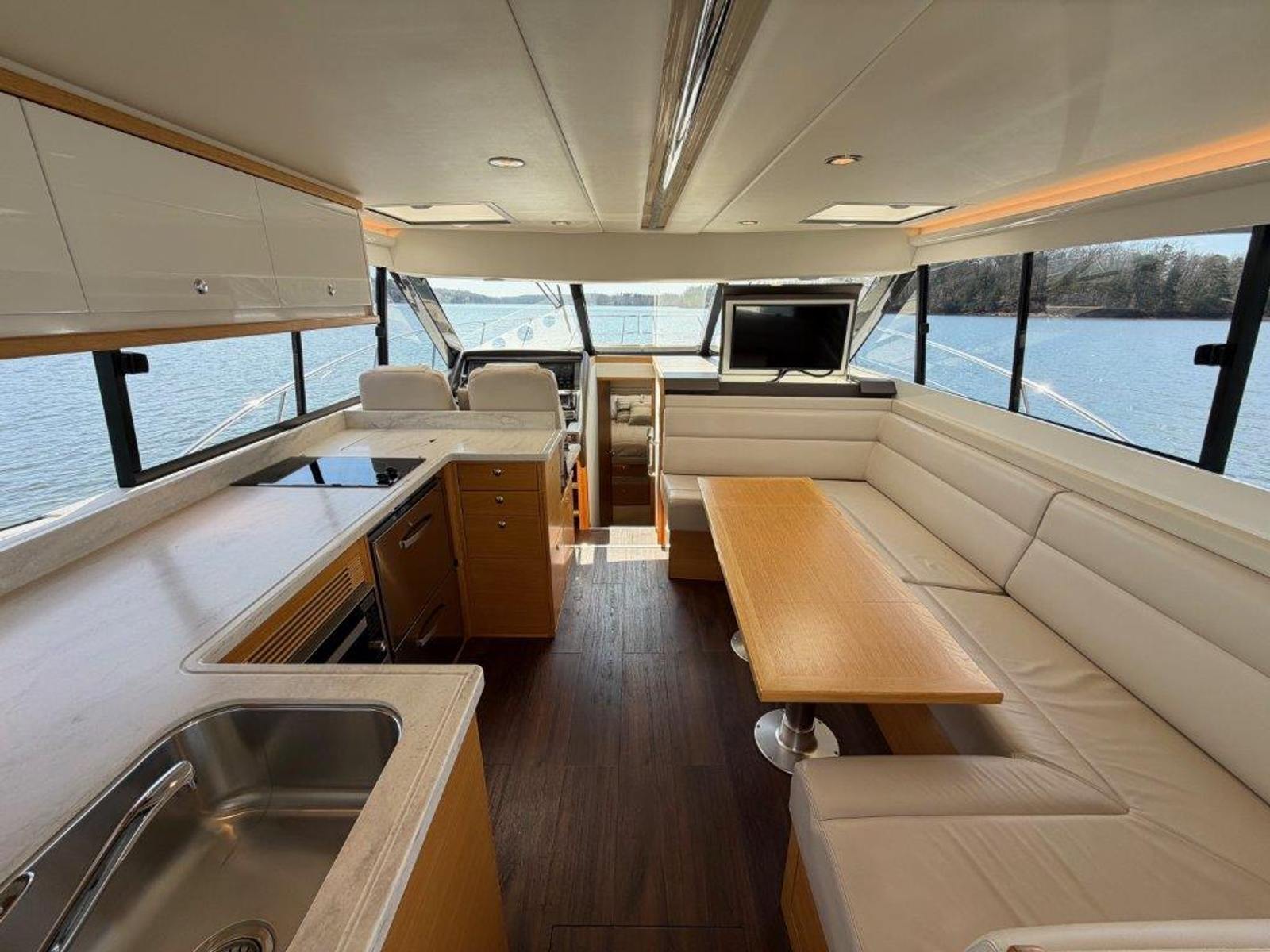 Powered by twin Volvo IPS 600 engines with just 445 hours, along with an 11.5KW Cummins generator showing 545 hours, this Riviera has been lightly used and properly cared for. The IPS system features forward-facing, counter-rotating props and joystick control, delivering smooth performance and precise maneuverability whether underway or docking in tight spaces.