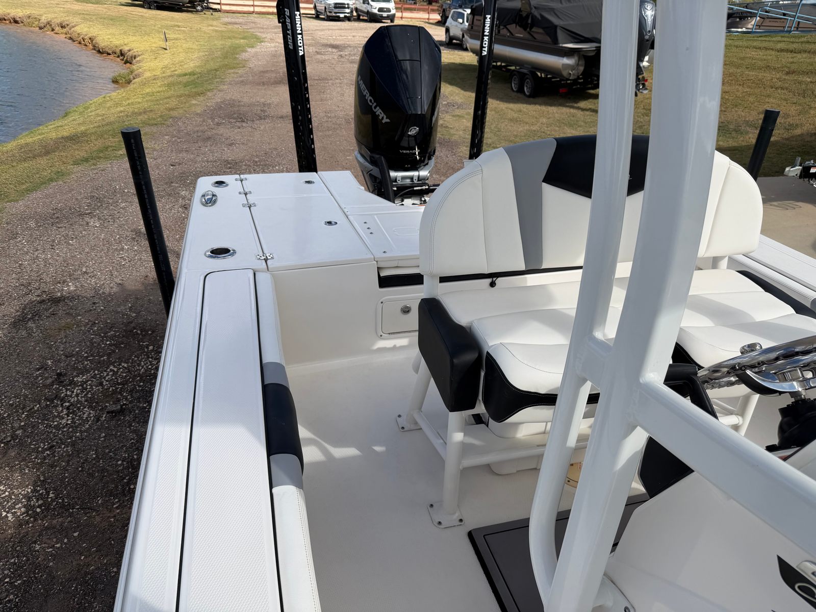 Powering the Robalo 246 Cayman is a single, high-performance engine delivering an impressive 300 horsepower. With just 10 hours of use, this engine promises reliability and longevity, ensuring you can embark on countless adventures with confidence. The powerful engine provides quick acceleration, smooth cruising, and responsive handling, making it easy to navigate both shallow bays and open waters. Whether you are chasing the next big catch or enjoying a leisurely cruise, the Robalo 246 Cayman’s performance capabilities set it apart from other Bay Boat boats for sale.