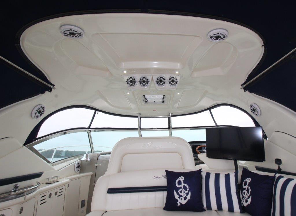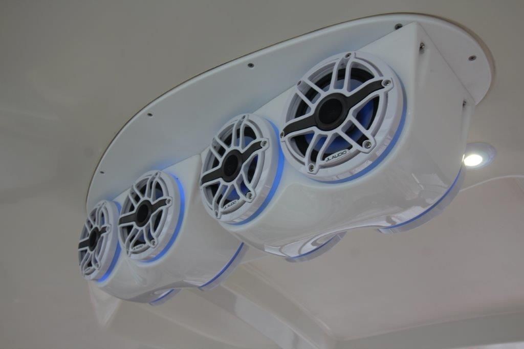 The cockpit has been upgraded with Aqua Marine Dek flooring, a custom Princess Pad with backrest, new enclosure with camper canvas, chrome anchor, and stylish RGB lighting both in the cockpit and underwater. A premium JL Audio sound system has been professionally installed, featuring multiple marine amplifiers, coaxial speakers with RGB lighting, dual subwoofers with custom grills, and RGB light rings—delivering top-tier sound quality on the water.