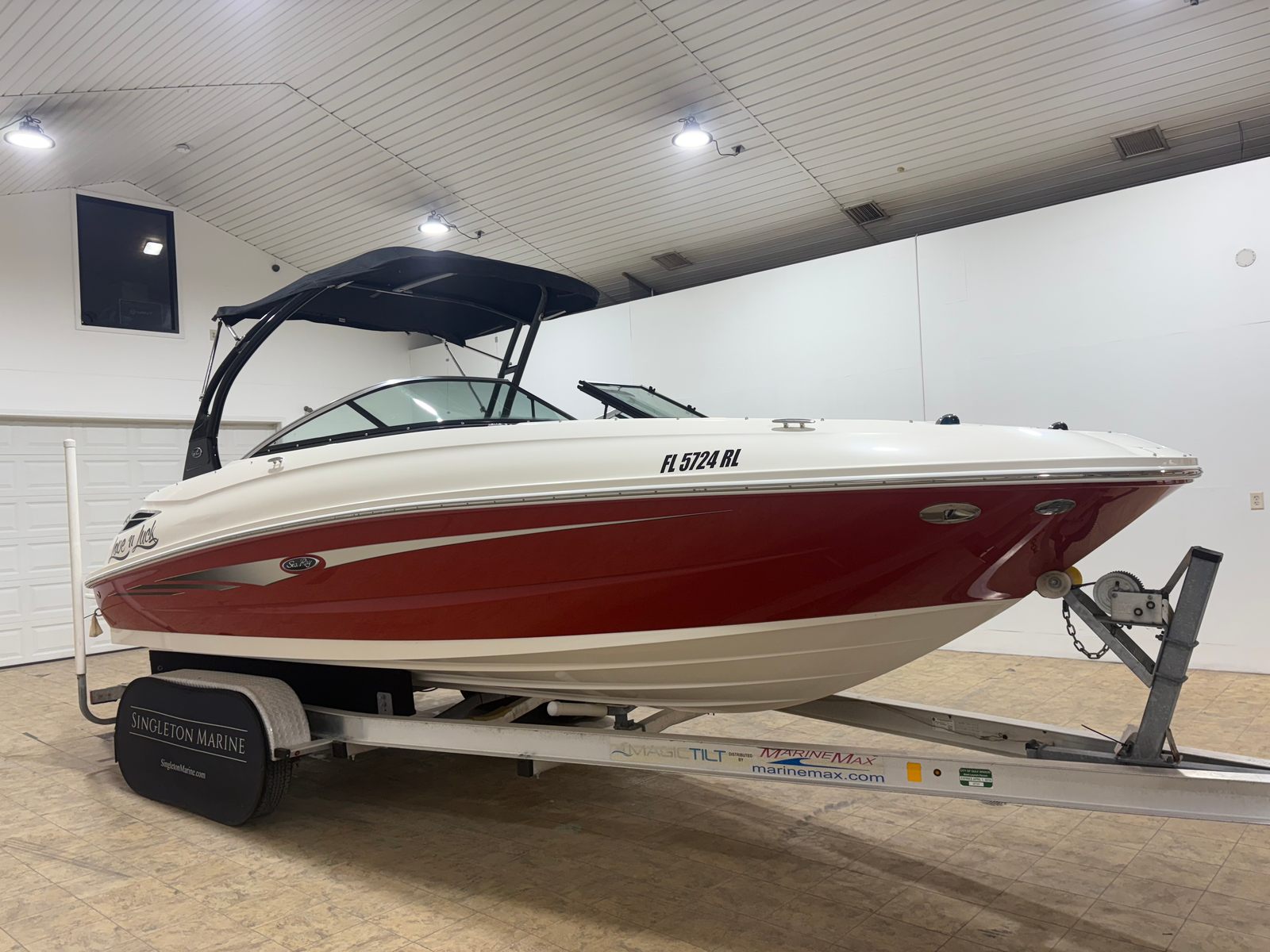 The 2014 Sea Ray Sundeck 240 stands out as a premium used bowrider, measuring just over 24 feet in length. Its sleek profile and contemporary design make it a head-turner at any marina or on any lake. With a single engine and only 199 hours of use, this boat has been well cared for and is poised to deliver many more seasons of enjoyment. The Sundeck 240’s spacious layout ensures there’s plenty of room for family and friends, making it an ideal choice for those who love to entertain or spend quality time on the water.