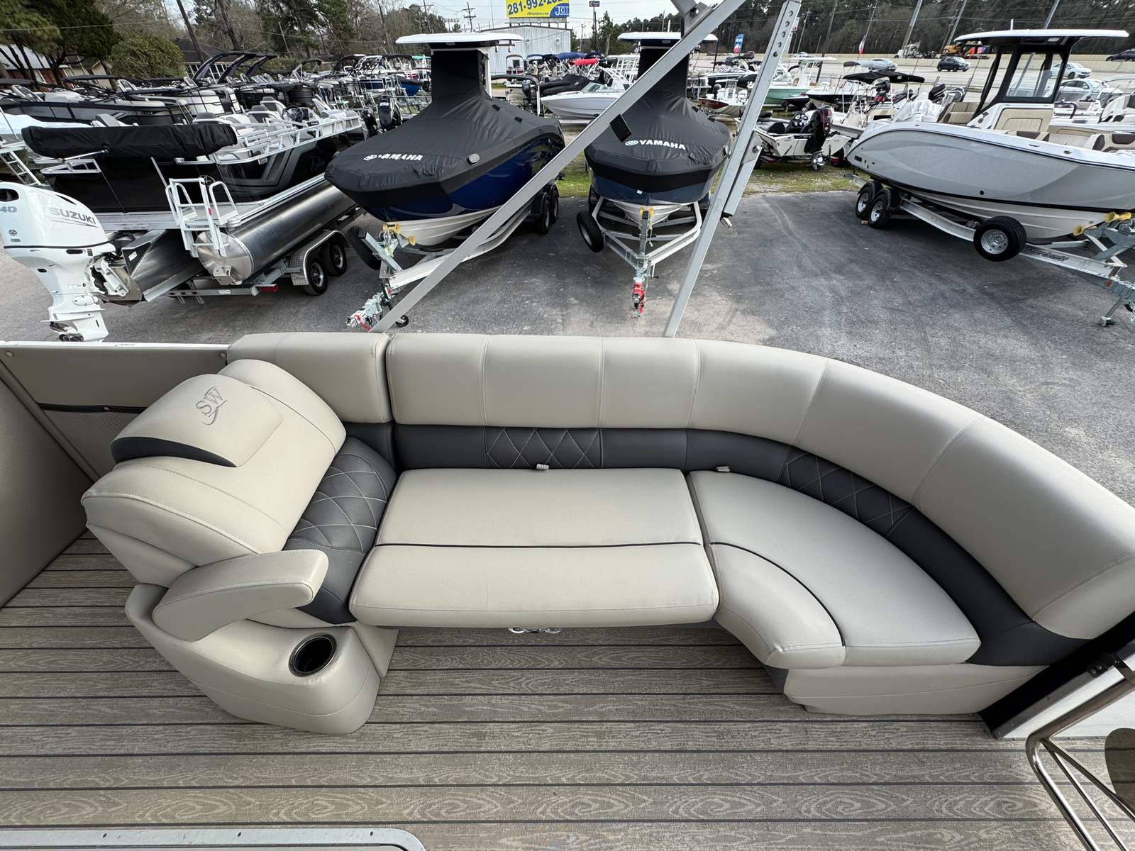 The Silverwave 2410 SW5 is loaded with features designed to maximize your enjoyment and convenience on the water. The included Bimini and Double Bimini provide extensive shade, allowing you and your guests to relax comfortably even on the sunniest days. The tandem axle trailer makes transporting your pontoon boat to and from your favorite destinations a breeze, while the ski tow bar opens up exciting possibilities for water sports enthusiasts.Stay entertained and connected with the Bluetooth stereo and Wetsounds speakers, delivering high-quality audio throughout the boat. The Garmin electronics package ensures you have access to advanced navigation and fish-finding capabilities, making every outing safer and more productive. The wireless phone charger keeps your devices powered up, so you never miss a moment or a photo opportunity. Every detail of this Silverwave pontoon boat is crafted to enhance your time on the water.