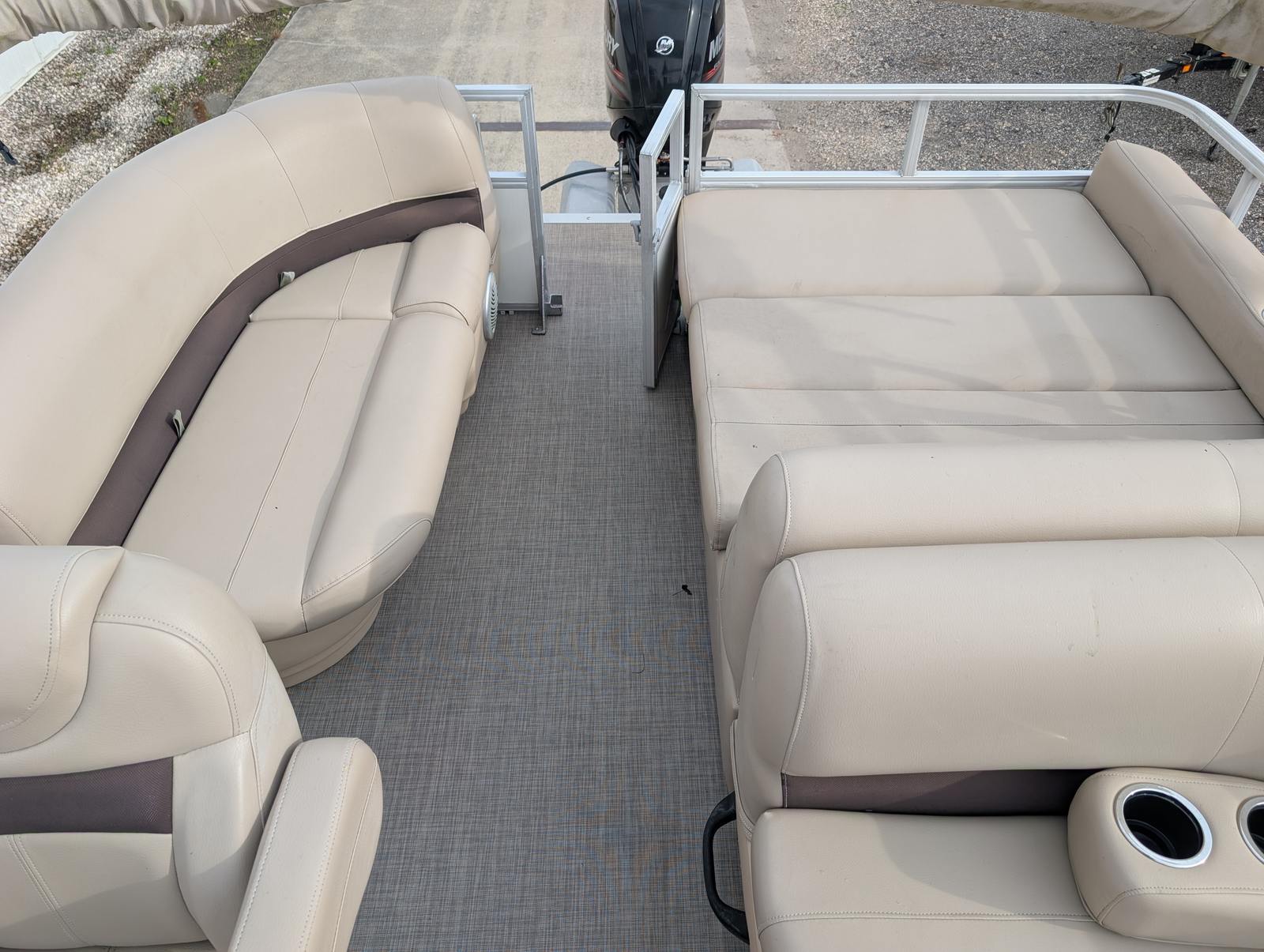 Powered by a robust 115-horsepower engine, the Sun Tracker Party Barge 22 DLX delivers a smooth and responsive ride. The engine’s power ensures that you can cruise across lakes and rivers with ease, whether you are towing water toys, heading out for a day of fishing, or simply enjoying a leisurely cruise. The 115 HP engine strikes the perfect balance between fuel efficiency and performance, making this pontoon boat for sale an excellent option for those who want both power and economy in their boating experience.