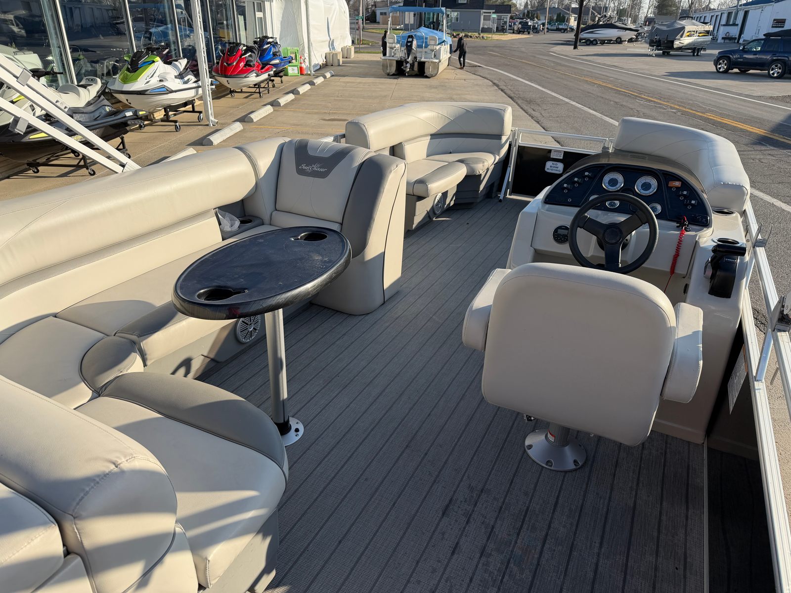 The Sunchaser Geneva 22 is designed with comfort and convenience in mind. Its spacious 22-foot deck offers plenty of room for family and friends to relax, socialize, and soak up the sun. The open layout makes it easy to move around, while the comfortable seating ensures everyone has a great spot to enjoy the view. The pontoon’s sturdy construction and quality materials reflect Sunchaser’s reputation for building boats that last, giving you peace of mind as you cruise your favorite waterways.This used pontoon boat for sale is a great choice for those who appreciate a blend of style and practicality. The Geneva 22’s thoughtful design includes ample storage space for all your gear, making it easy to bring along everything you need for a day on the water. Whether you are packing picnic supplies, water toys, or fishing equipment, you will find plenty of room to keep your essentials organized and out of the way.