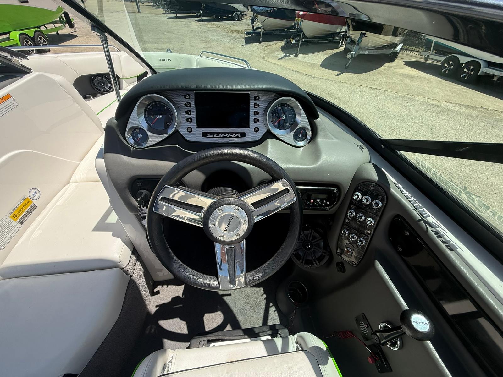 This Supra boat for sale truly shines in a variety of scenarios. It’s the perfect choice for families looking to create lasting memories, with plenty of space for kids, friends, and all your water toys. Water sports enthusiasts will appreciate the boat’s wake-shaping capabilities and powerful engine, making it ideal for skiing, wakeboarding, and tubing. The Supra 22 SSV is also a great option for those who love to entertain, offering a comfortable and stylish setting for socializing on the water. Whether you’re chasing the perfect wake, enjoying a leisurely cruise, or hosting a lakeside picnic, this boat is ready for any adventure.