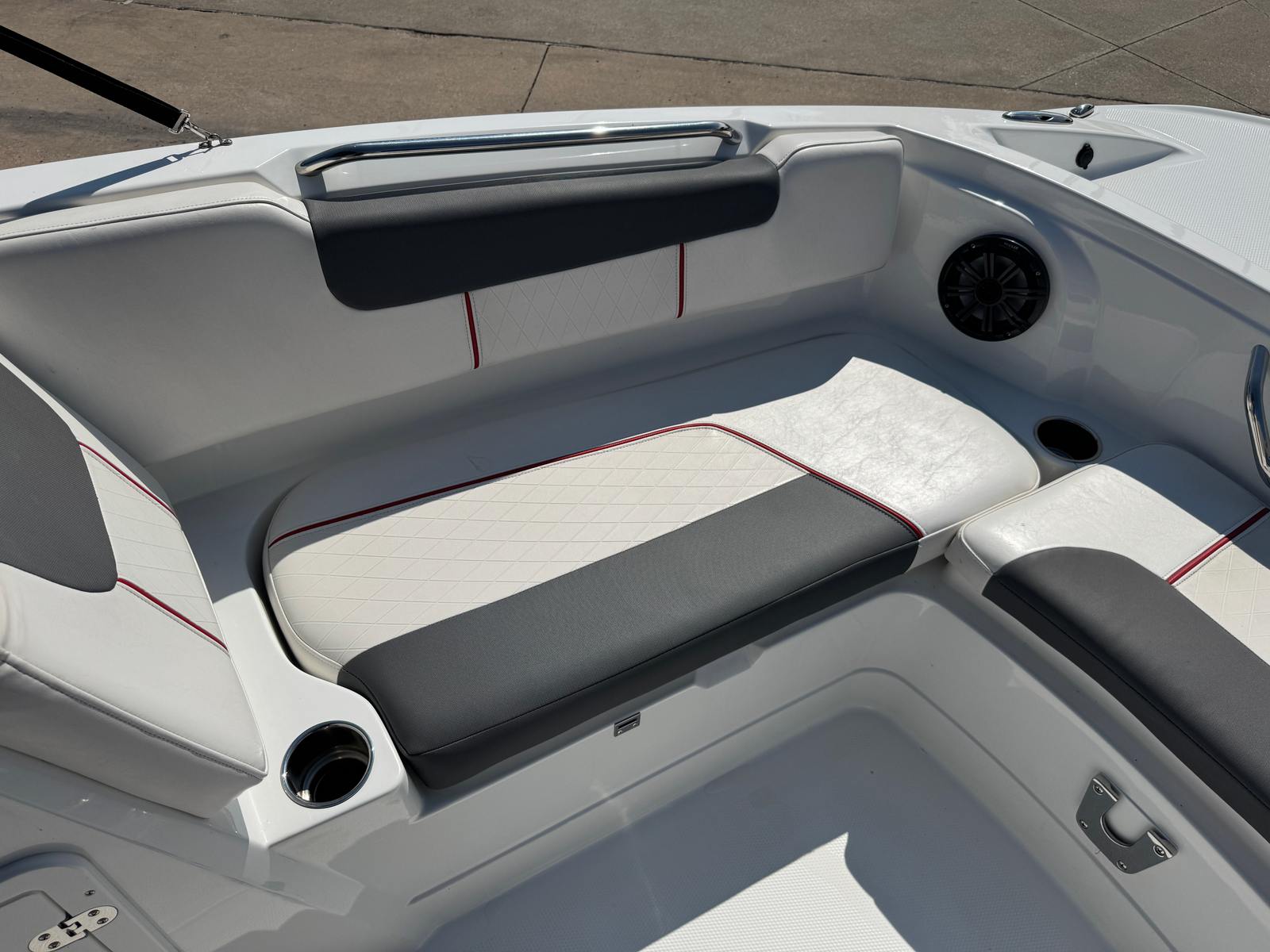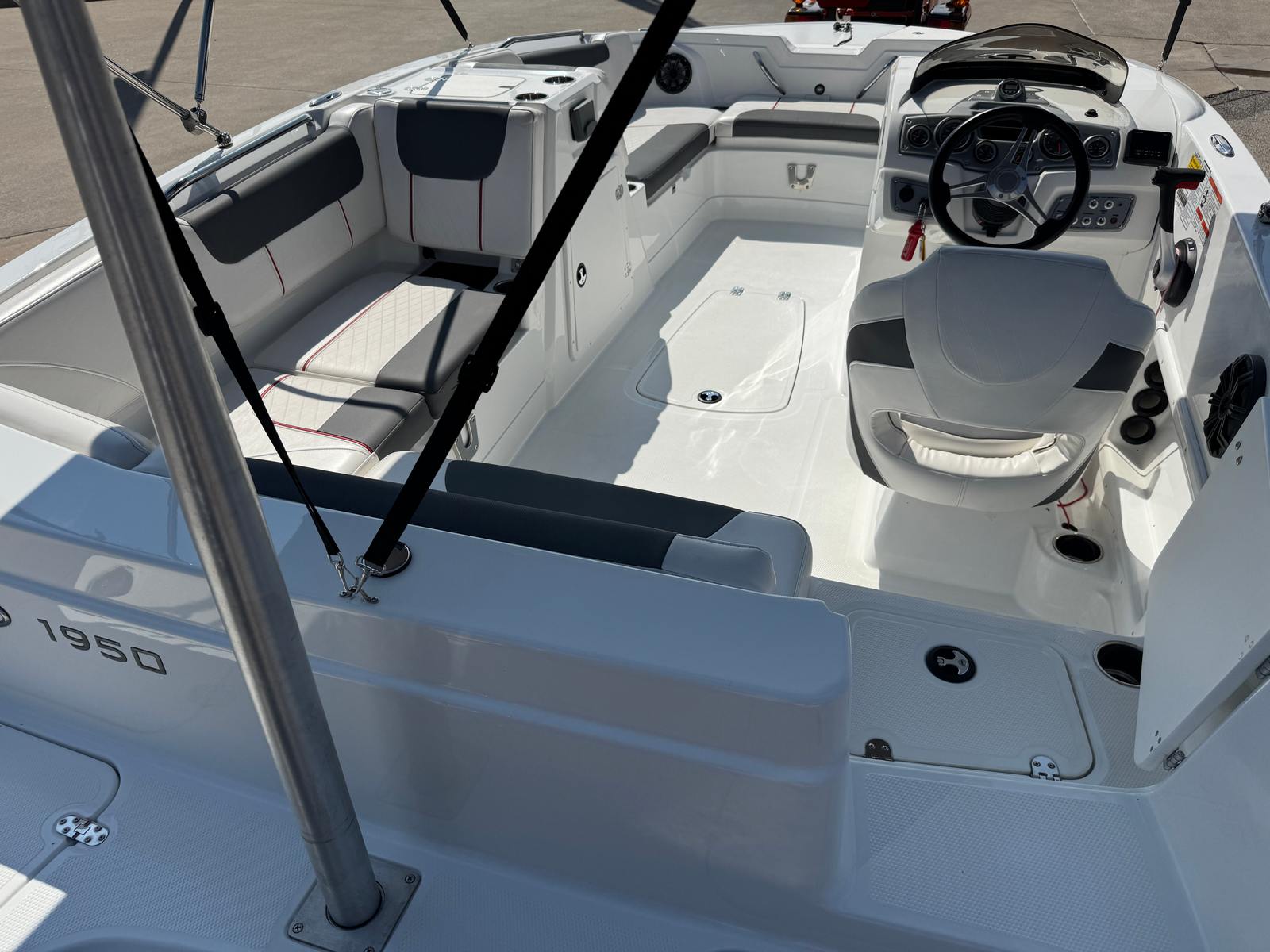 The 2021 Tahoe 1950 Deckboat is as practical as it is enjoyable. Its manageable 19-foot length makes it easy to store, trailer, and dock, so you can spend less time worrying about logistics and more time enjoying the water. The efficient engine provides a great balance of power and fuel economy, allowing you to maximize your time on the water without breaking the bank. Whether you are navigating busy marinas or exploring quiet lakes, the Tahoe 1950’s responsive handling and compact size make it a breeze to operate.This deckboat is also designed with convenience in mind, offering ample storage for all your boating essentials. From life jackets to fishing gear to water toys, you will have plenty of space to keep everything organized and within reach. The intuitive controls and easy-to-read gauges make piloting the Tahoe 1950 straightforward and stress-free, so you can focus on having fun and making memories.