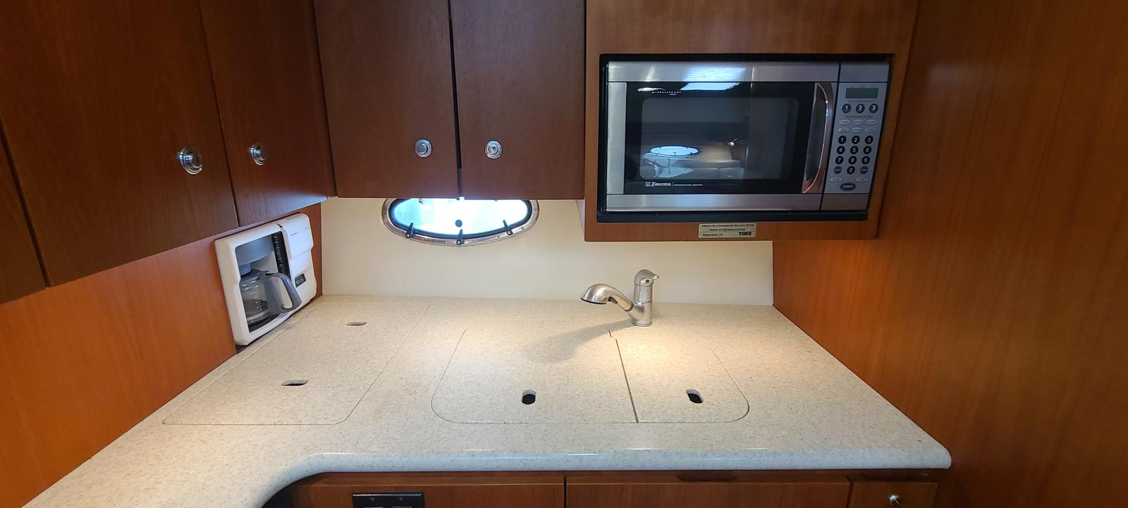 Power and reliability are at the heart of this Tiara Yachts boat for sale. Equipped with twin engines delivering a combined 900 horsepower, this yacht offers exhilarating performance and smooth handling on the open water. With 1,730 engine hours, these engines have proven their durability and are ready to provide many more years of dependable service. The robust powertrain ensures you can confidently navigate a variety of conditions, from leisurely coastal cruises to more adventurous offshore excursions.