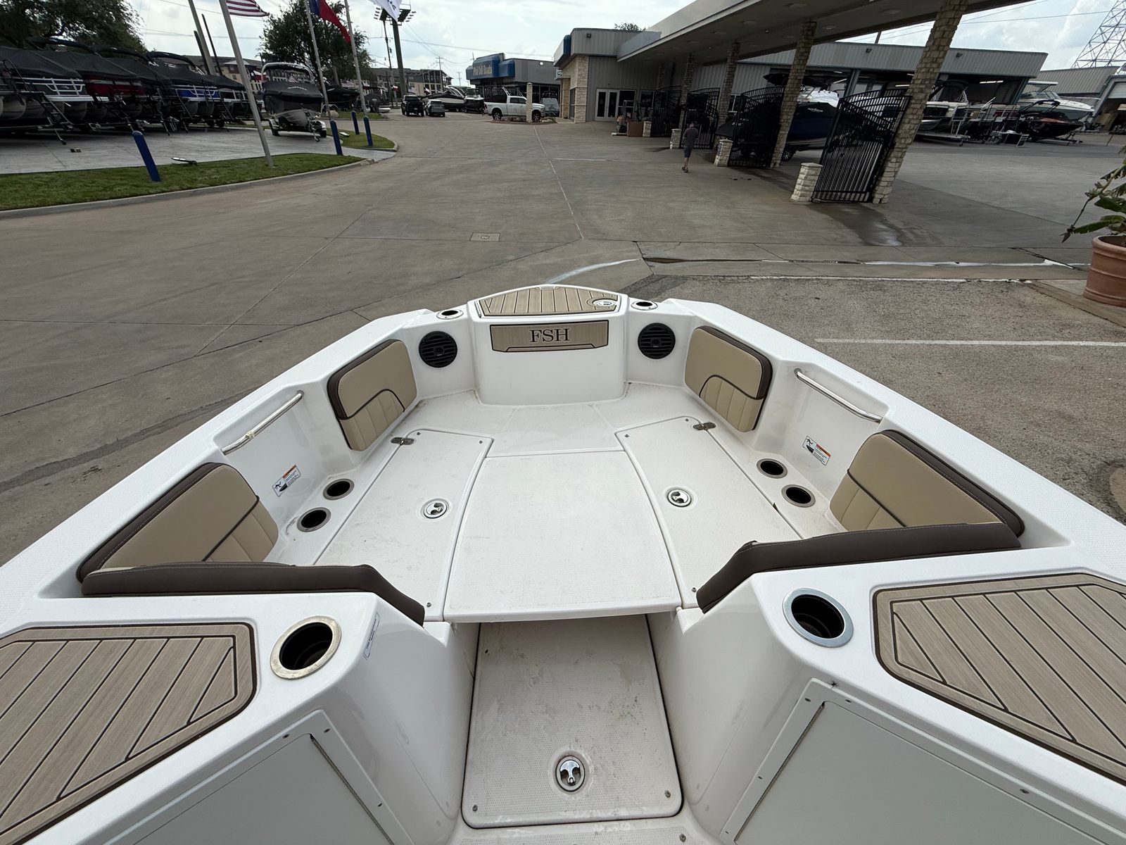 The Yamaha 222 FSH Sport E is packed with features designed to enhance your time on the water. Its spacious layout provides plenty of room for passengers to relax, socialize, and enjoy the scenery. The jet propulsion system not only delivers powerful performance but also offers safety advantages, as there are no exposed propellers. This makes it an ideal choice for families with children or anyone who values peace of mind while boating.Special features of the 222 FSH Sport E include advanced technology and thoughtful design elements that elevate the boating experience. The helm is equipped with intuitive controls, allowing the captain to easily manage speed, direction, and onboard systems. The seating arrangement is designed for comfort, with plush cushions and ergonomic support that make long days on the water a pleasure. Storage compartments are strategically placed throughout the boat, providing convenient access to gear, snacks, and personal items.