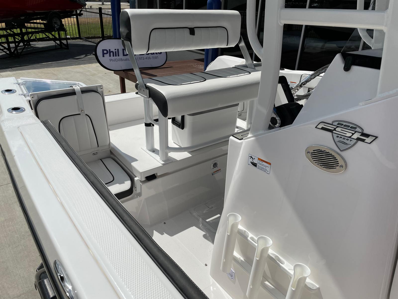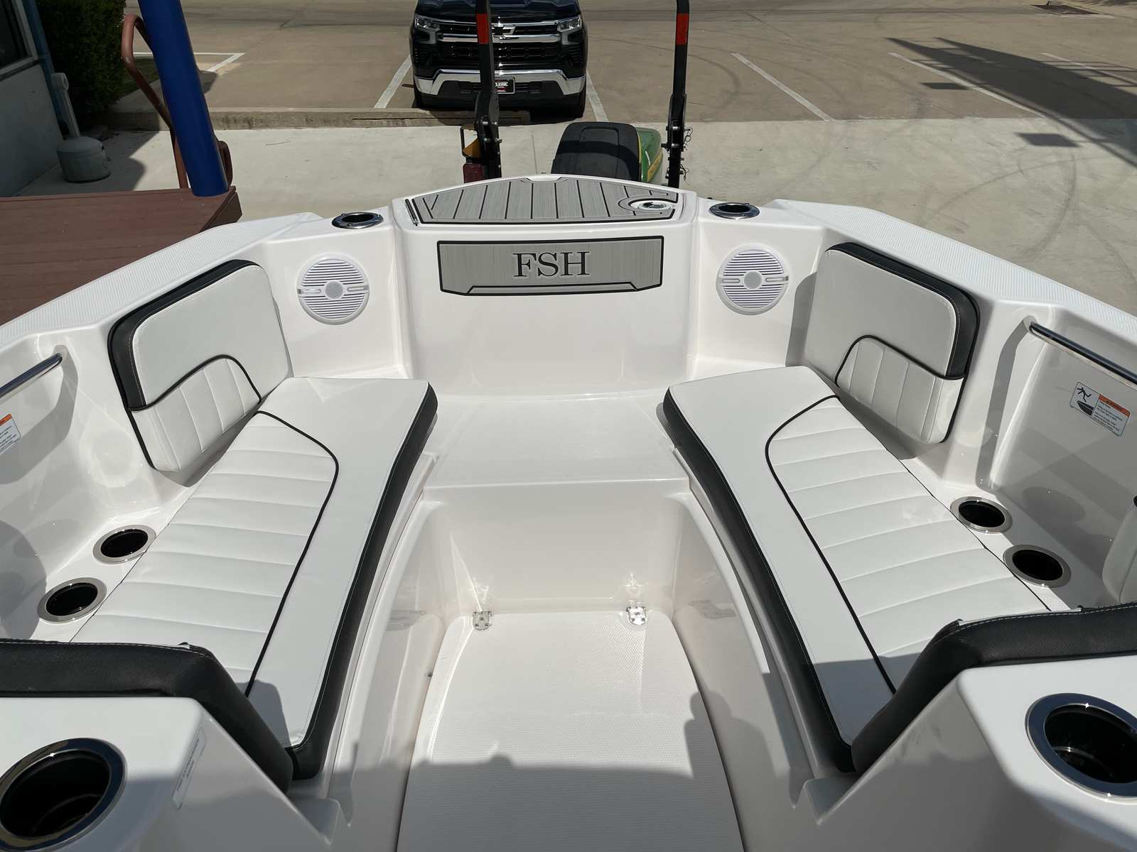 Inside, the boat features advanced navigation and control systems, providing intuitive handling and precise maneuvering. Ample storage compartments ensure that all your gear and essentials are securely stowed, while ergonomic seating offers maximum comfort for long days on the water. The 222 FSH Sport also includes state-of-the-art safety features, giving you peace of mind as you explore the waterways.