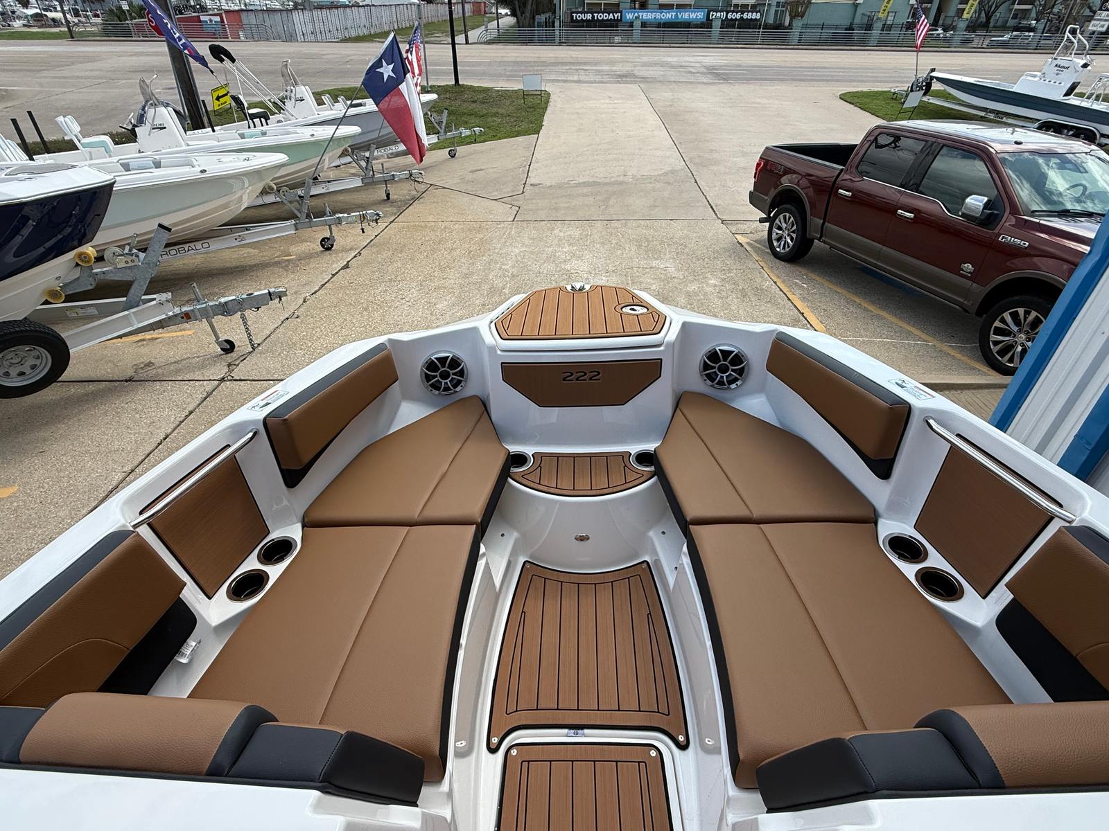 At the heart of the Yamaha 222 SE are two powerful engines, delivering a combined 400 horsepower. This dual-engine setup ensures exhilarating acceleration, responsive handling, and a smooth, stable ride even at high speeds. Whether you’re carving through waves, towing water sports enthusiasts, or cruising along the shoreline, the Yamaha 222 SE’s performance capabilities set it apart from other jet boats for sale. The advanced jet propulsion system provides precise control and maneuverability, allowing you to navigate tight spaces and shallow waters with confidence.
