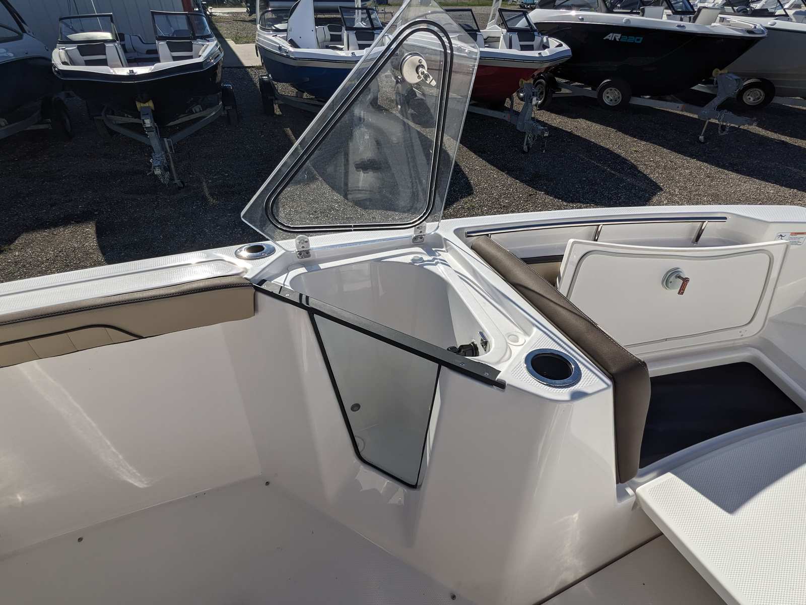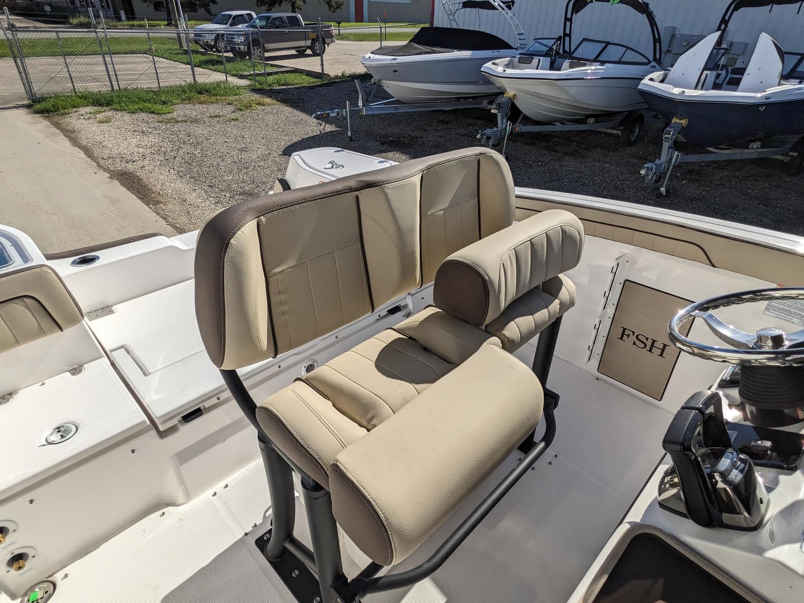The interior of the Yamaha 255 FSH Sport E is crafted for comfort and convenience. High-quality materials and thoughtful design elements ensure that every trip is enjoyable, whether youre embarking on a short excursion or a full-day adventure. The boats ergonomic seating provides excellent support, while strategically placed storage compartments keep your gear organized and easily accessible. This attention to detail makes the 255 FSH Sport E not just a powerful jet boat, but also a comfortable and practical vessel for all your boating activities.