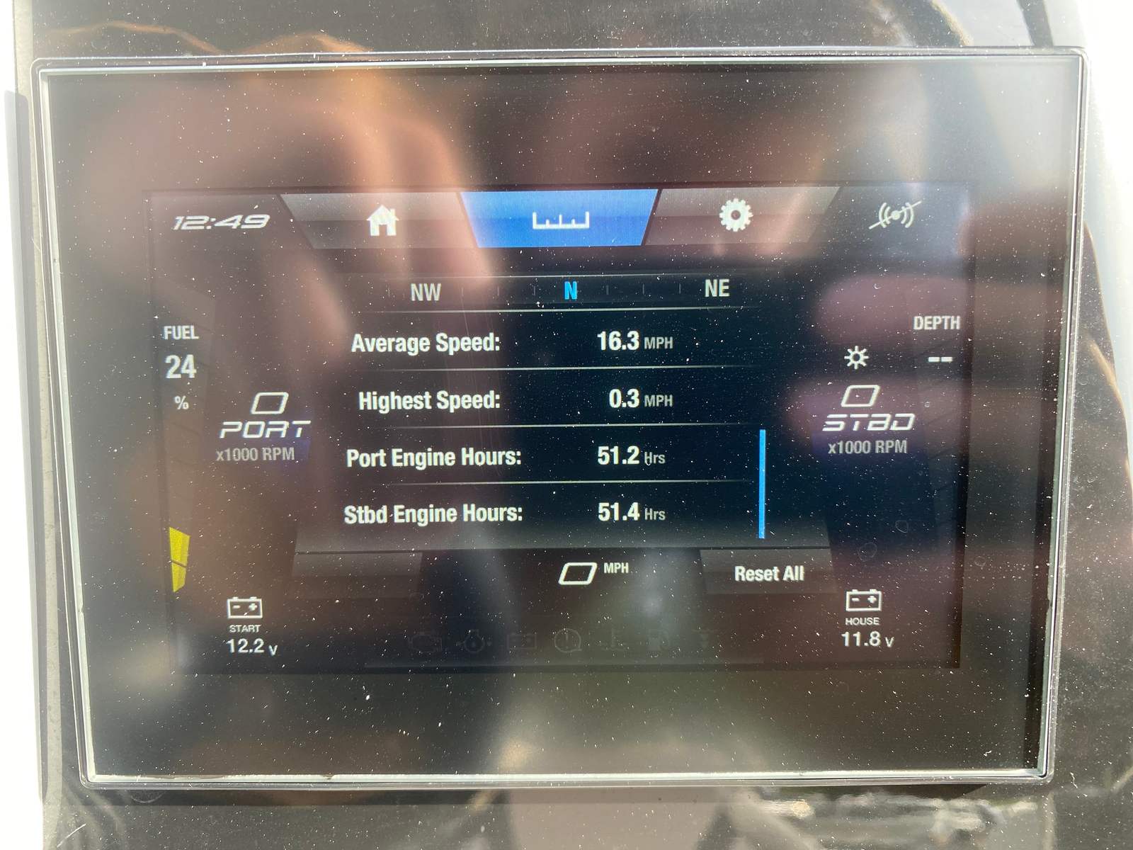 Under the hood, the Yamaha AR220 boasts twin engines, delivering a combined 230 horsepower for exhilarating acceleration and responsive handling. Whether you’re cruising across the lake or towing water toys, the AR220’s jet propulsion system ensures smooth, agile maneuvering and a thrilling ride. The dual engines provide balanced power and reliability, making this jet boat a top performer in its class. With 51 engine hours, you can trust that this Yamaha boat for sale has plenty of life left for your future adventures.