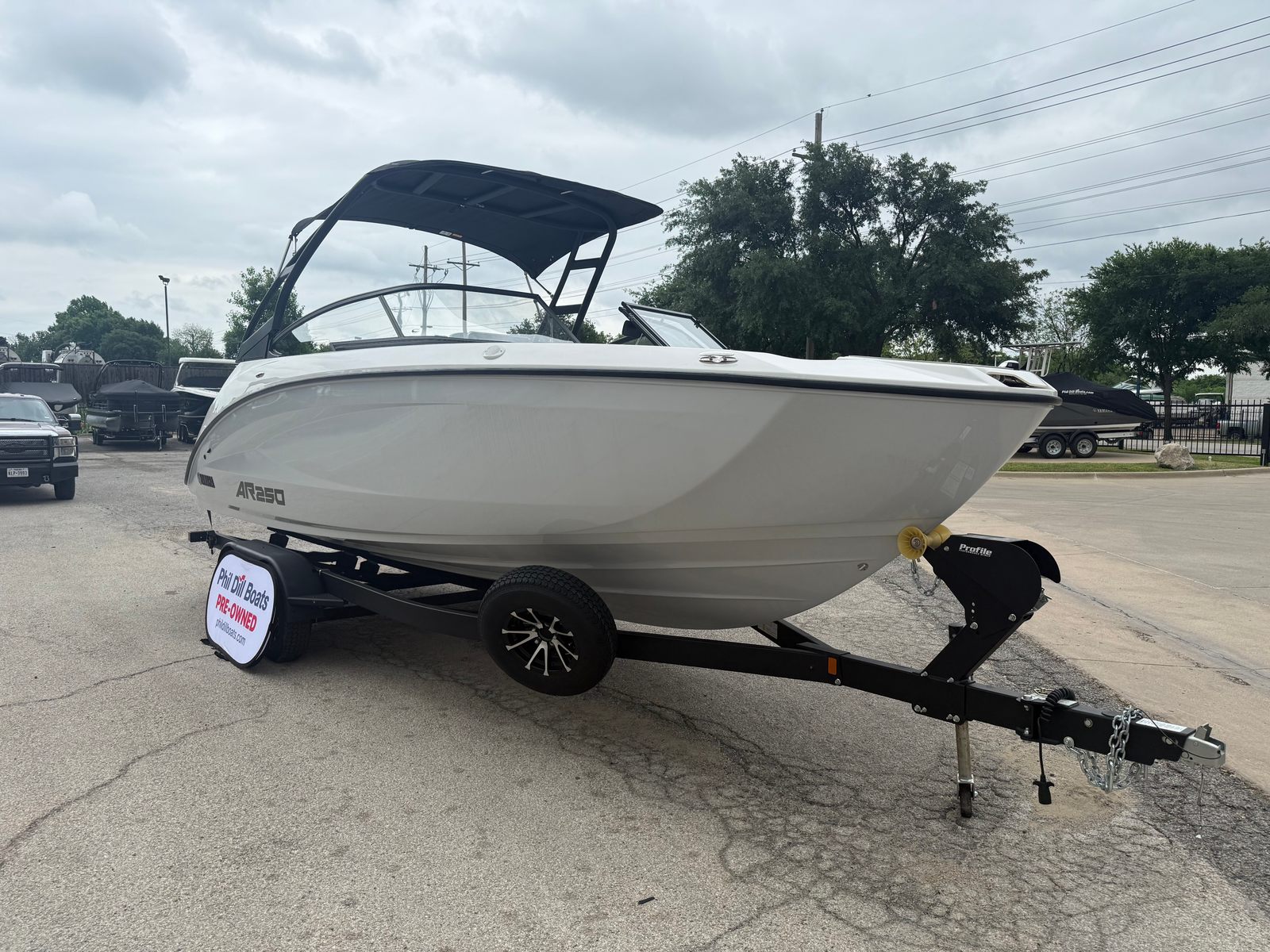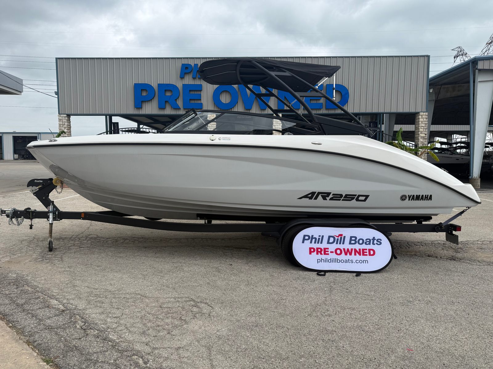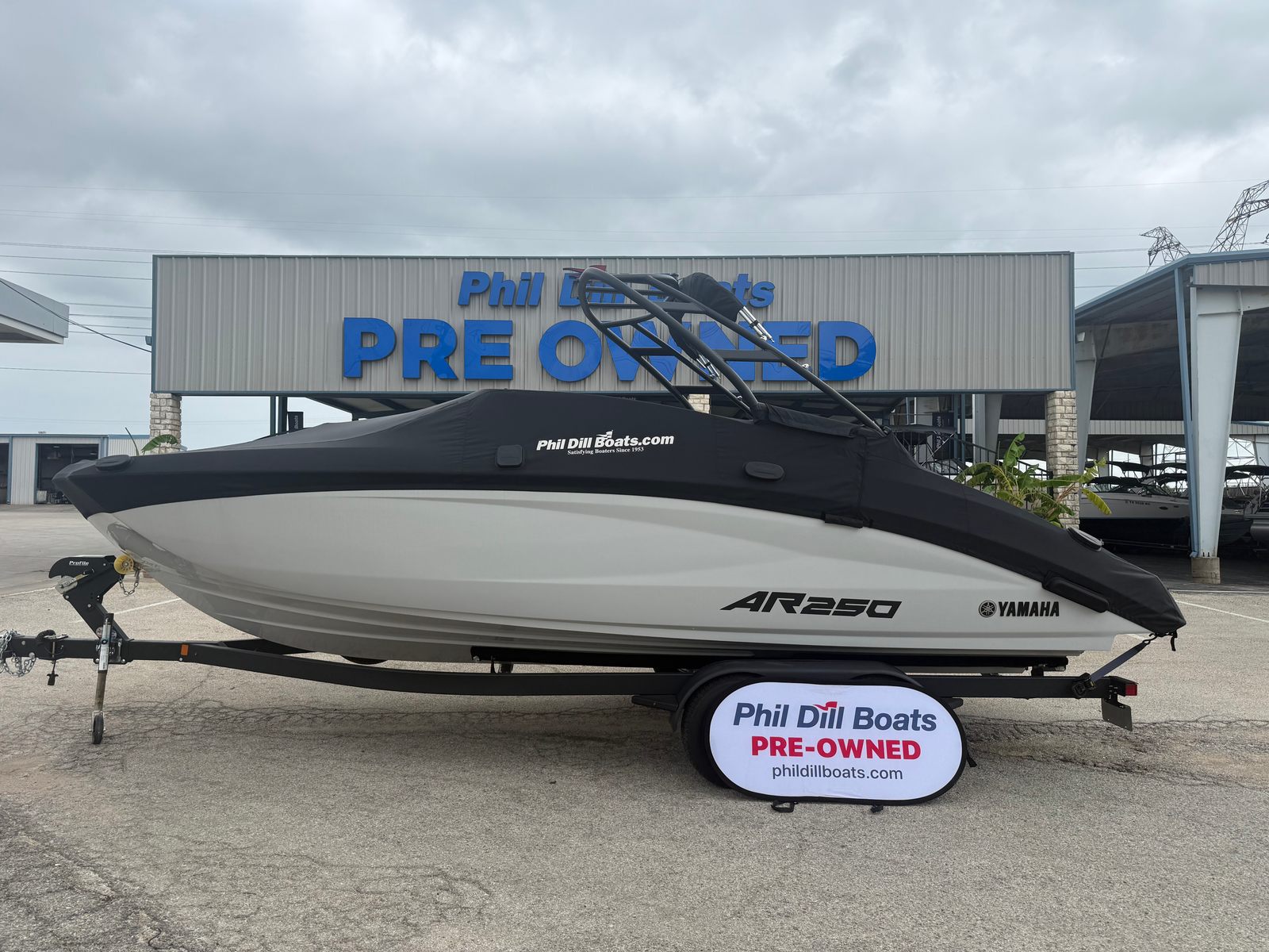 The 2025 Yamaha AR250 is a jet boat that perfectly blends performance, versatility, and style. As a used jet boat for sale, it offers exceptional value for those who want to enjoy the latest in marine innovation without the price tag of a brand-new vessel. Measuring 24.5 feet in length, this Yamaha boat for sale provides ample space for friends and family, ensuring everyone has room to relax, socialize, and enjoy the ride. The AR250’s modern design and attention to detail make it a true head-turner, whether you’re cruising the lake, exploring coastal waters, or anchoring at your favorite sandbar.