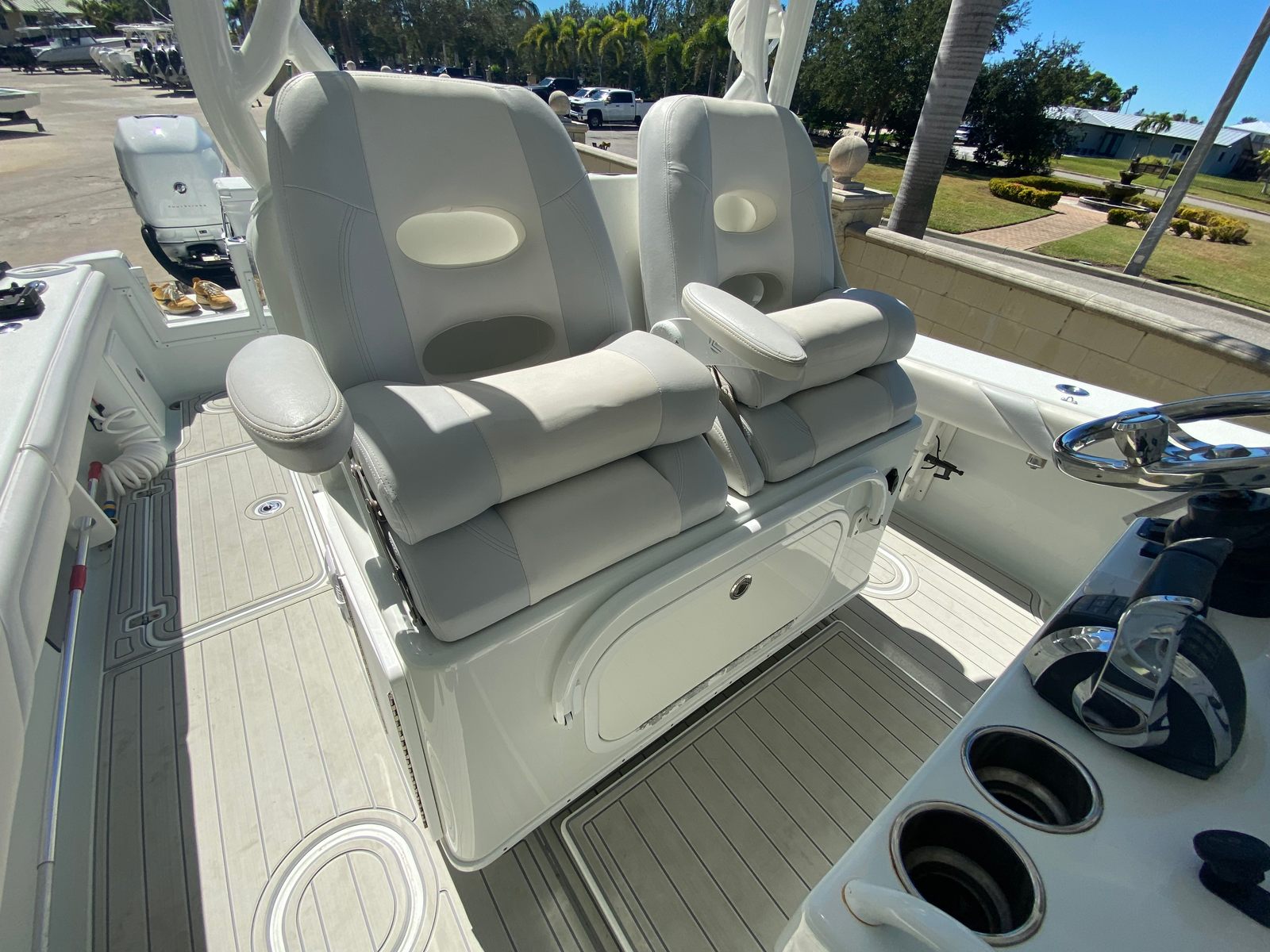 This Center Console boat for sale is as practical as it is fun. The open layout makes it easy to store fishing equipment, water toys, and other essentials, keeping the deck clutter-free and organized. Docking is simplified thanks to the responsive handling provided by the triple engines, allowing you to maneuver with confidence in tight spaces. The efficient design helps optimize fuel consumption, so you can spend more time on the water and less time refueling. The Yellowfin 36 CC is also easy to maintain, with accessible systems and durable materials that stand up to the elements.